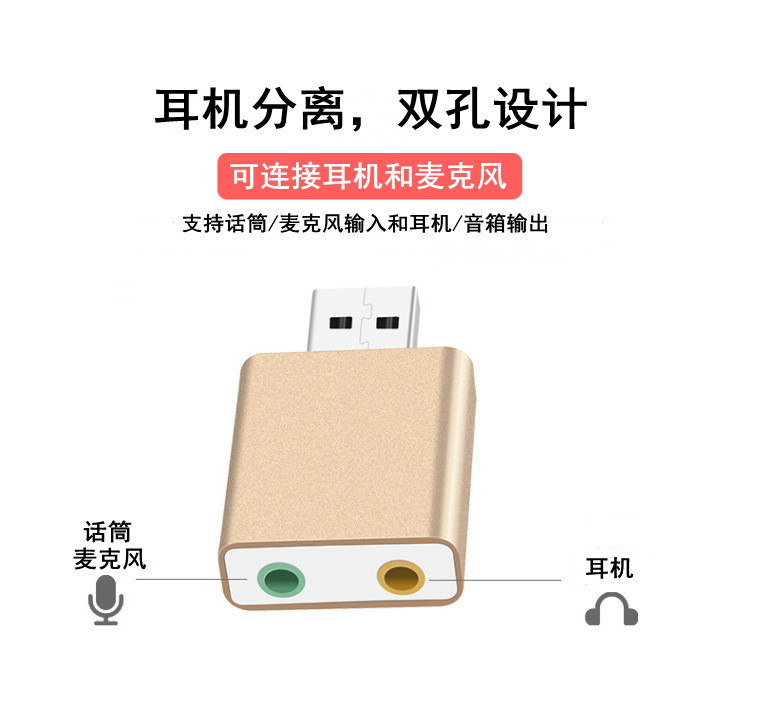 • 금속 유선 USB 사운드 카드 - 골드