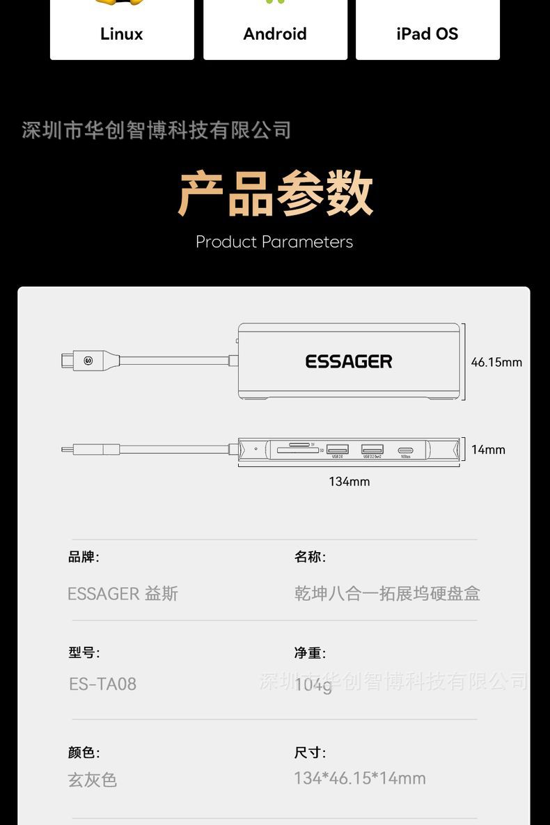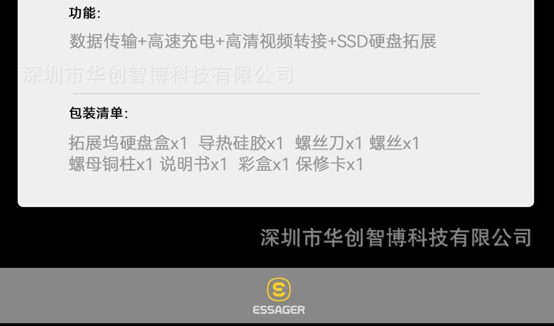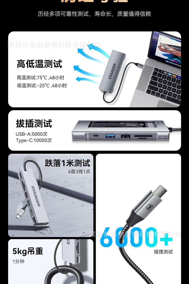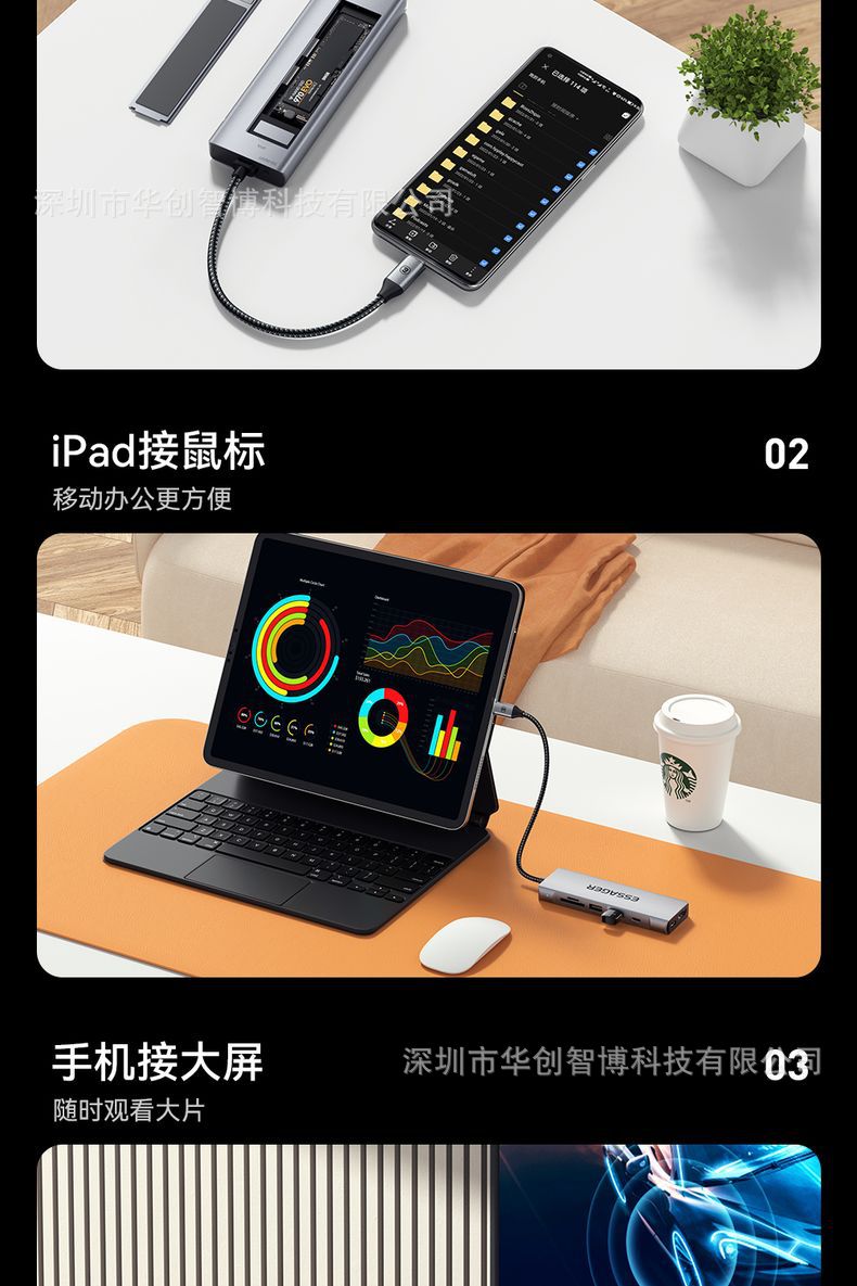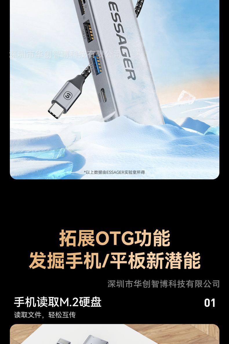 【产品特点】扩展坞和硬盘盒合二为一,4K高清画质,开关设计,一键隐藏硬盘,支持PD100W快充,多项测试,性能稳定。