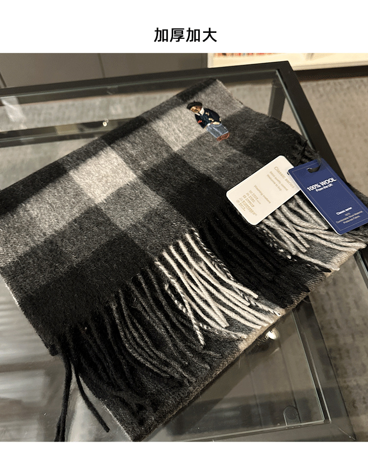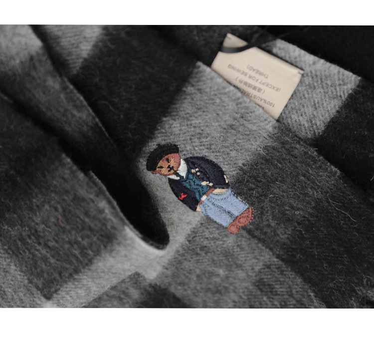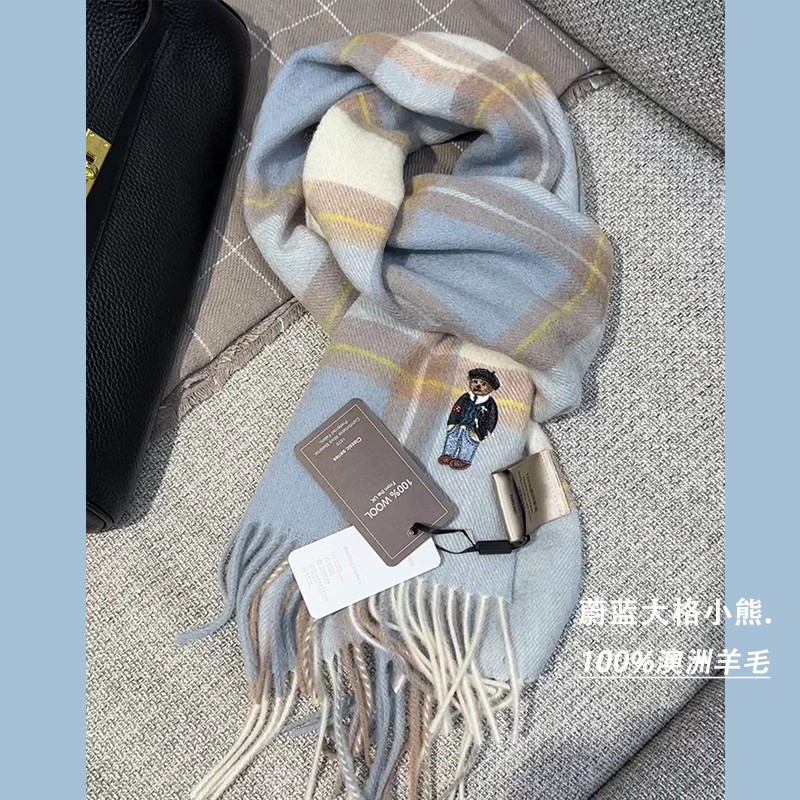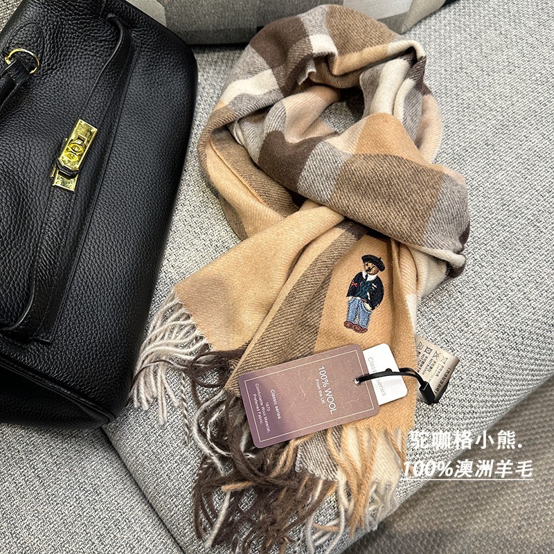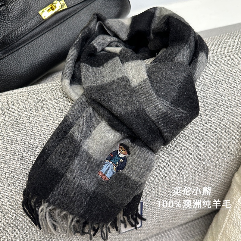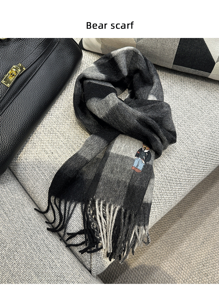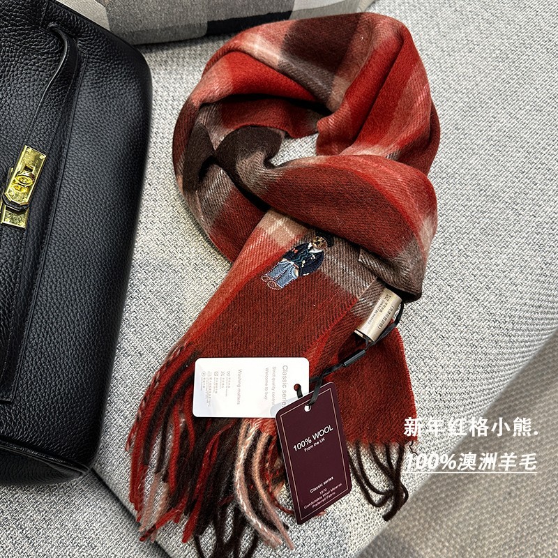 한정판! 여성용 영국 클래식 베어 호주 울 스카프, 겨울 체크무늬, 다용도 커플 스카프, 패셔너블한 태슬스토어 가기