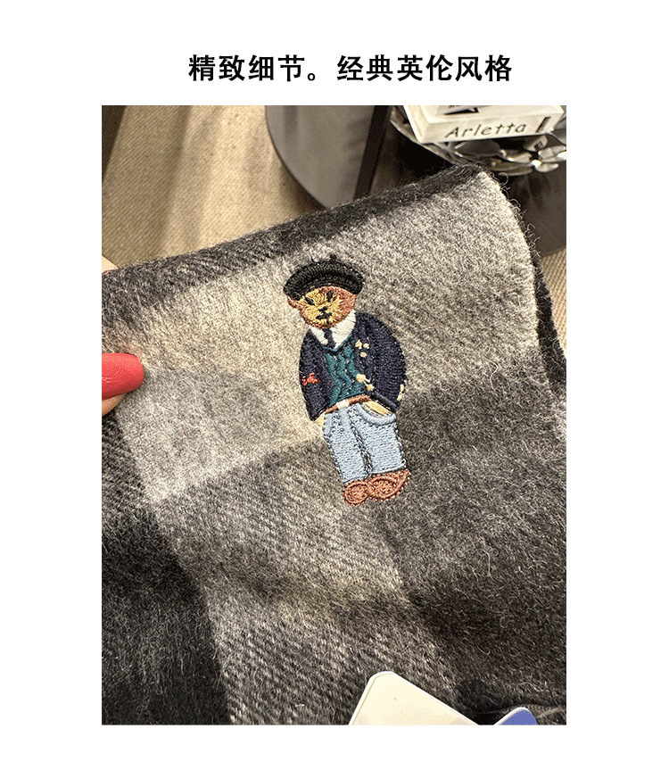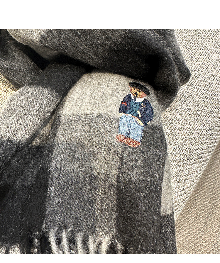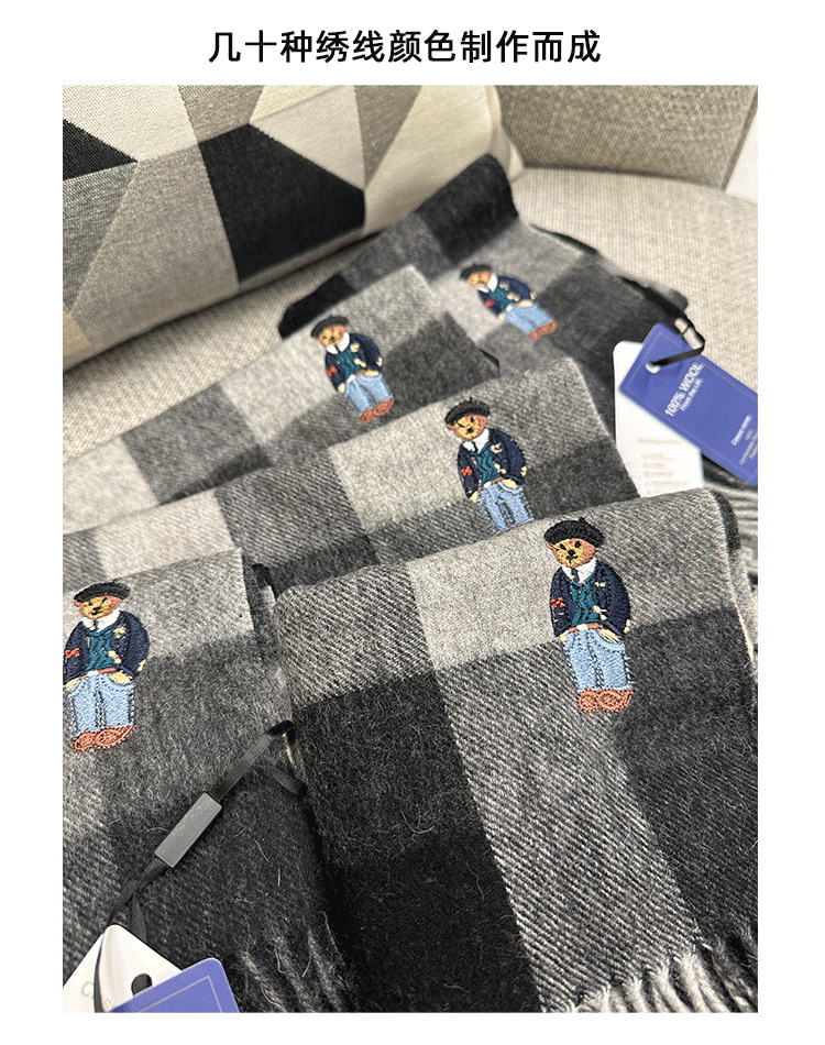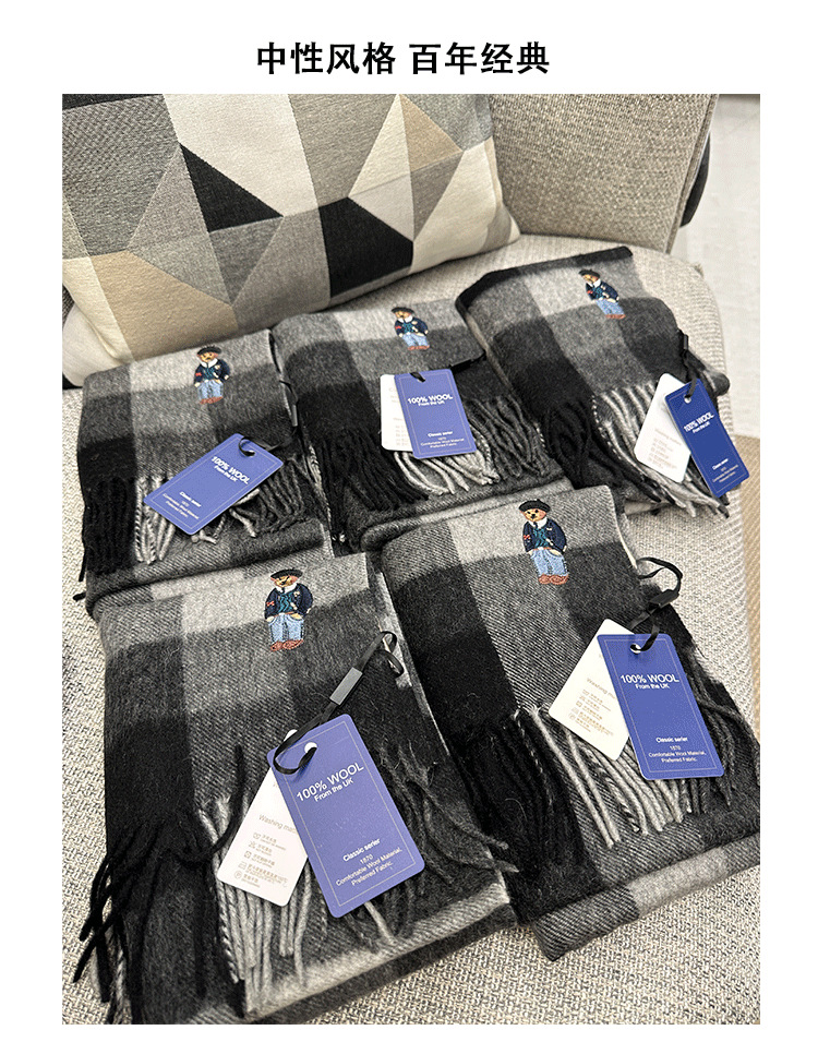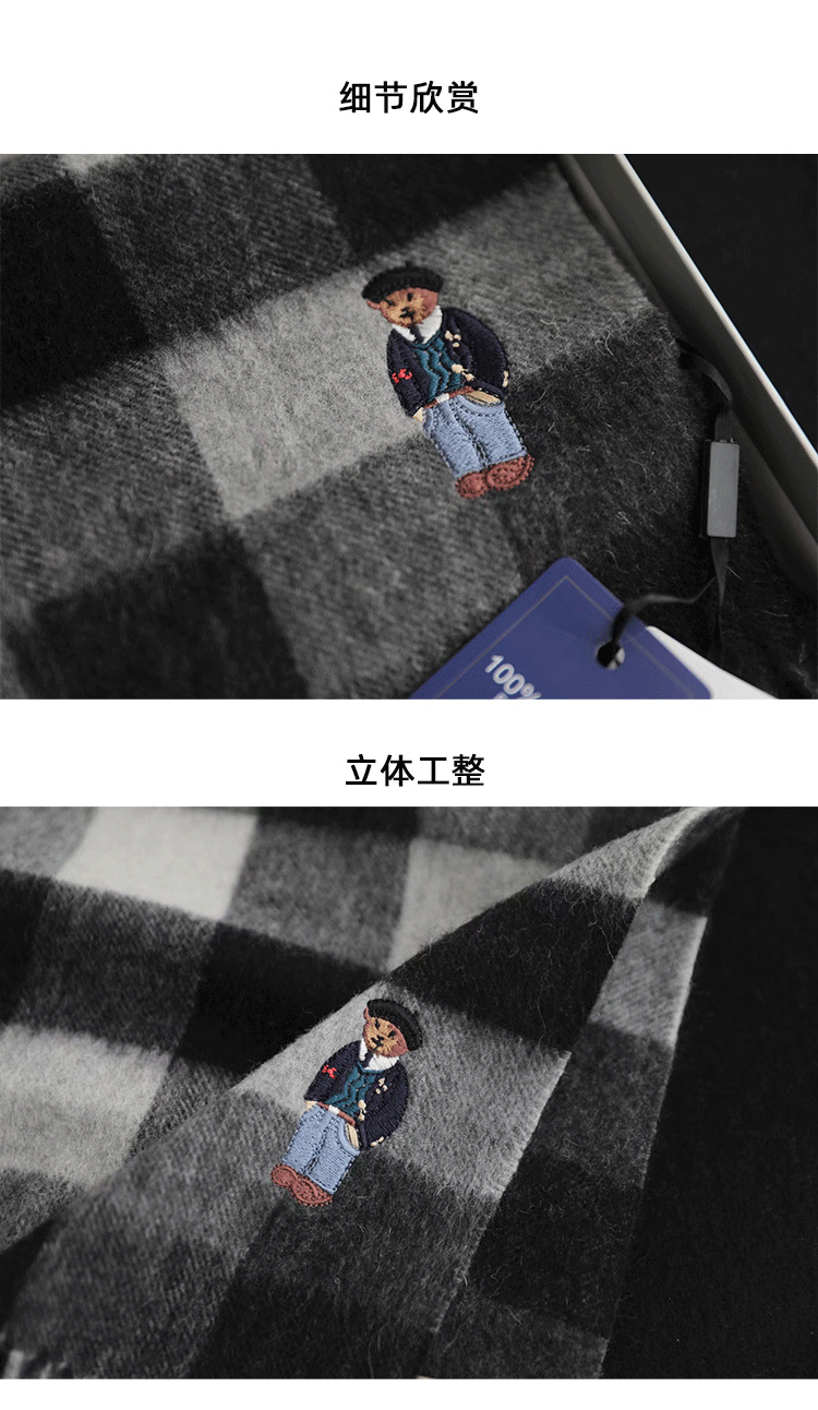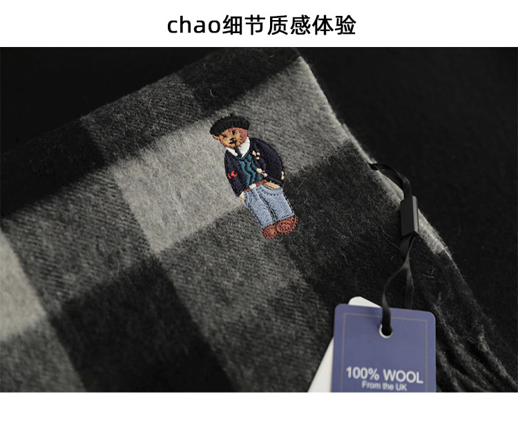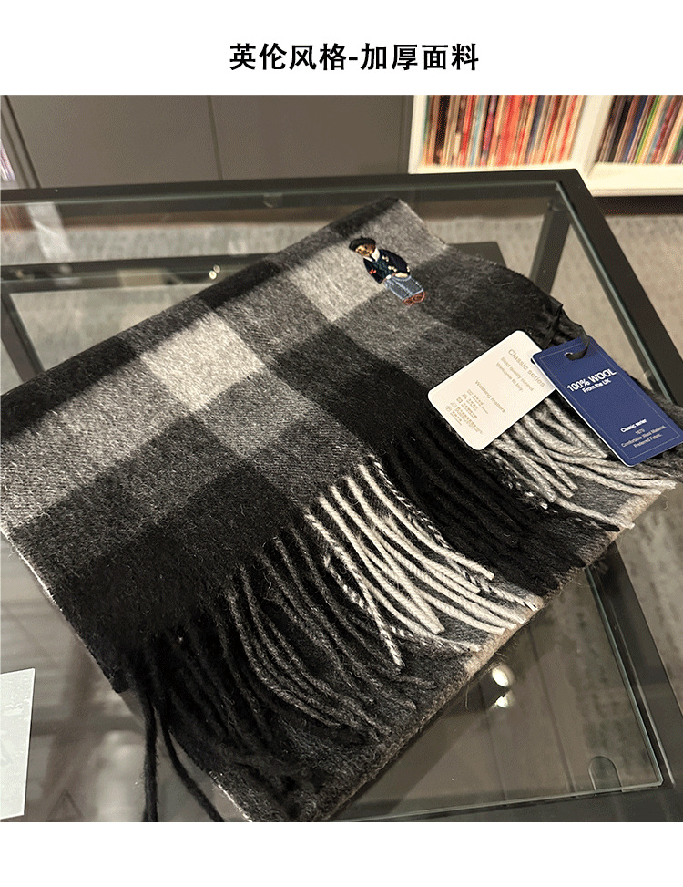 한정판! 여성용 영국 클래식 베어 호주 울 스카프, 겨울 체크무늬, 다용도 커플 스카프, 패셔너블한 태슬스토어 가기