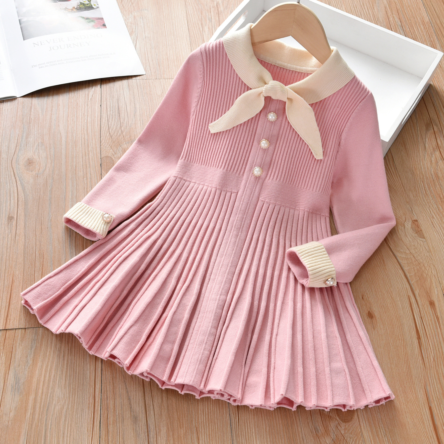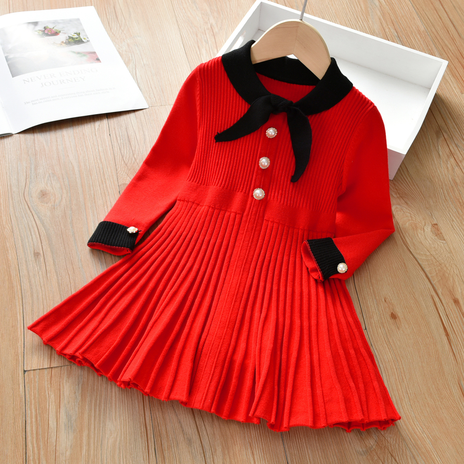 여아 원피스 봄 여아 아기 소녀의 서양 스타일 니트 원피스 2023 아동복 아동 레드 원피스 봄과 가을 스웨터 원피스스토어 가기