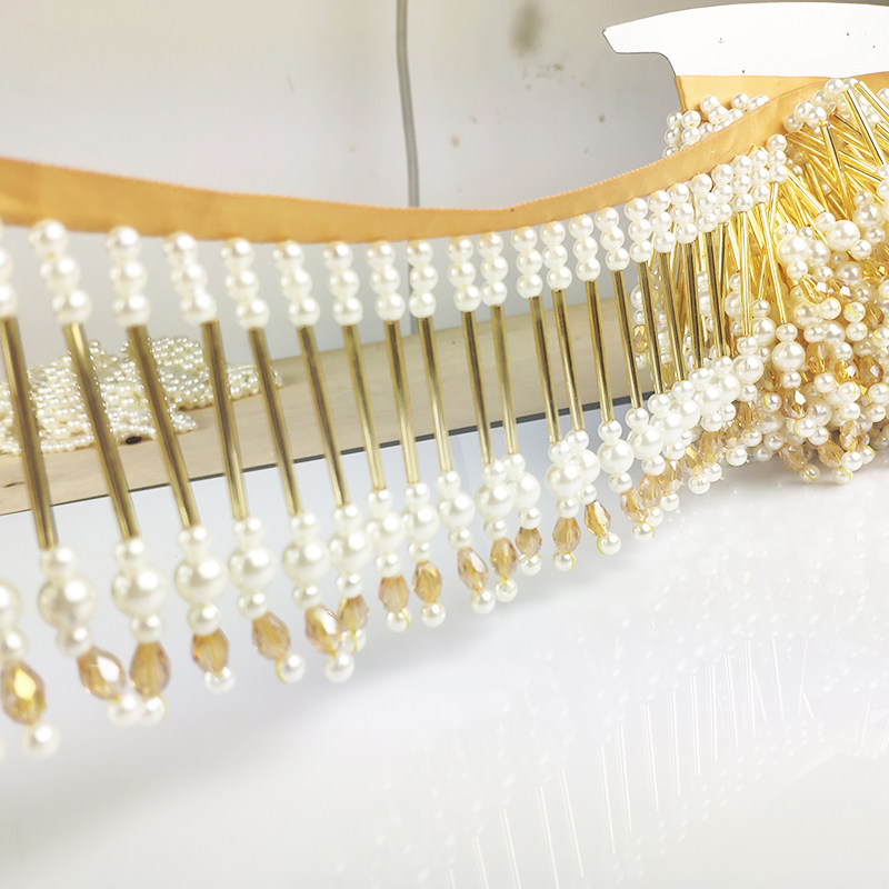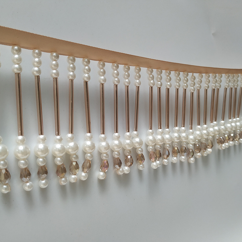황금 수제 문자열 긴 튜브 진주 술 웨딩 원피스 인도 모자 레이스 액세서리 홈 커튼 헤드 장식
