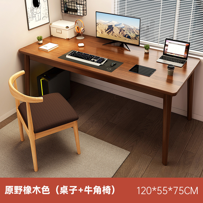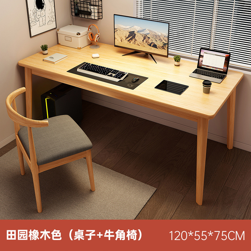 电脑桌台式家用学习桌实木腿书桌卧室床边电竞桌简约学生写字桌子