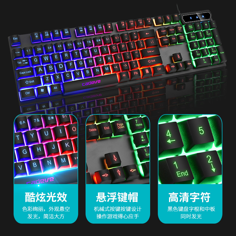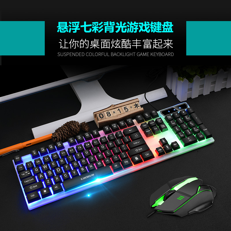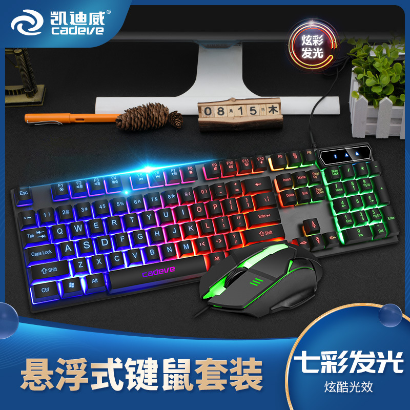 Kaidiwei 9122 유선 발광 키보드 마우스 세트 컴퓨터 기계 느낌 백라이트 DIY 키보드 마우스