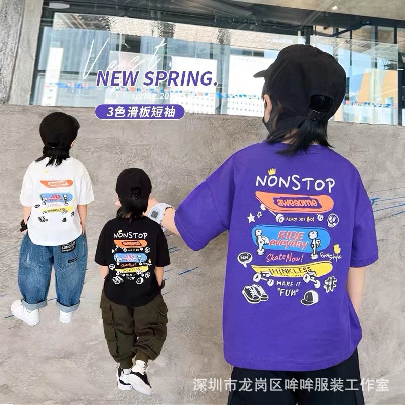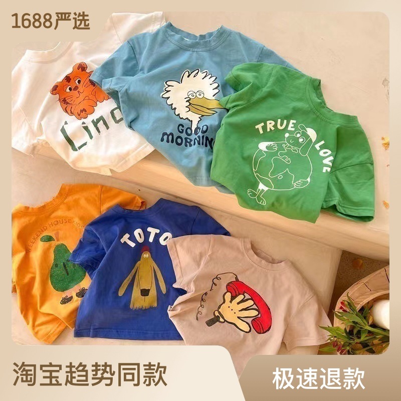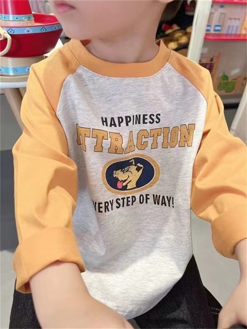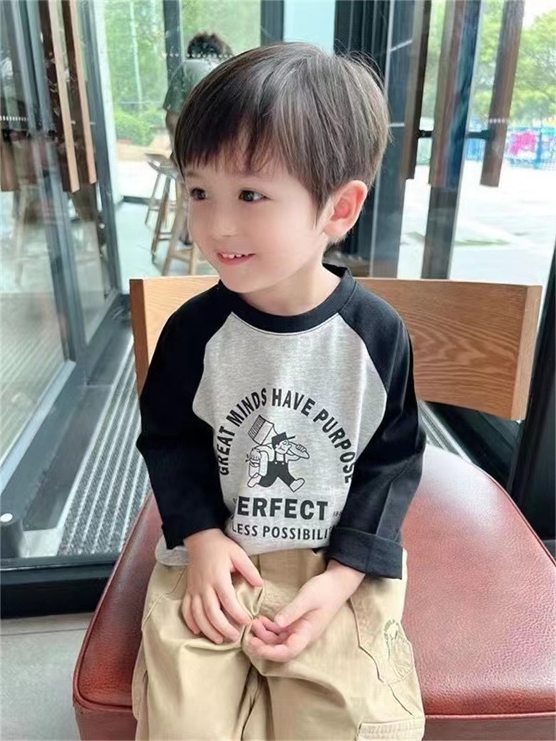 소년과 소녀를위한 아동용 면 긴팔 티셔츠 봄과 가을 라운드 넥 탑스토어 가기