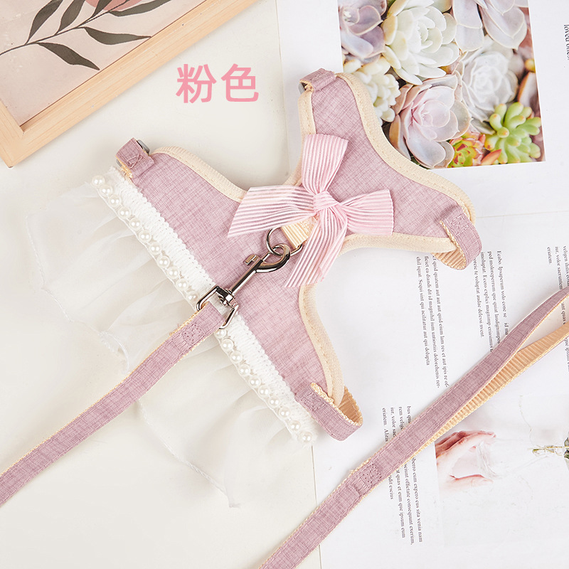 고양이 개 조끼 스타일 견인 로프 안티 브레이크 작은 개 테디 쓴 곰 Beaumi 가슴 스트랩 공주 원피스