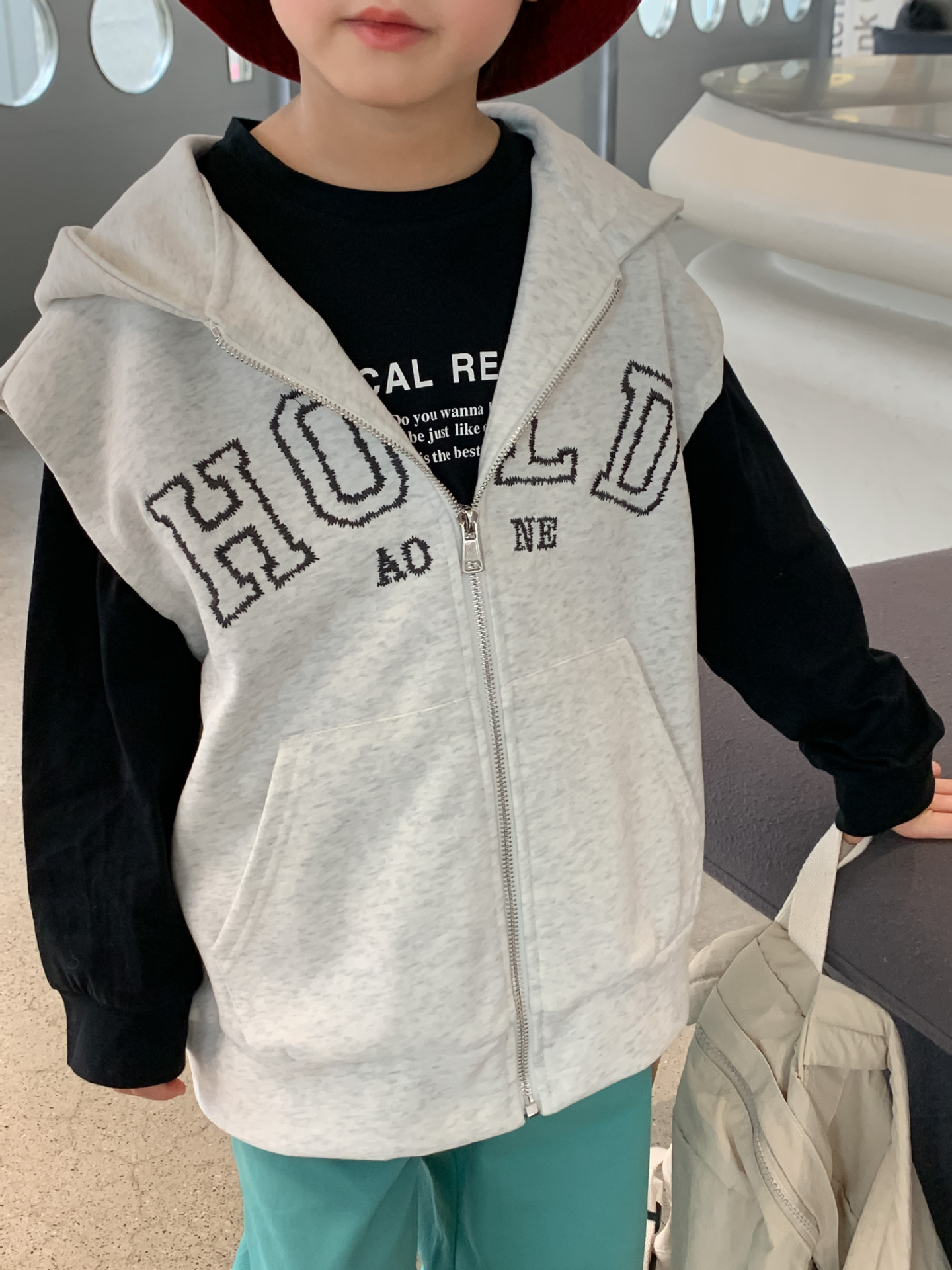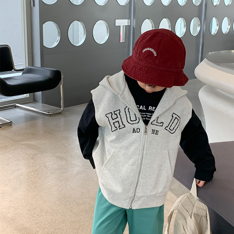어린이 후드 아웃웨어 조끼 2023 봄 한국 스타일 소년 패션 자수 지퍼 조끼 아기 캐주얼 조끼스토어 가기
