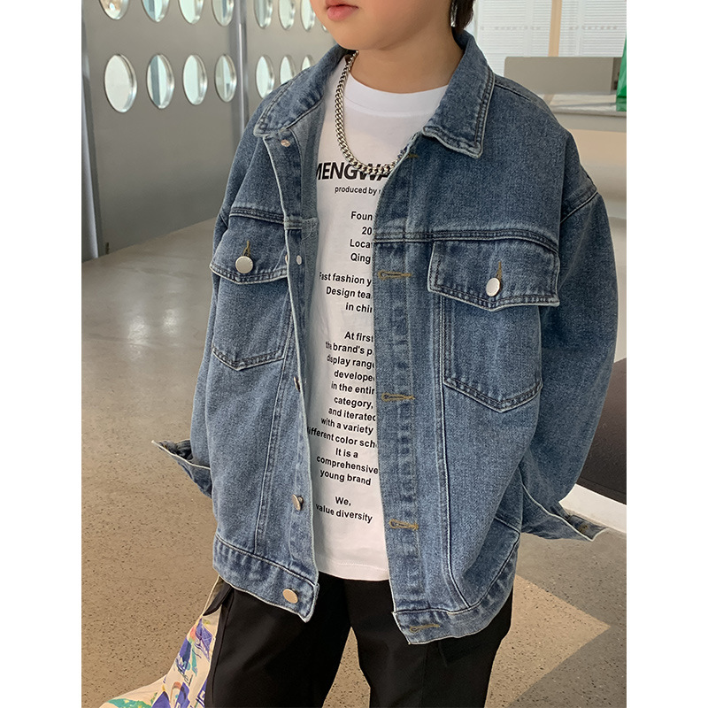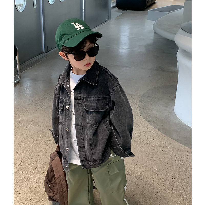 남아용 코트, 대형 아동용 데님 자수 아동용 코트, 새로운 2025 가을 한국 스타일 아동복 남아용 재킷스토어 가기