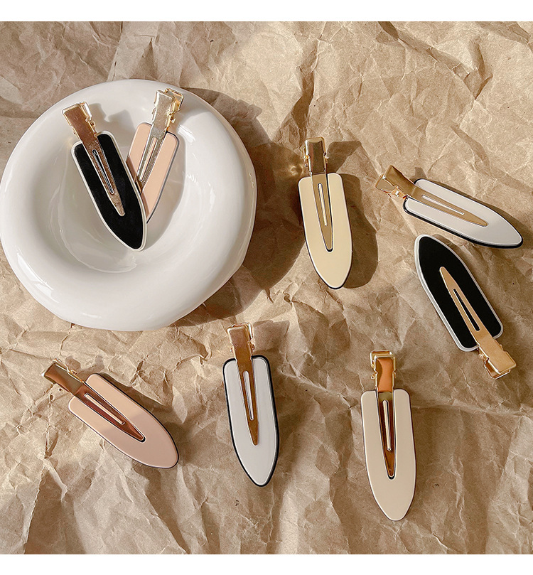 빈티지 향기로운 스타일 우아한 흑백 원활한 사이버 연예인 부러진 머리 클립 옆 앞머리 Duckbill 클립 머리 장식 사이버 연예인