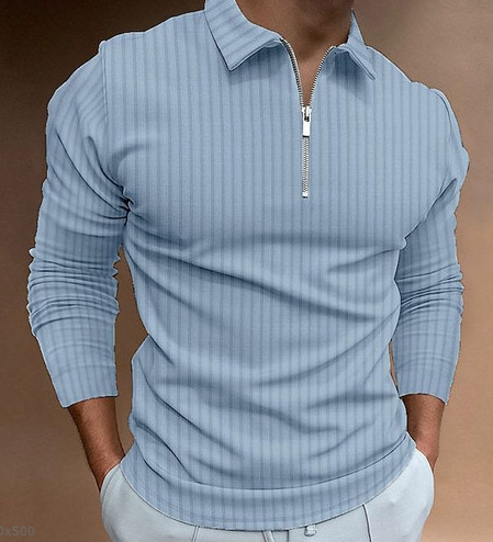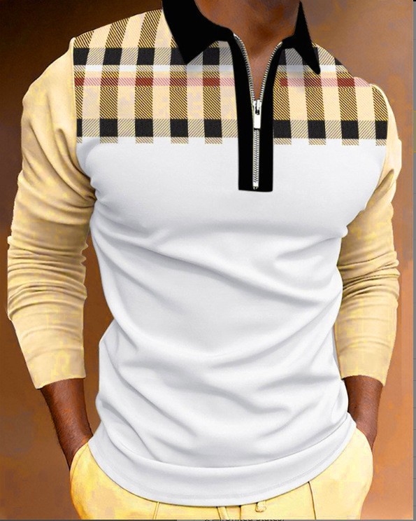 대외 무역 가을 새로운 남자의 디지털 인쇄 단색 스트라이프 지퍼 폴로 셔츠 폴 셔츠 폴로 셔츠 남자