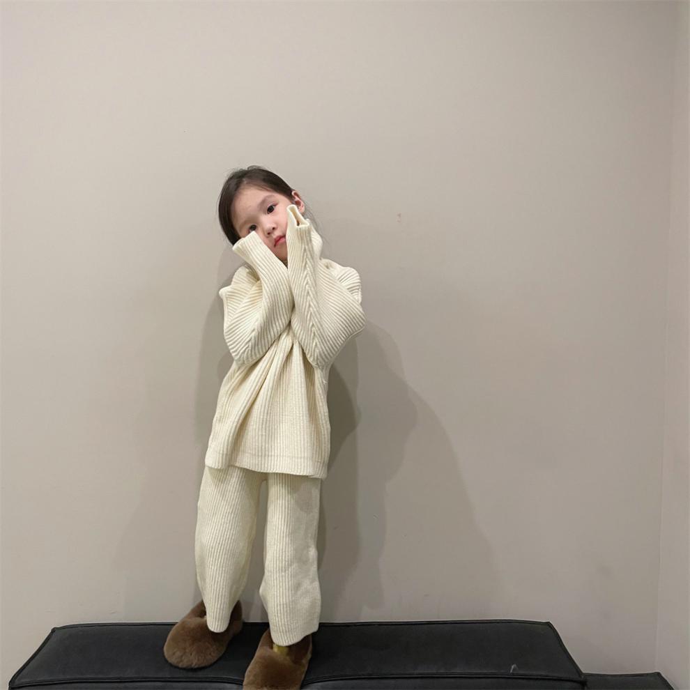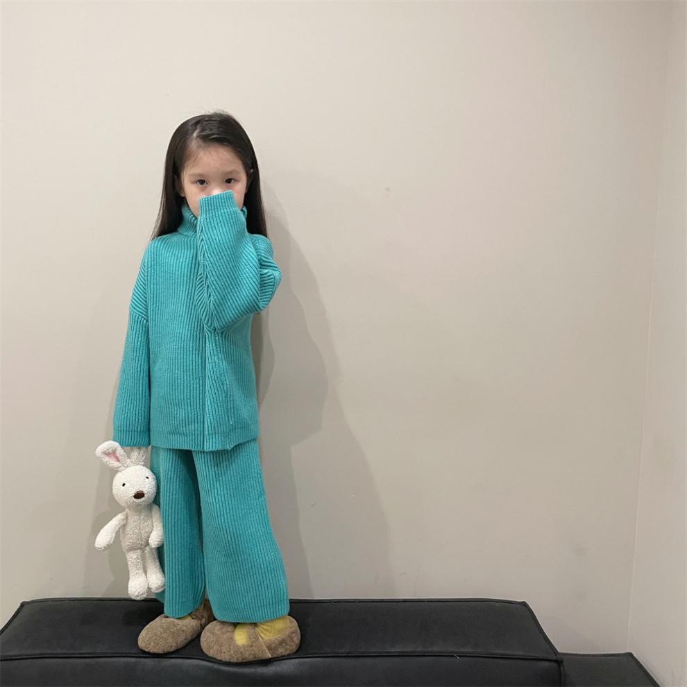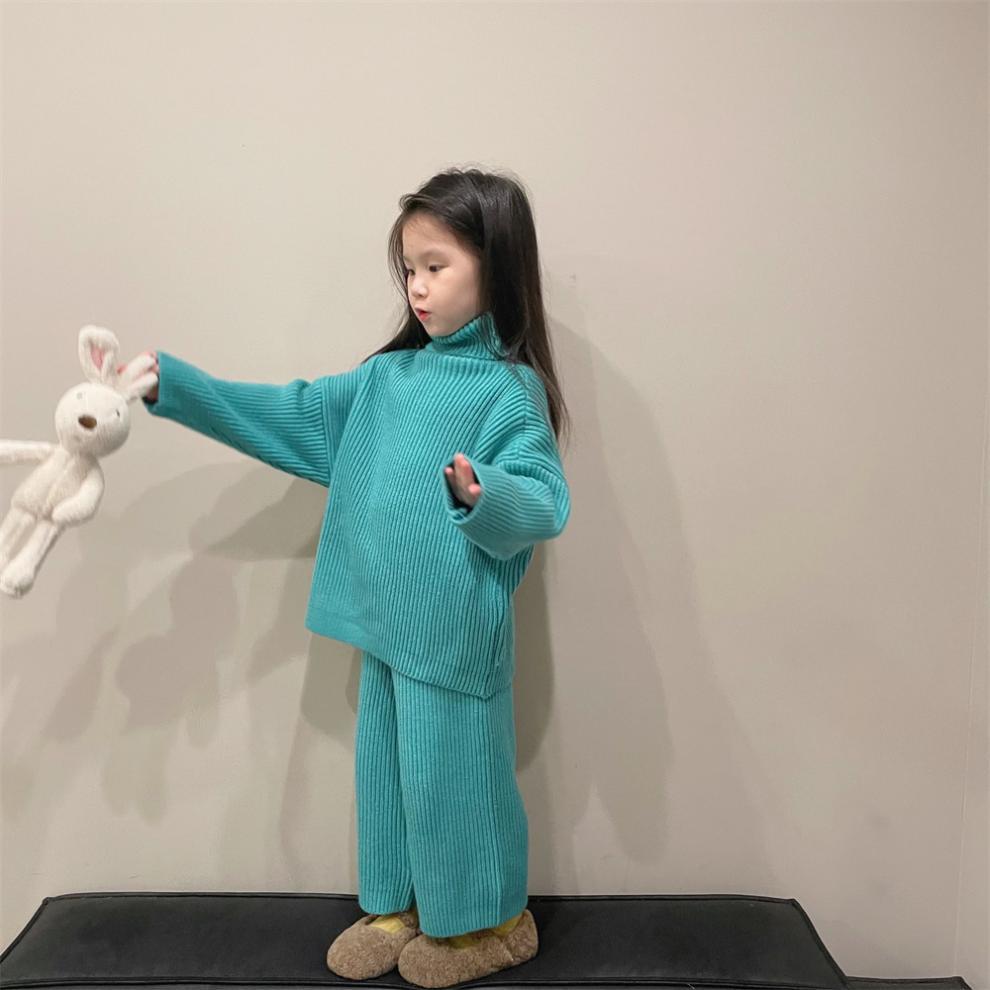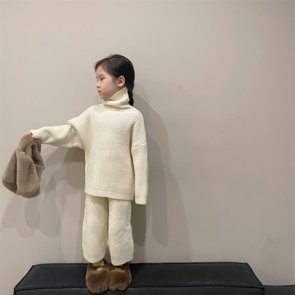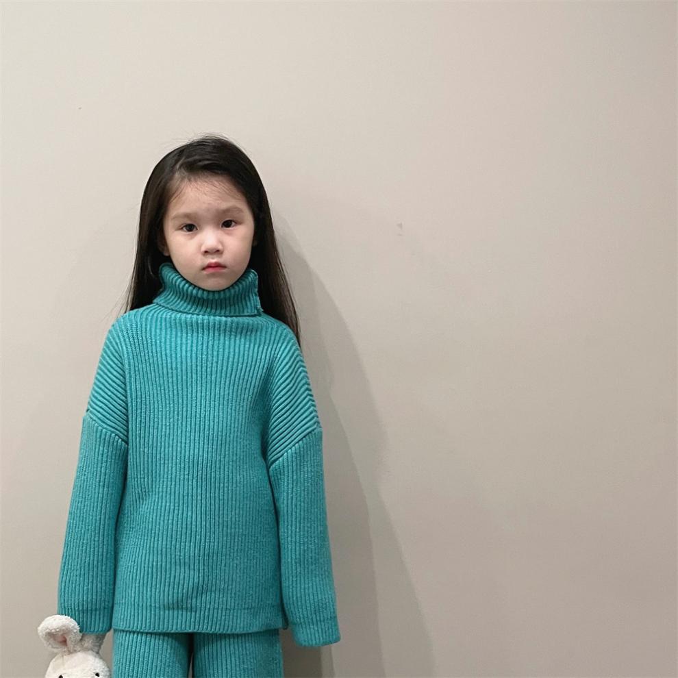 어린이 한국 느슨한 캐주얼 투피스 세트 소년과 소녀 니트웨어 어린이 가을과 겨울 두꺼운 터틀넥 스웨터 세트
