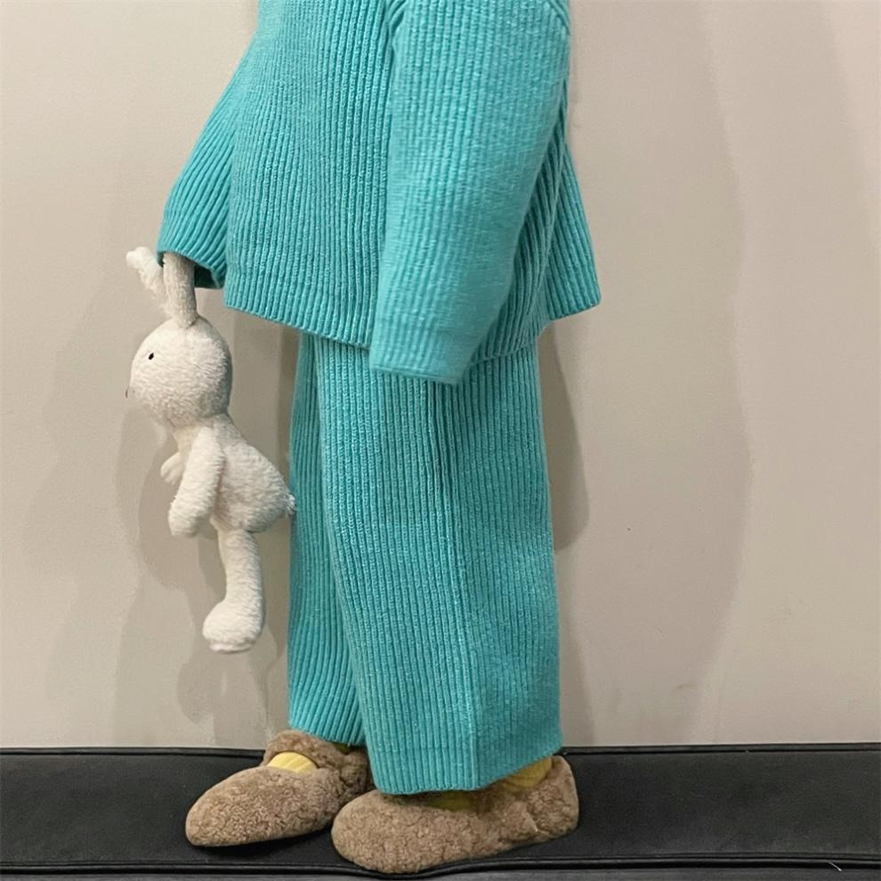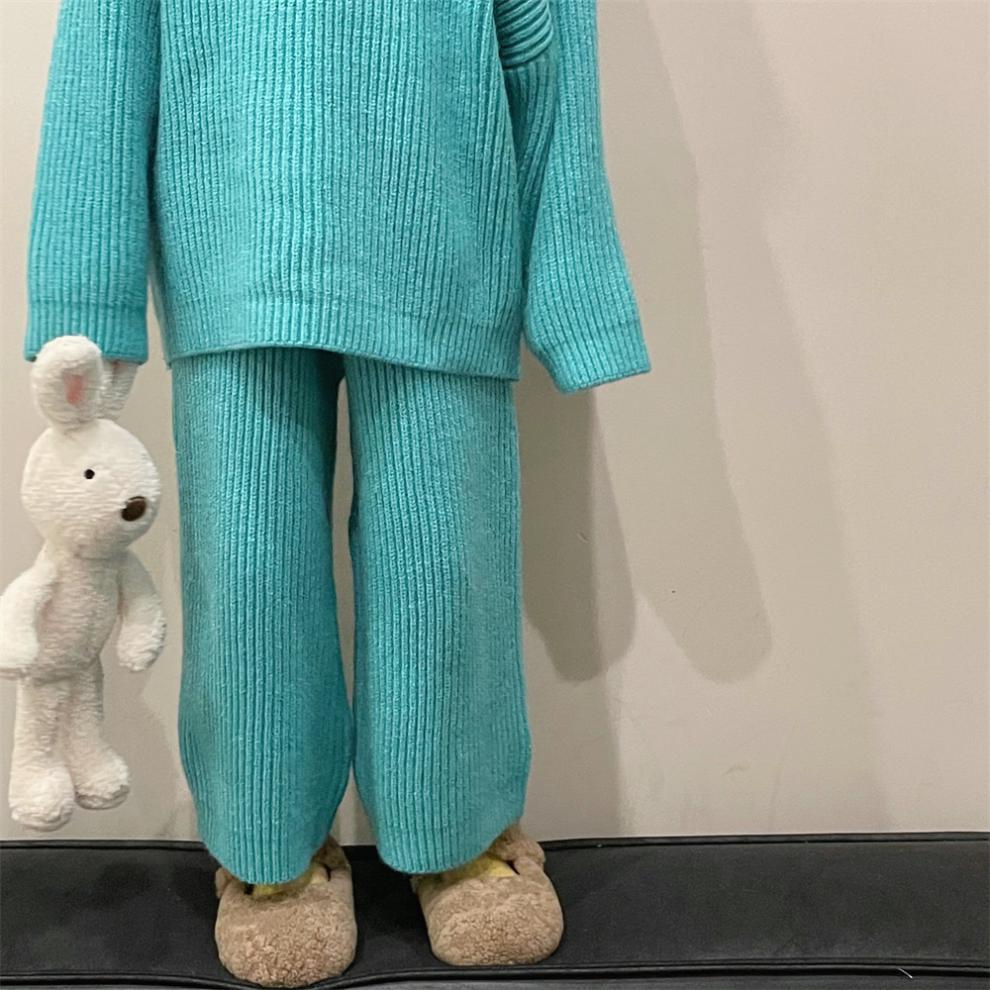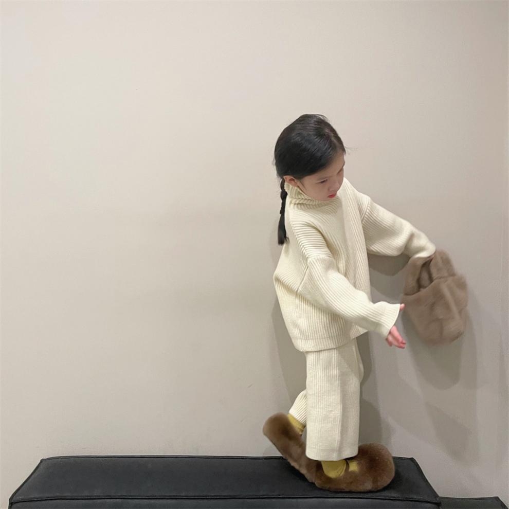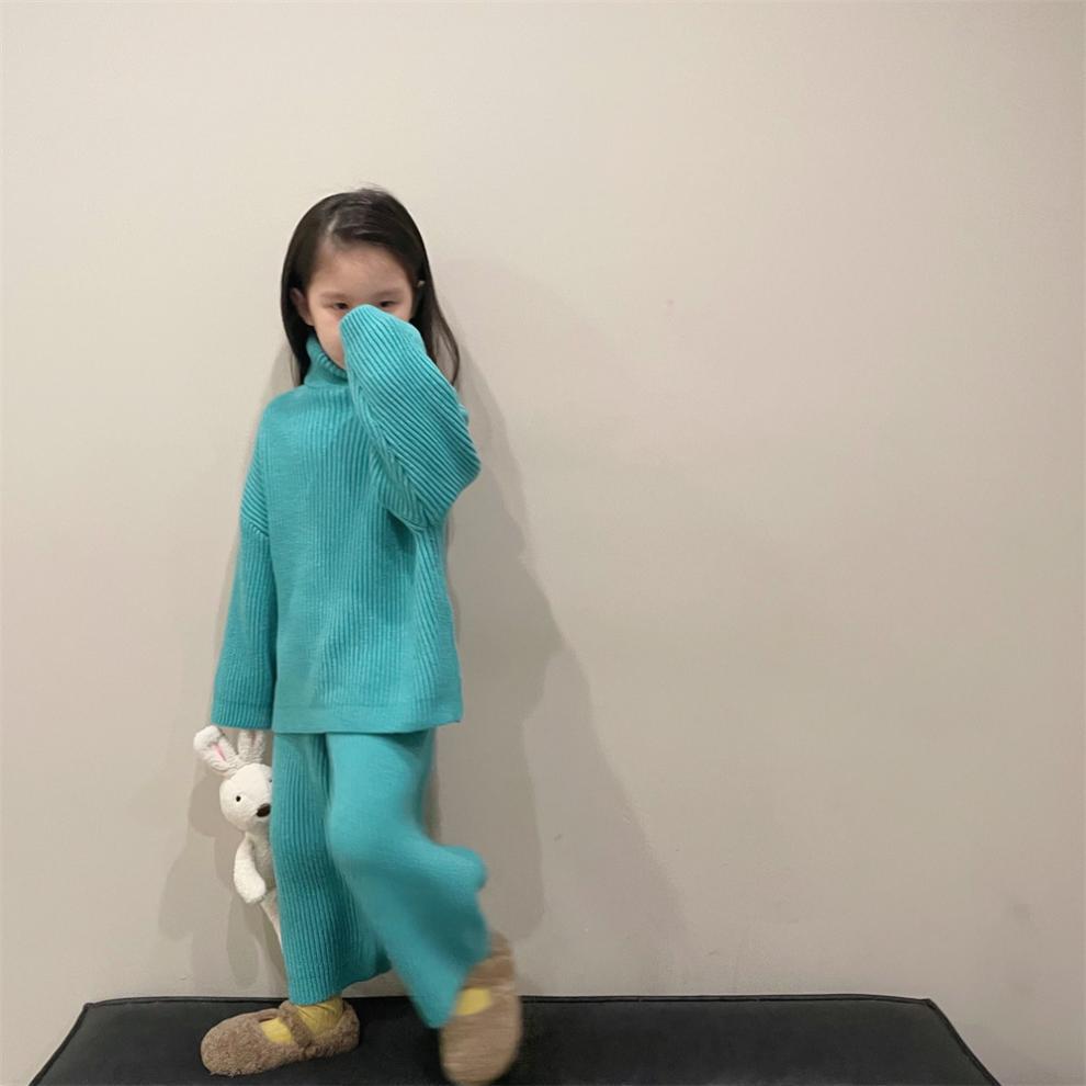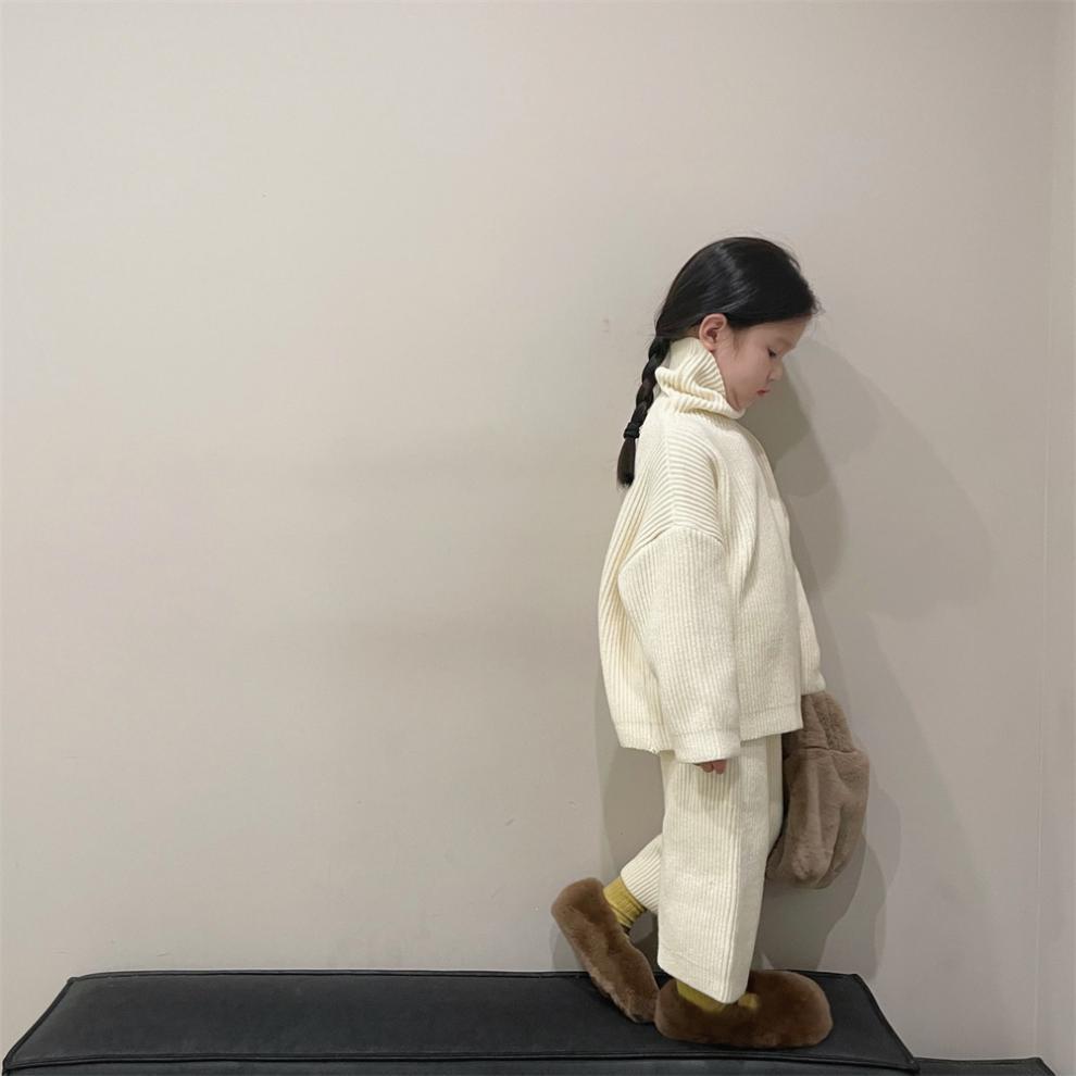 어린이 한국 느슨한 캐주얼 투피스 세트 소년과 소녀 니트웨어 어린이 가을과 겨울 두꺼운 터틀넥 스웨터 세트