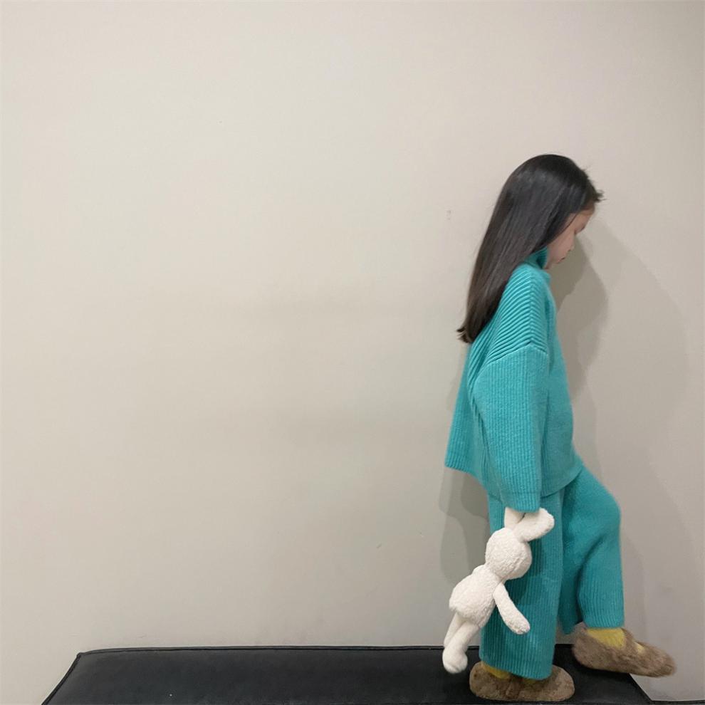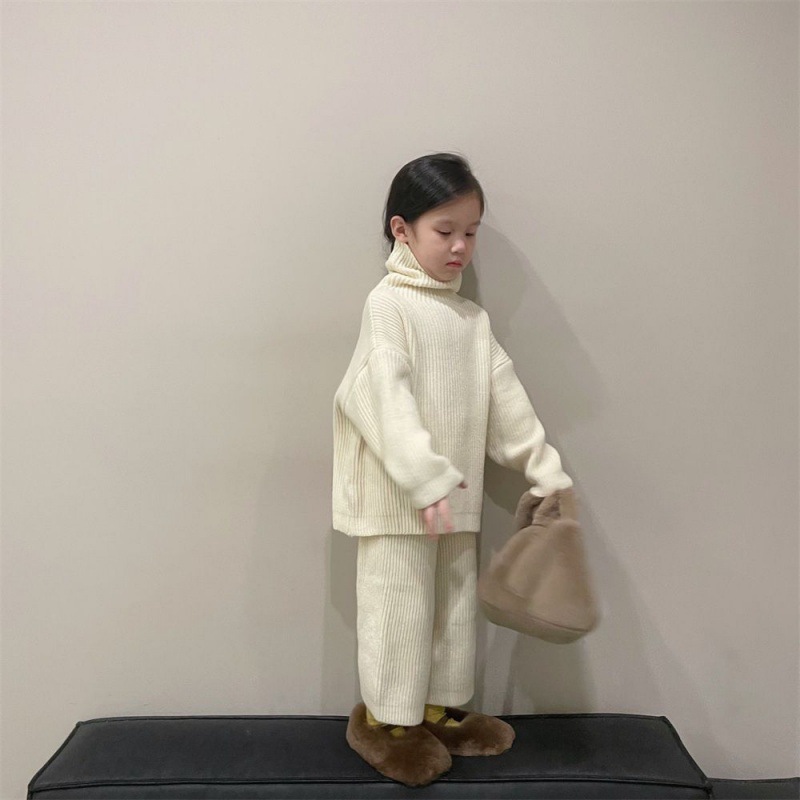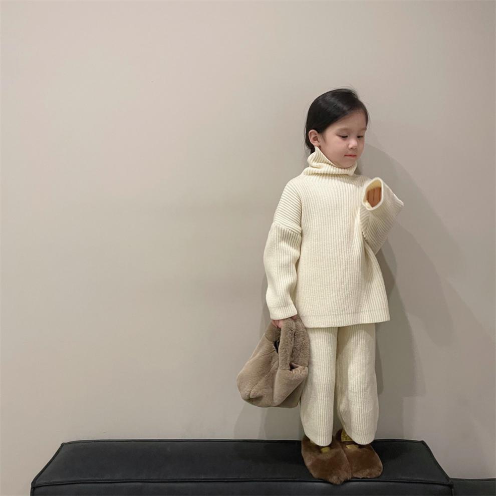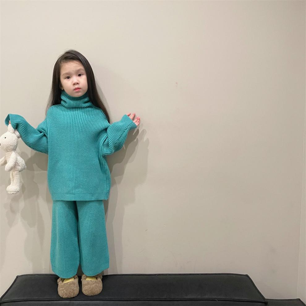 어린이 한국 느슨한 캐주얼 투피스 세트 소년과 소녀 니트웨어 어린이 가을과 겨울 두꺼운 터틀넥 스웨터 세트스토어 가기