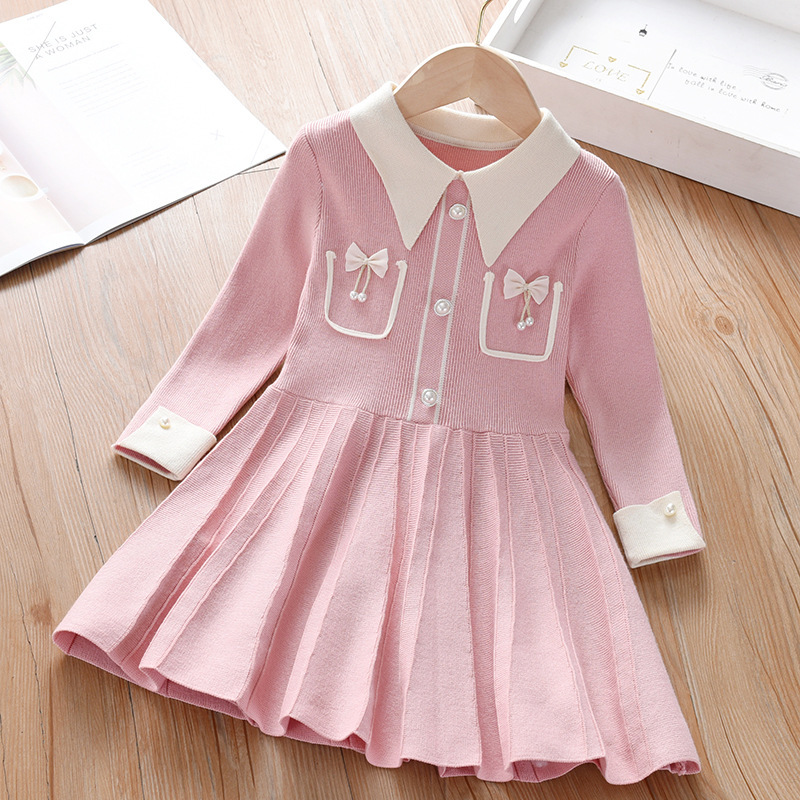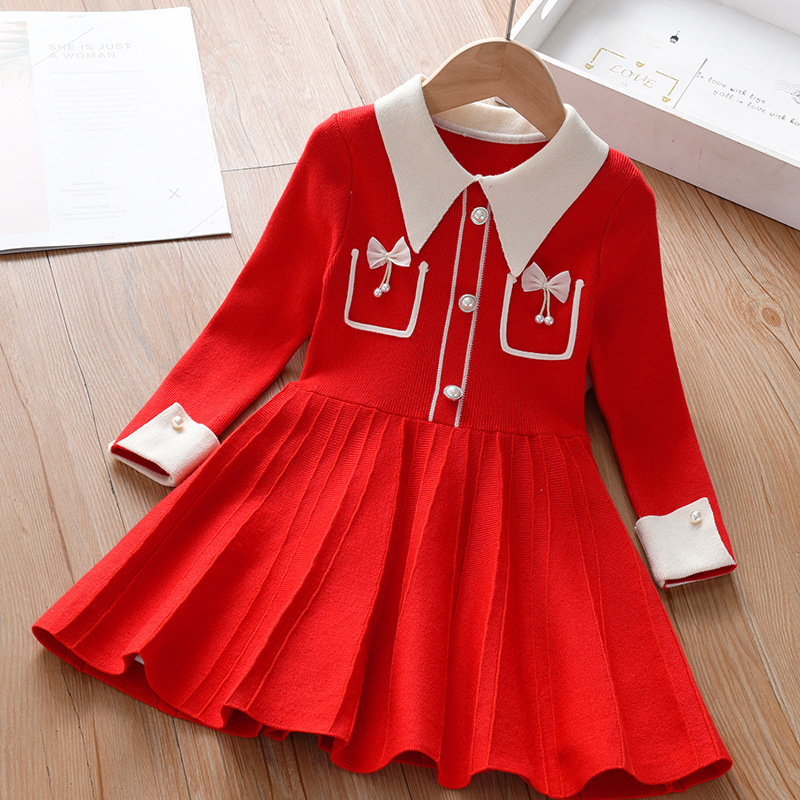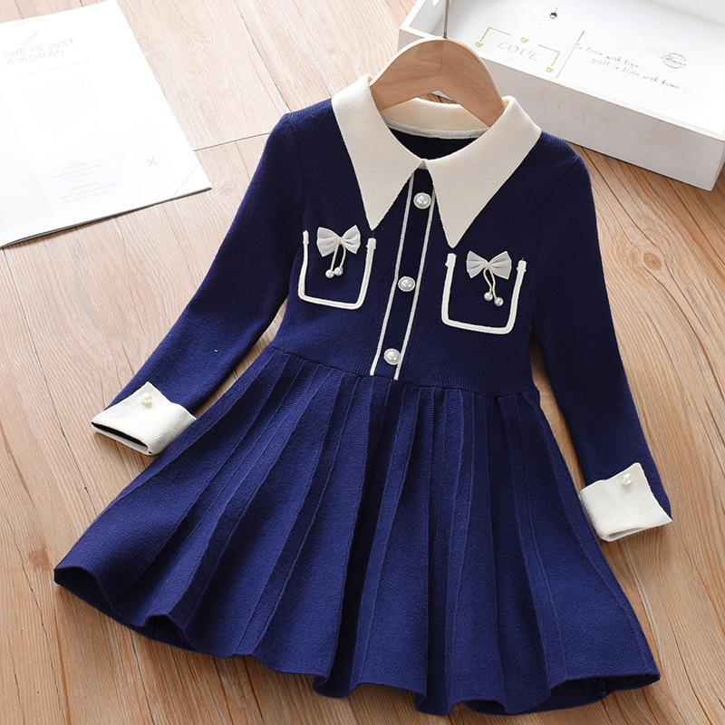 소녀의 가을 옷 원피스 향기로운 스타일 어린이의 봄과 가을 서양 스타일 울 스커트 아기 공주 스커트 가을과 겨울 스웨터 스커트