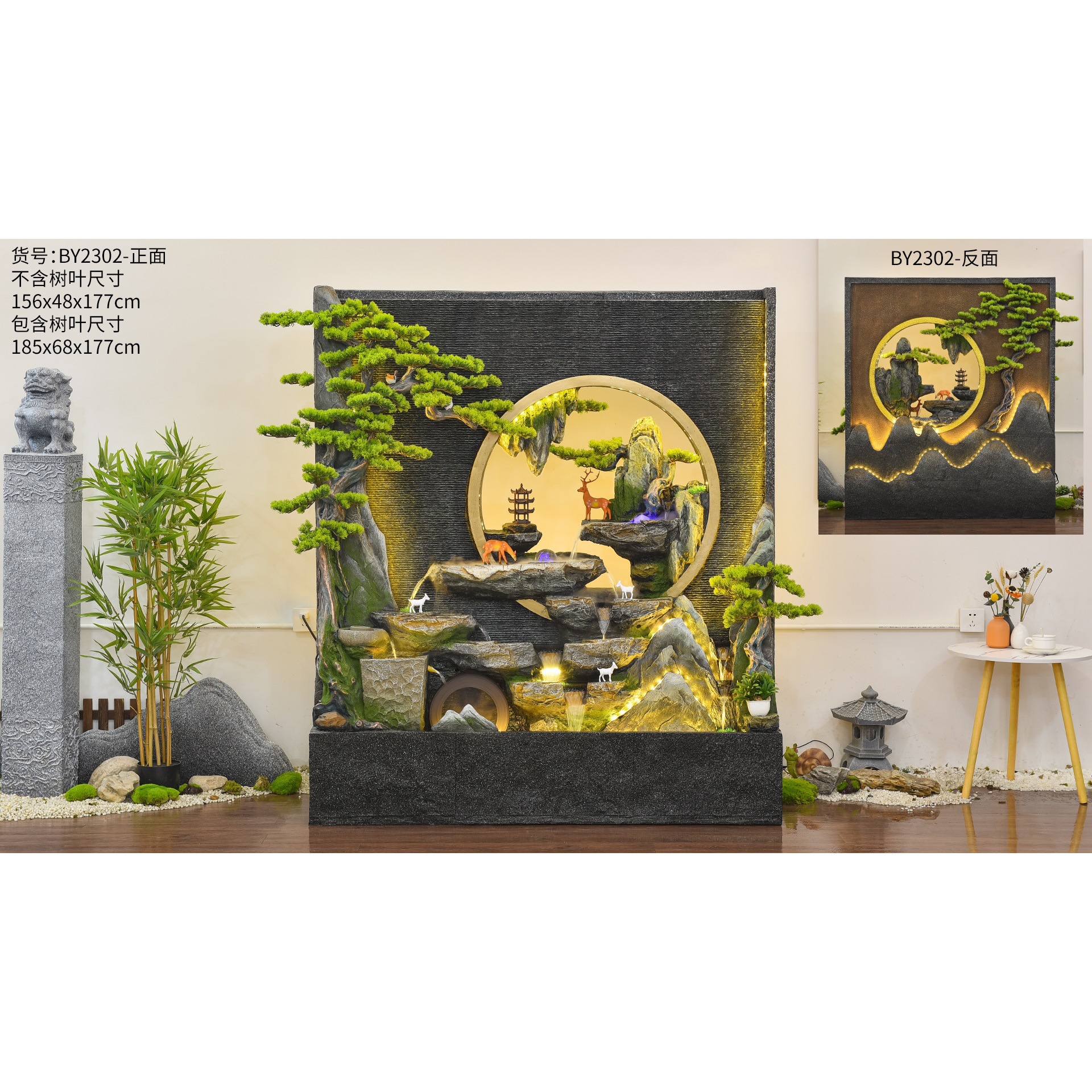 워터 커튼 벽 바위 유수 분수 베란다 사무실 실내 및 실외 스크린 안뜰 물고기 연못 복 장식 조경 장식품
