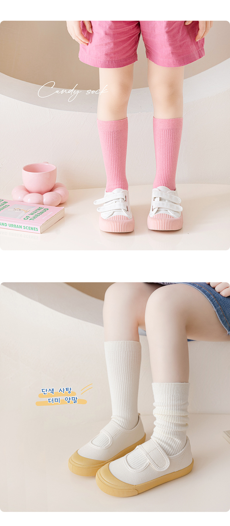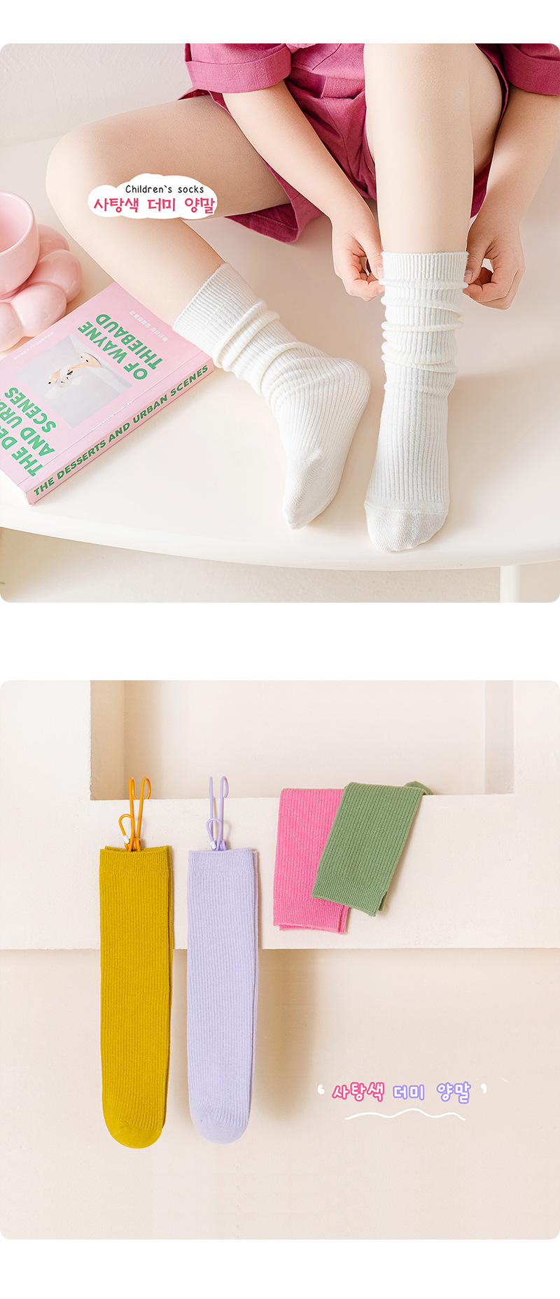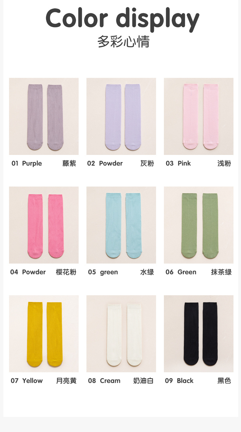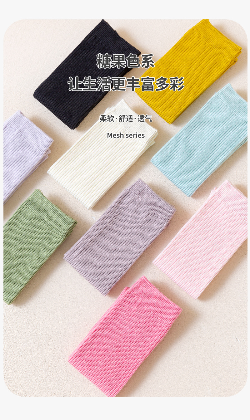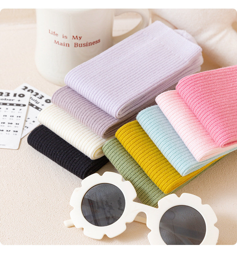 샤오치나미 2025 가을 겨울 신상품 종아리 양말 한국 스타일 스트라이프 이중 바늘 어린이 양말 캔디 컬러 파일 양말스토어 가기