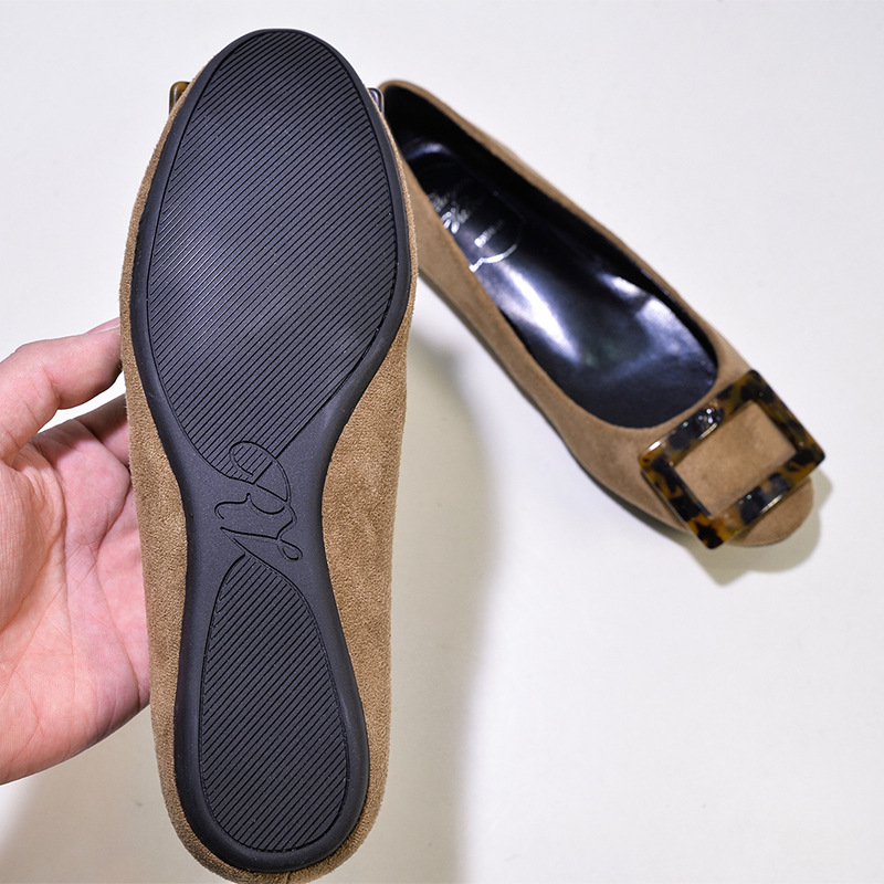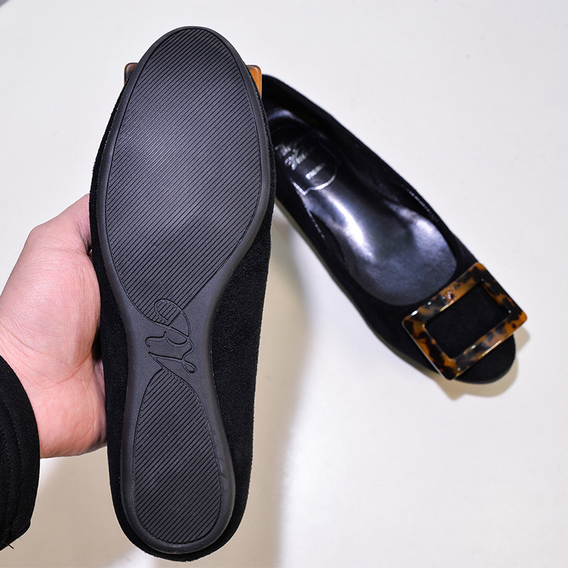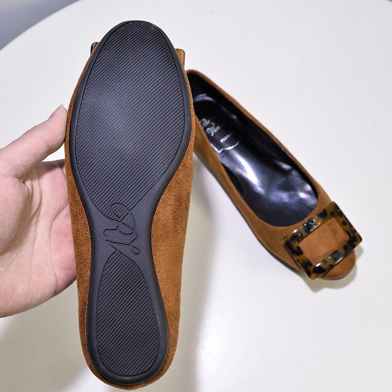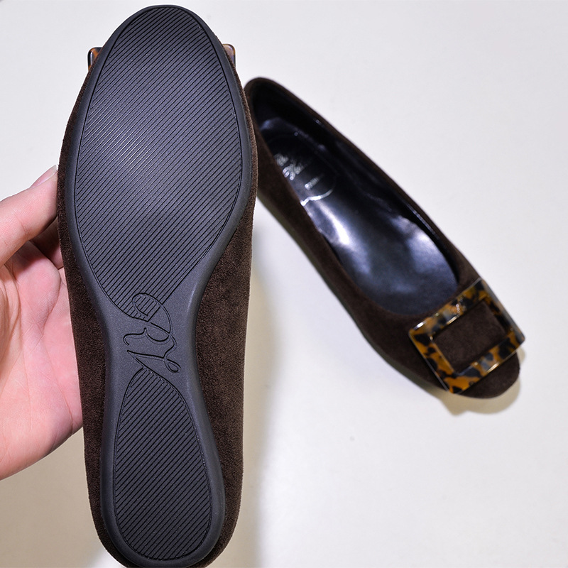 [재고] rv 마노 매 부리 스퀘어 버클 플랫 슈즈 여성의 얕은 입 얕은 입 복고풍 스웨이드 신발의 세대
