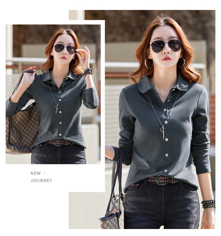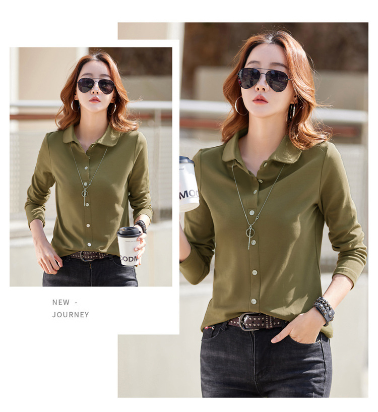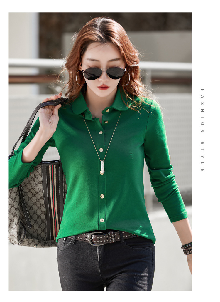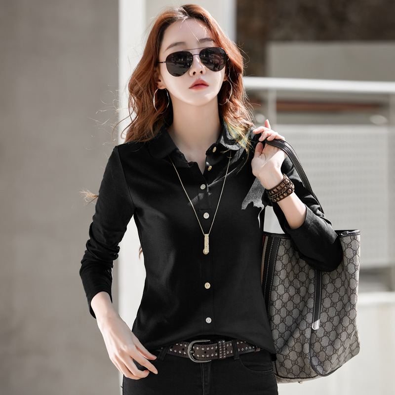82308 긴팔 POLO 칼라 심플 아우터 티셔츠 여성용 베이스 셔츠 봄과 여름 새로운 슬림핏 슬리밍 솔리드 컬러
