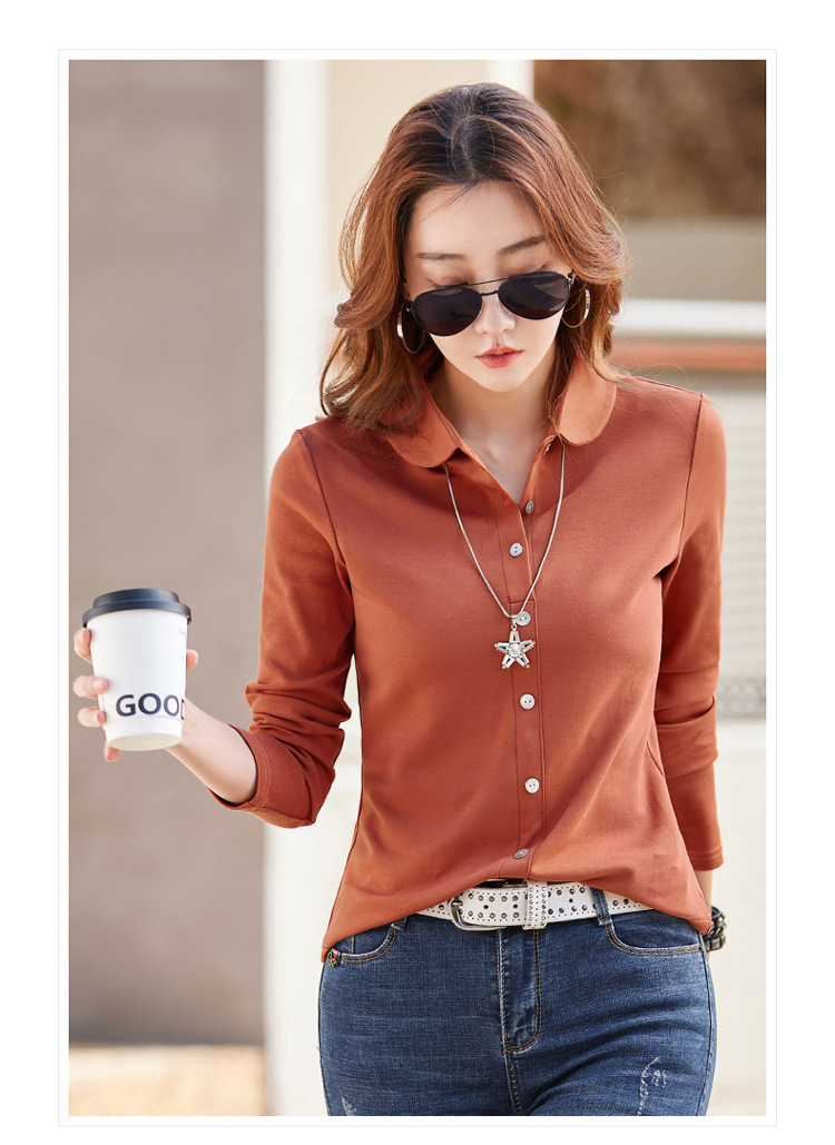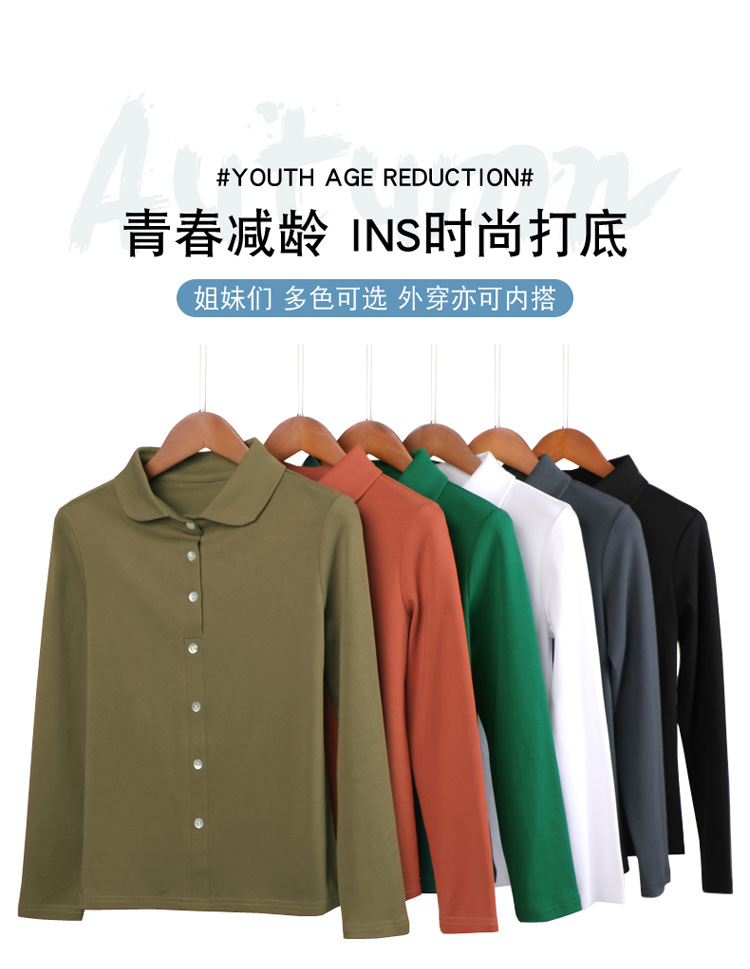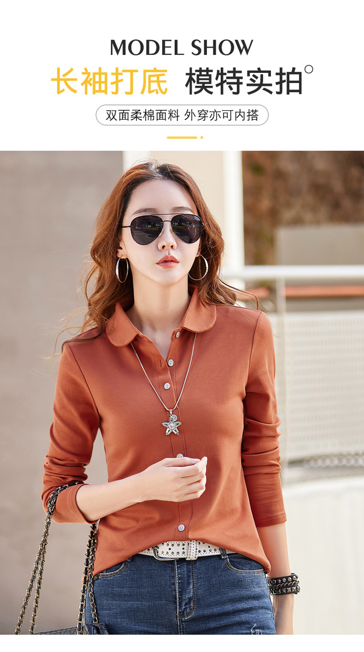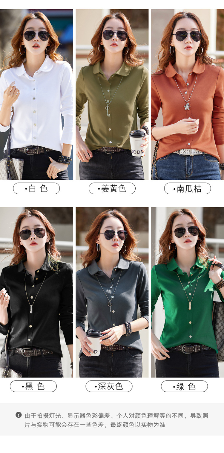 82308 긴팔 POLO 칼라 심플 아우터 티셔츠 여성용 베이스 셔츠 봄과 여름 새로운 슬림핏 슬리밍 솔리드 컬러스토어 가기