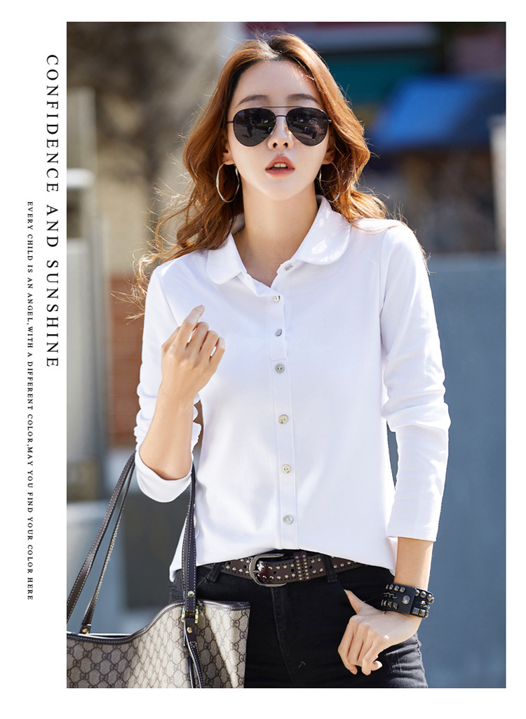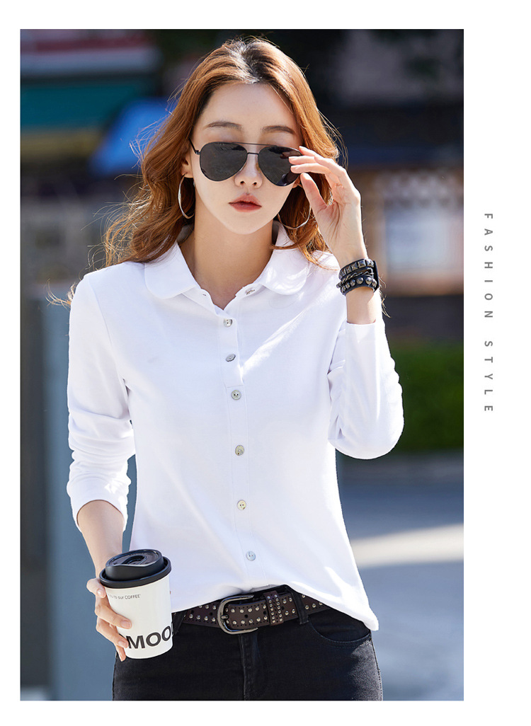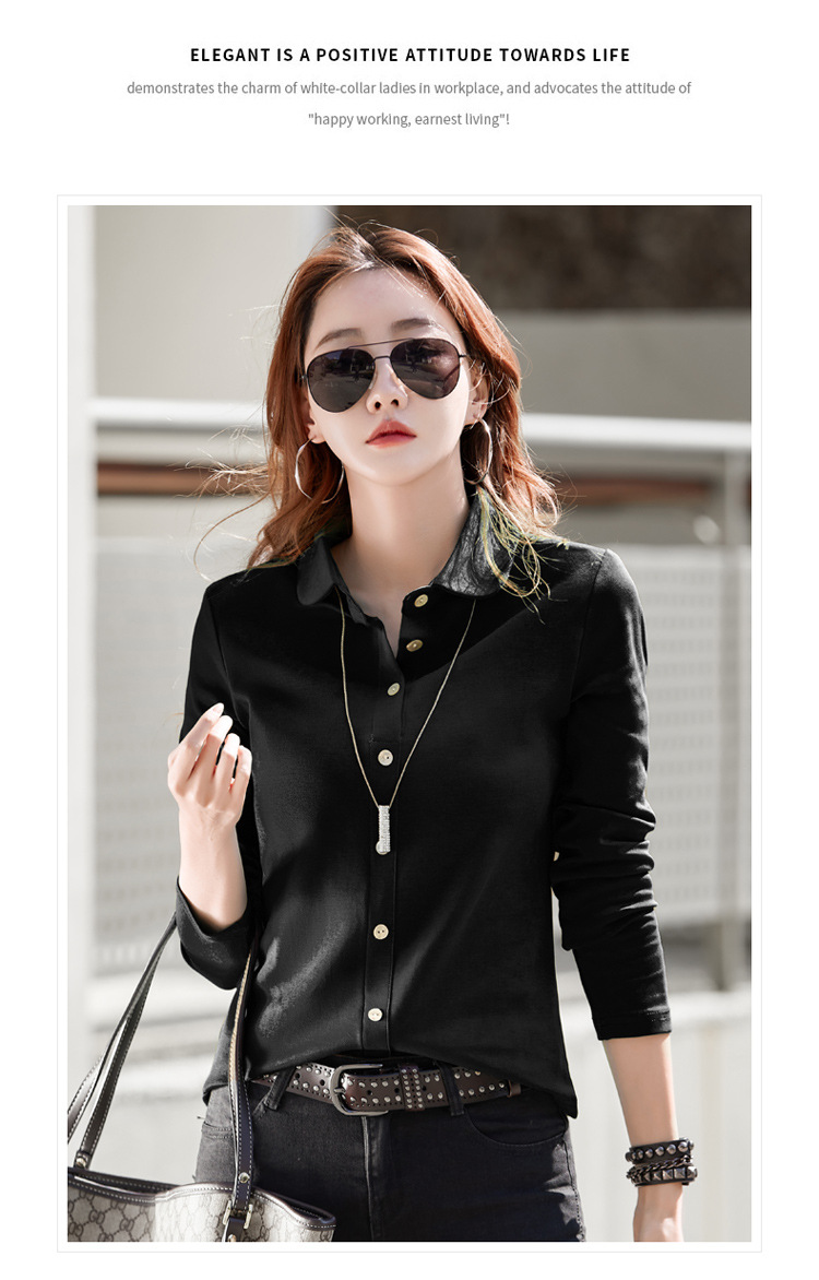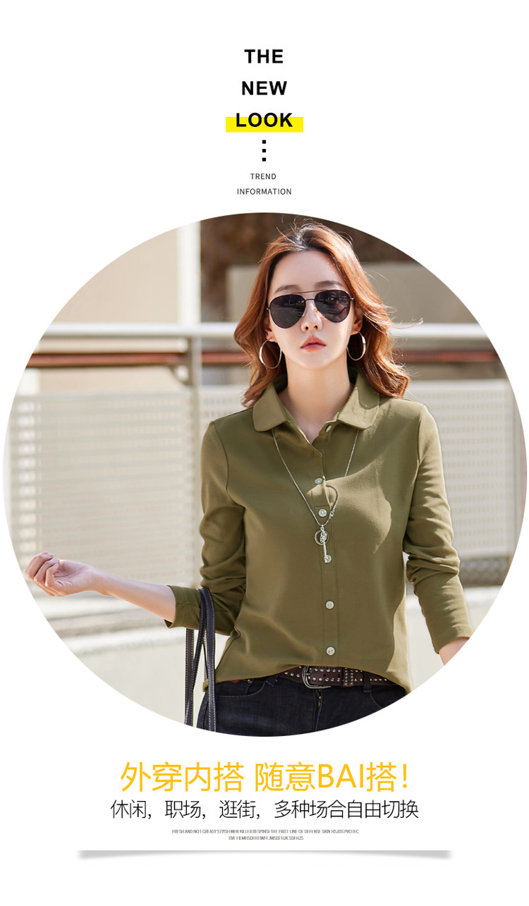 82308 긴팔 POLO 칼라 심플 아우터 티셔츠 여성용 베이스 셔츠 봄과 여름 새로운 슬림핏 슬리밍 솔리드 컬러스토어 가기