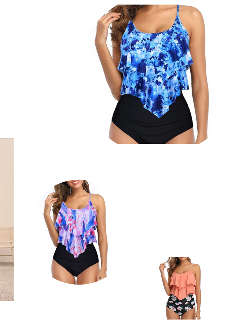 2023欧美 比基尼 高腰印花挂脖绑带泳衣女分体泳衣泳装显瘦