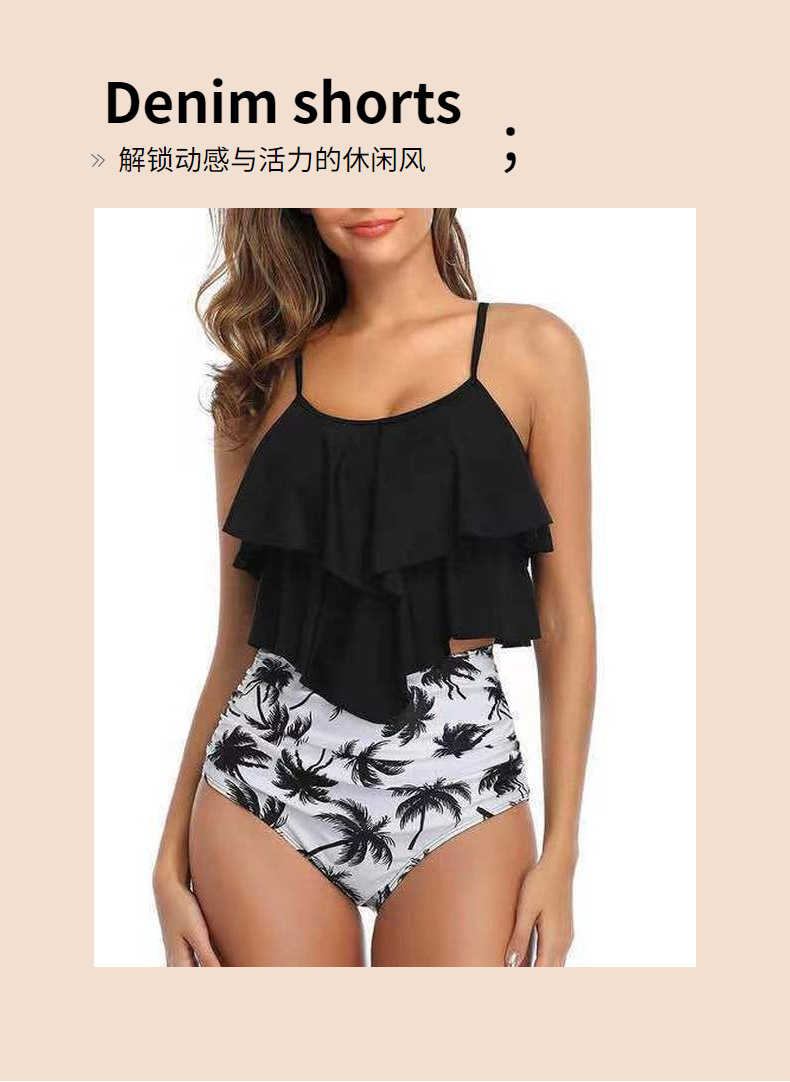 秋季新款 欧美性感 纯色荷叶边 无钢圈分体套装比基尼