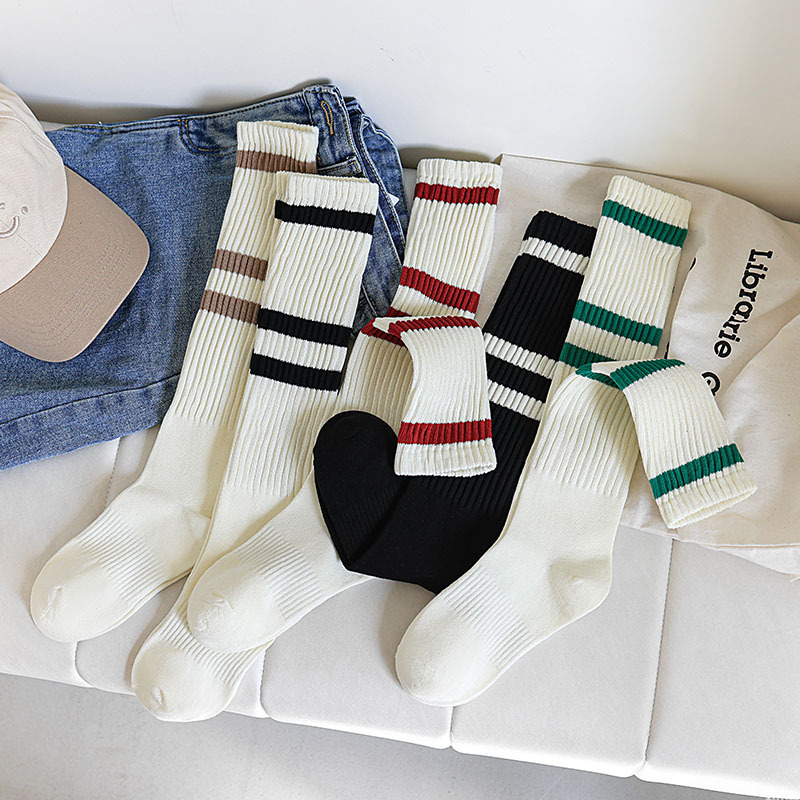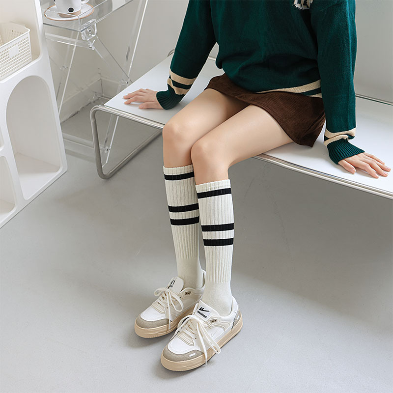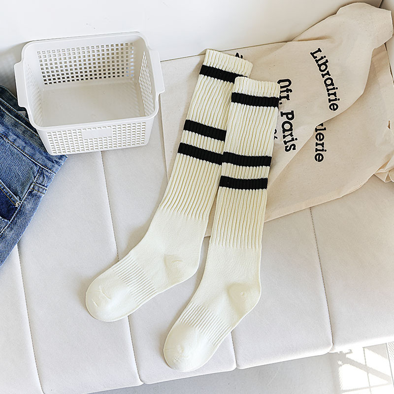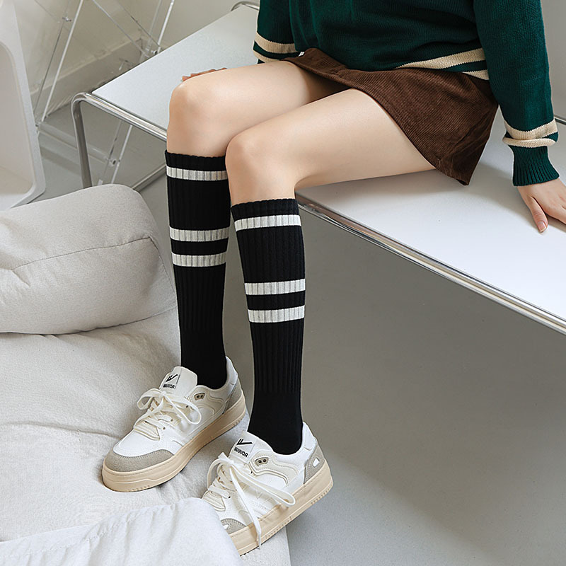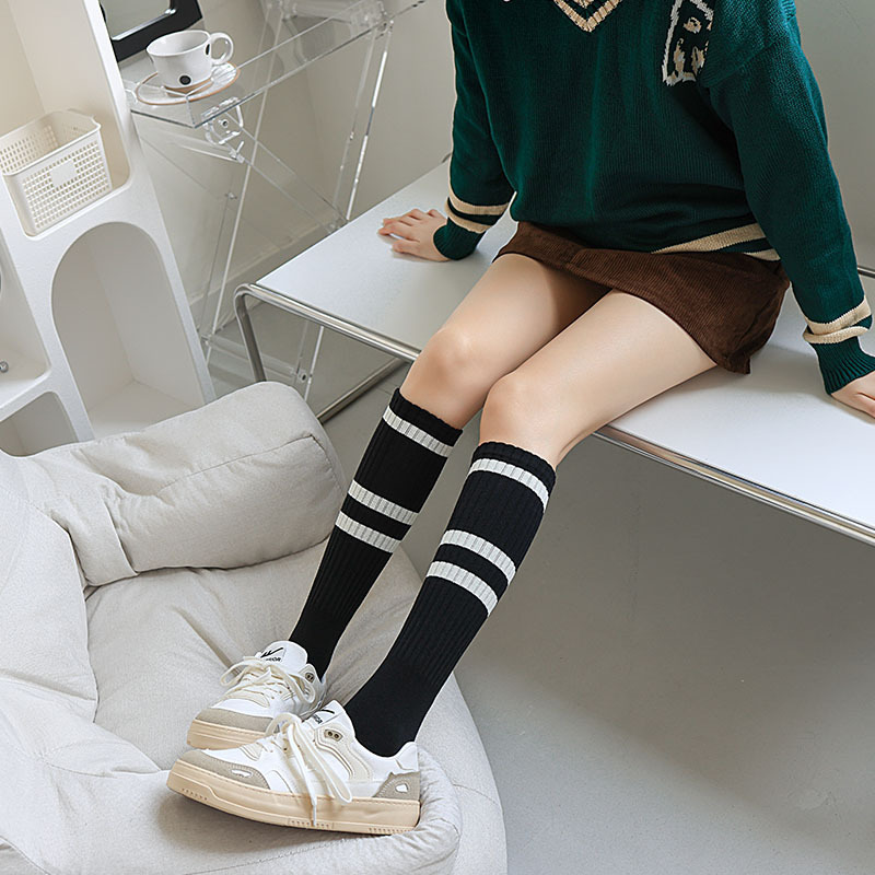 2 바 줄무늬 송아지 양말 일본 학술 스타일 스포츠 스타킹 봄과 가을 다용도 흰색 jk 하이탑 무릎 양말스토어 가기