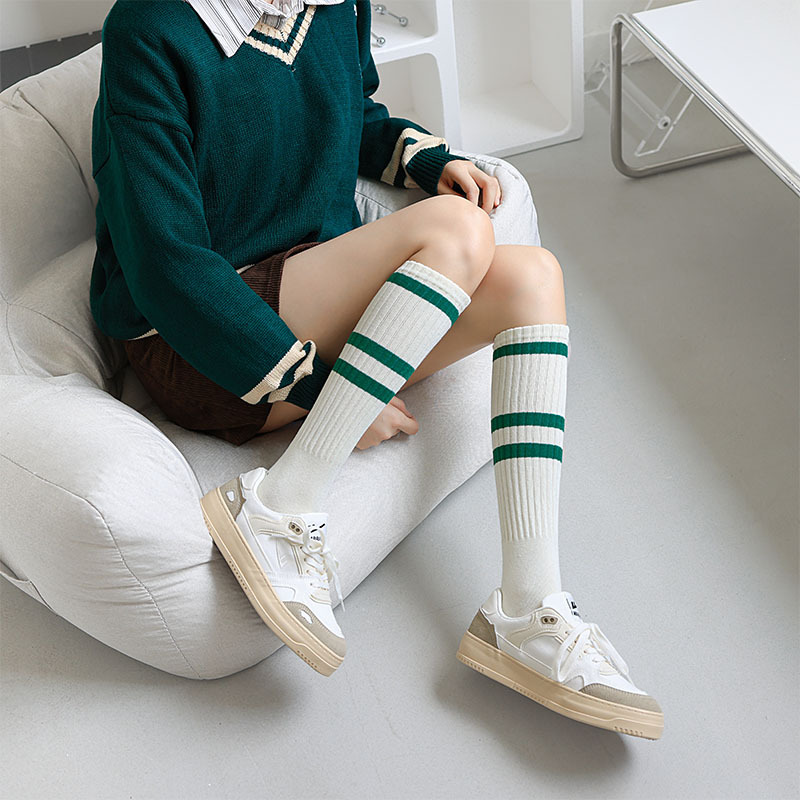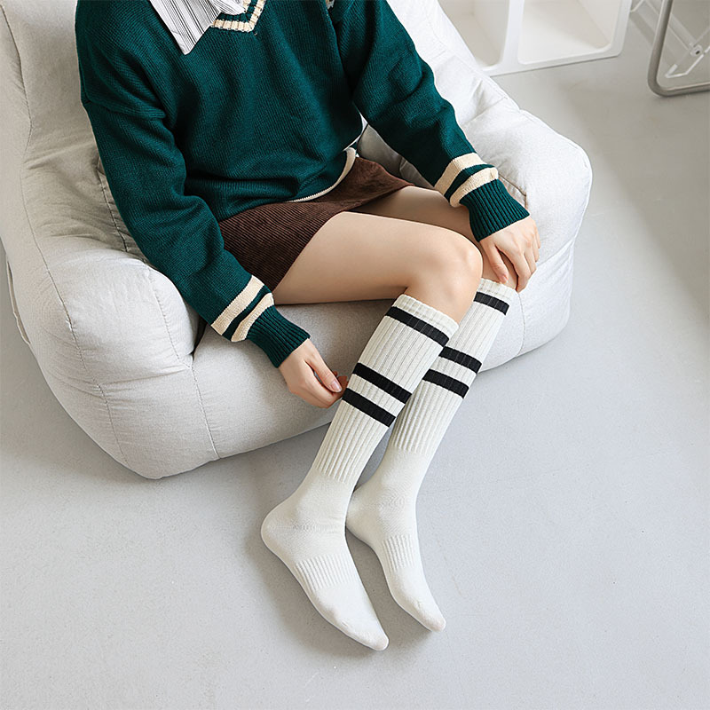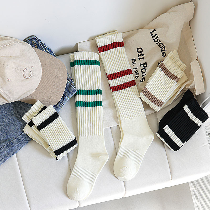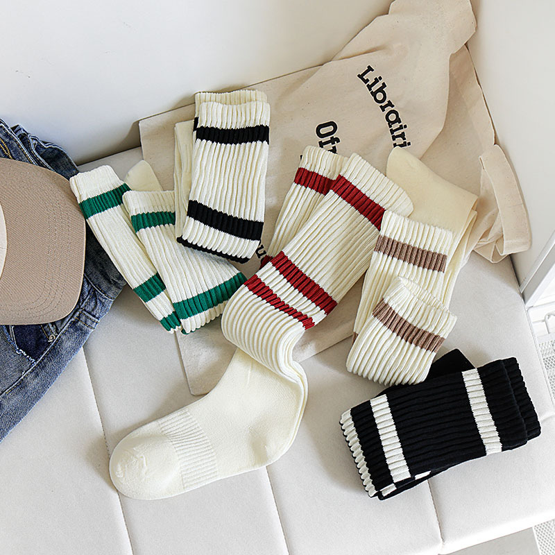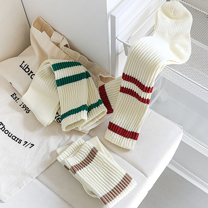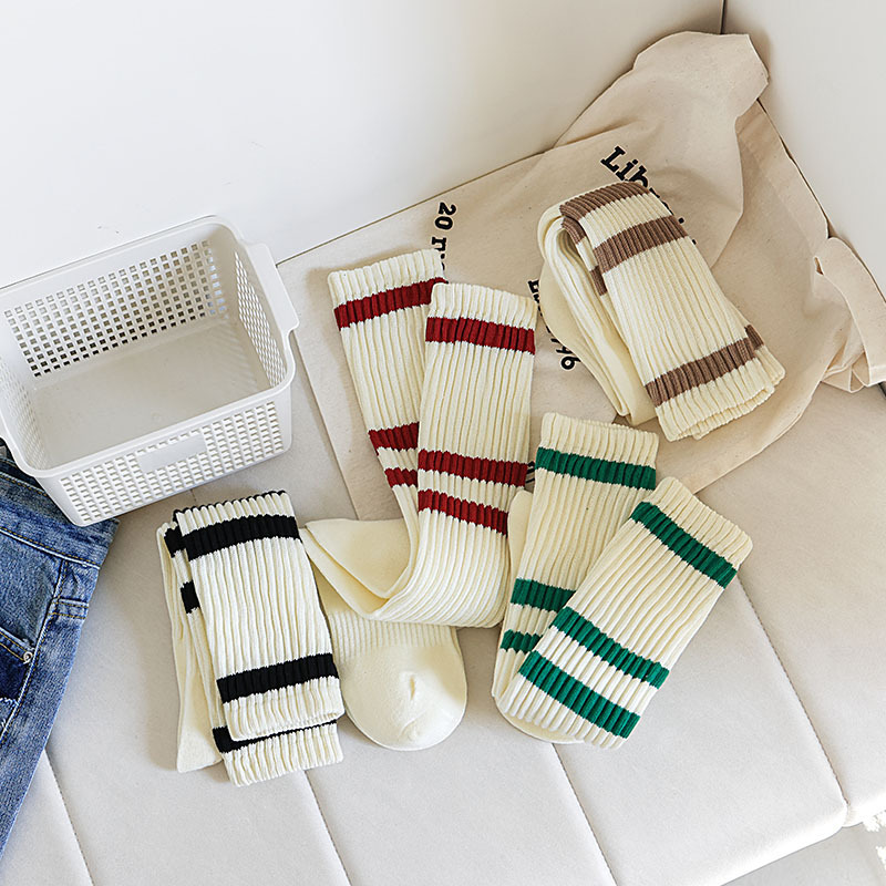 2 바 줄무늬 송아지 양말 일본 학술 스타일 스포츠 스타킹 봄과 가을 다용도 흰색 jk 하이탑 무릎 양말스토어 가기