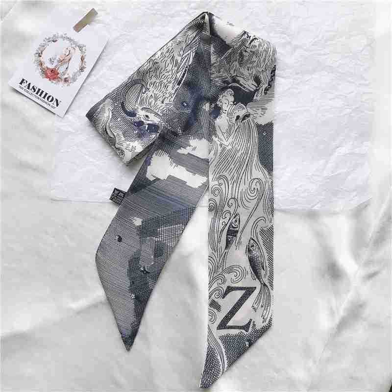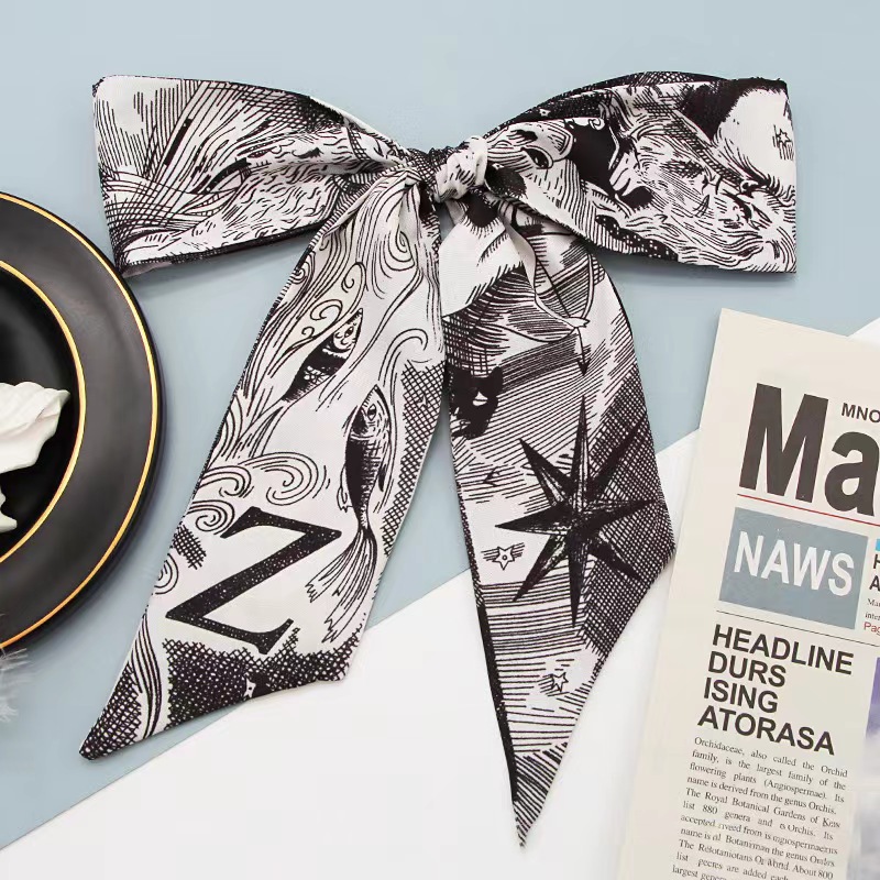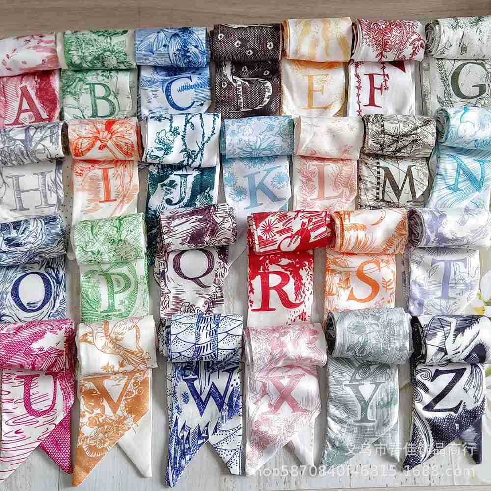레트로 롱 스몰 실크 스카프 헤어 벨트의 새로운 한국어 버전 여성용 타이 백 핸들 핸드 기프트 26 영어 편지 리본 도매