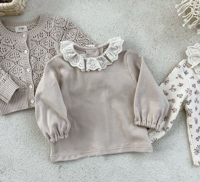 한국 스타일 아동복 아기 봄과 가을 면 부드러운 레이스 칼라 꽃 단색 베이스 셔츠 티셔츠 아기 모든 일치 코튼 탑스토어 가기