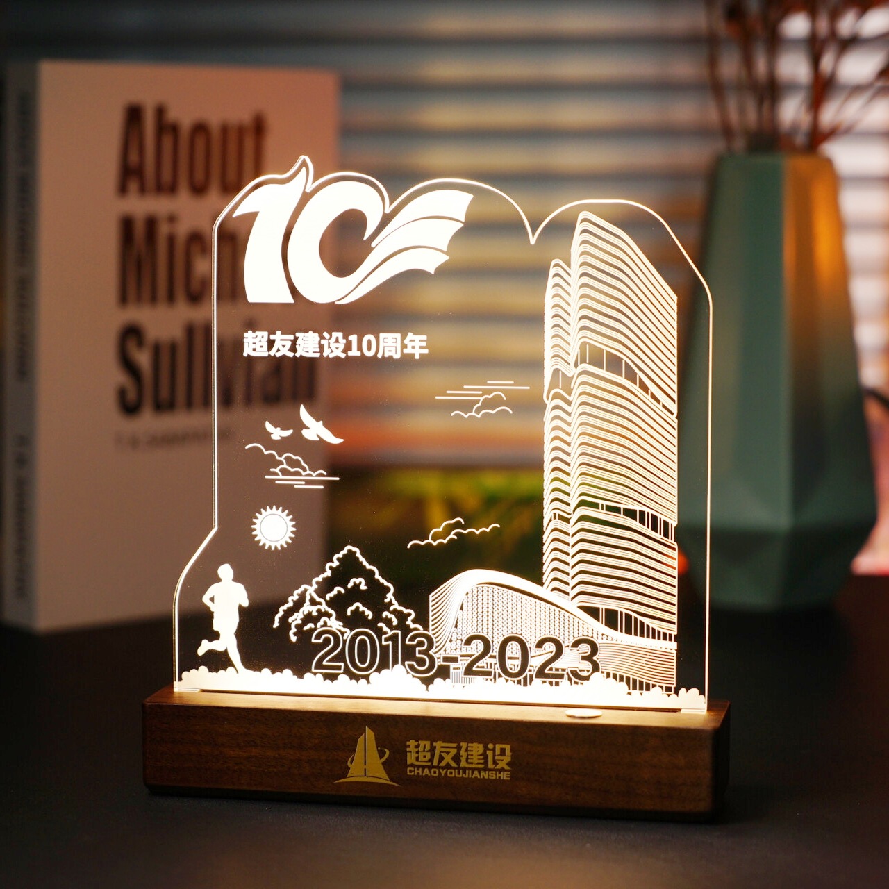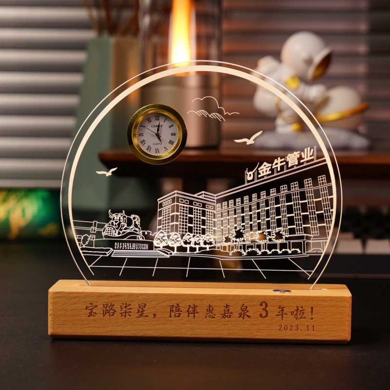 영구 달력 선물 아크릴 테이블 램프 연례 회의 기념품 맞춤형 LED 테크 스타일 테이블 램프