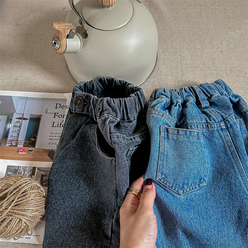 2023 가을 아동 의류 새로운 아동 데님 바지 남자와 여자의 바지 하렘 바지 캐주얼 바지 123027