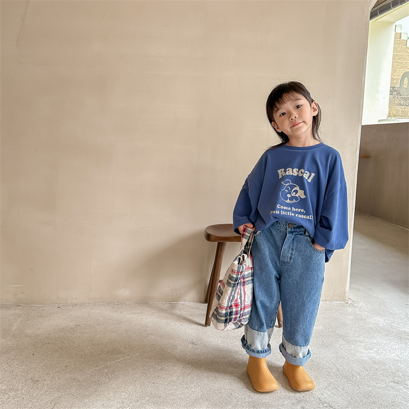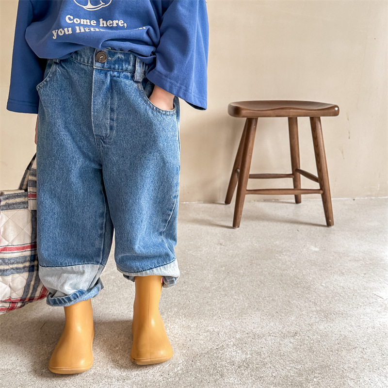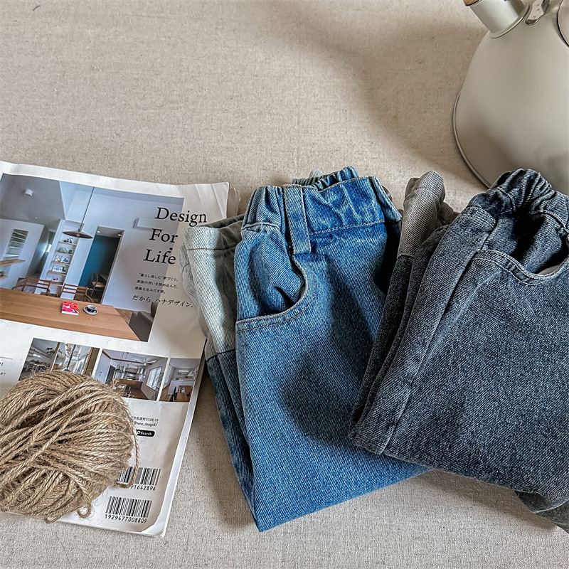 2023 가을 아동 의류 새로운 아동 데님 바지 남자와 여자의 바지 하렘 바지 캐주얼 바지 123027스토어 가기