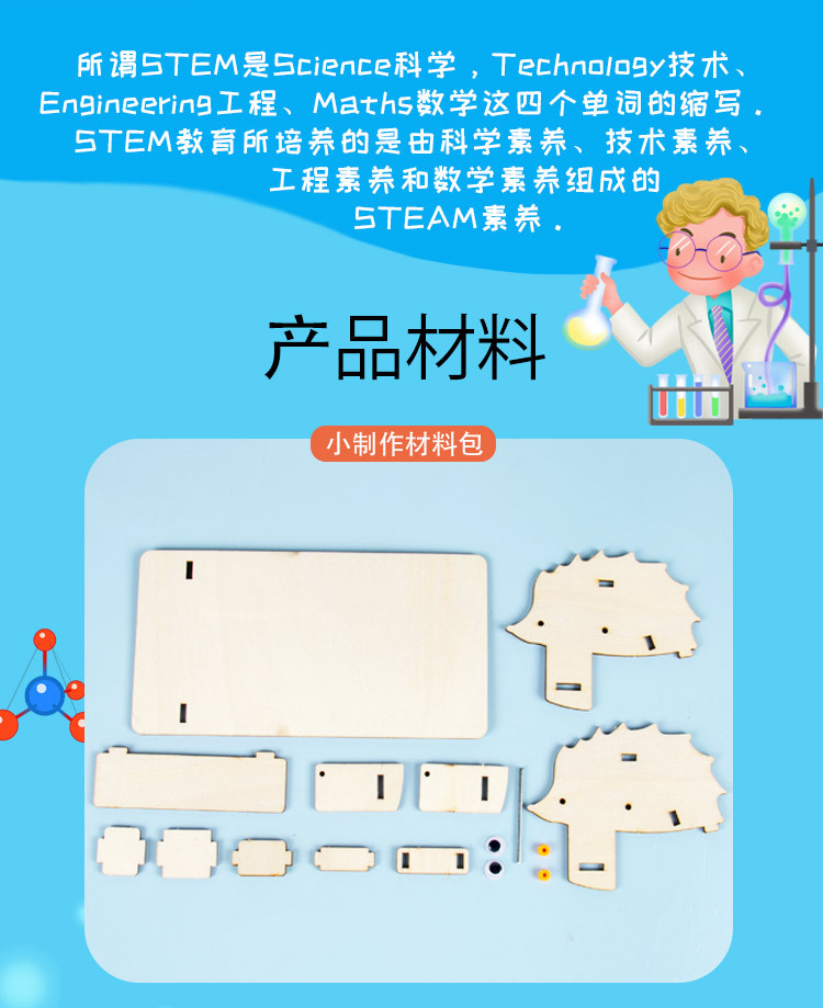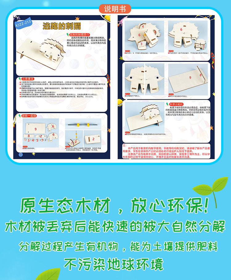 과학 기술 소규모 생산 DIY 고슴도치 내리막 나무 소 말 손 조립 재미 모델 교육용 어린이 장난감스토어 가기
