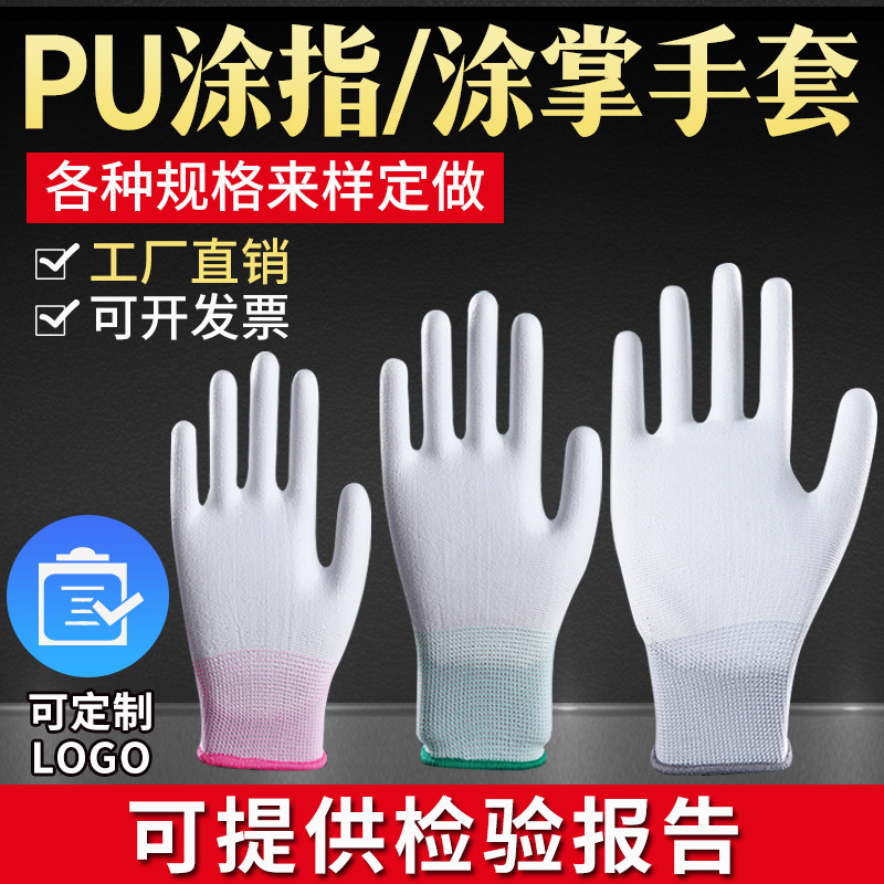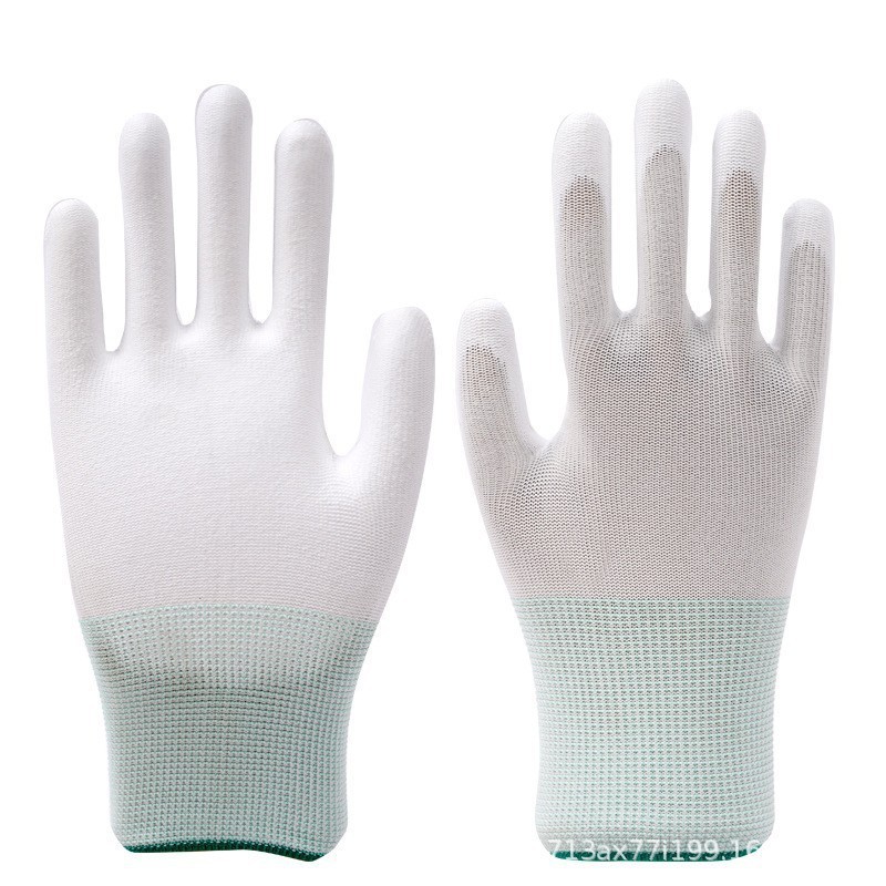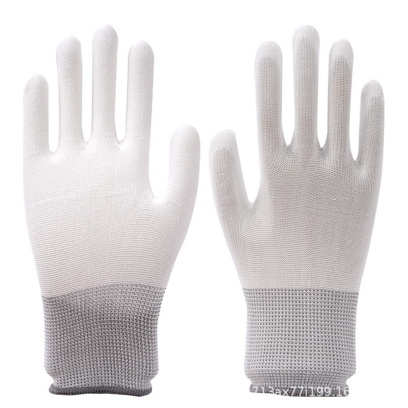나일론 pu 코팅 손바닥 장갑 흰색 먼지가없는 정전기 방지 내마모성 작업 코팅 노동 보호 pu 손가락 코팅 장갑 얇은 배치스토어 가기