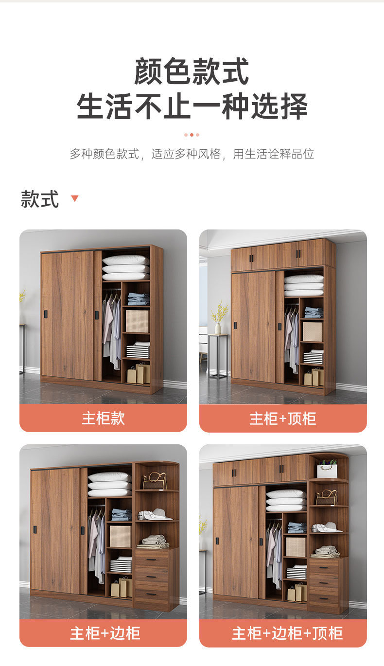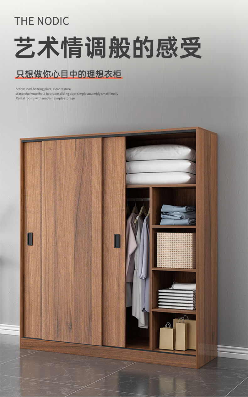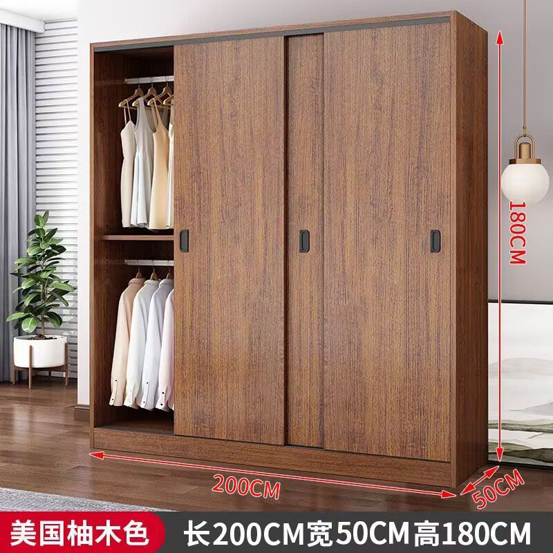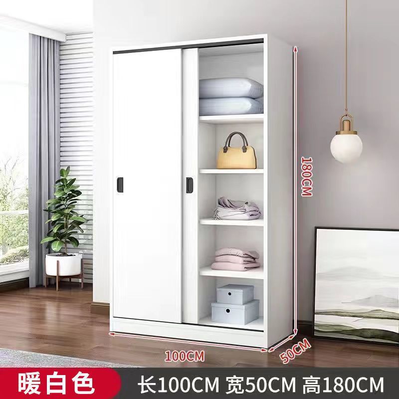슬라이딩 도어 옷장 간단한 조립 단단한 나무 어린이 캐비닛 작은 아파트 수납 옷장 가정용 침실 임대 방