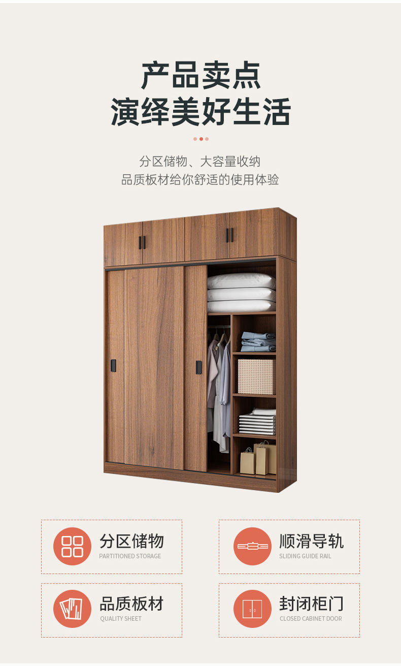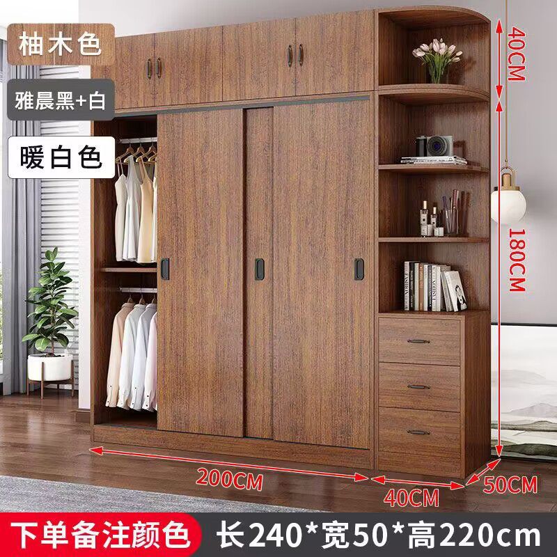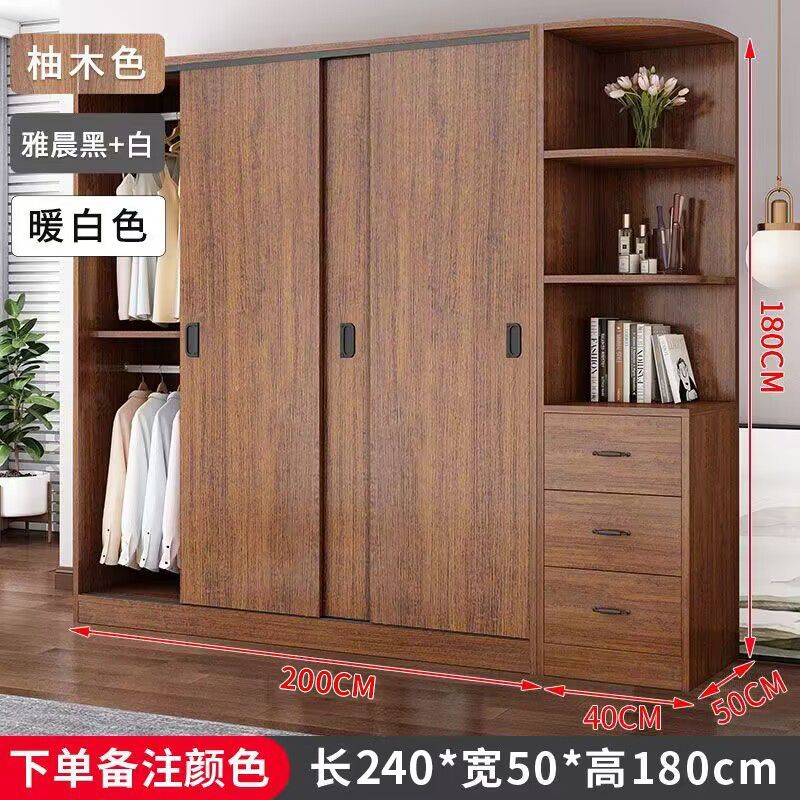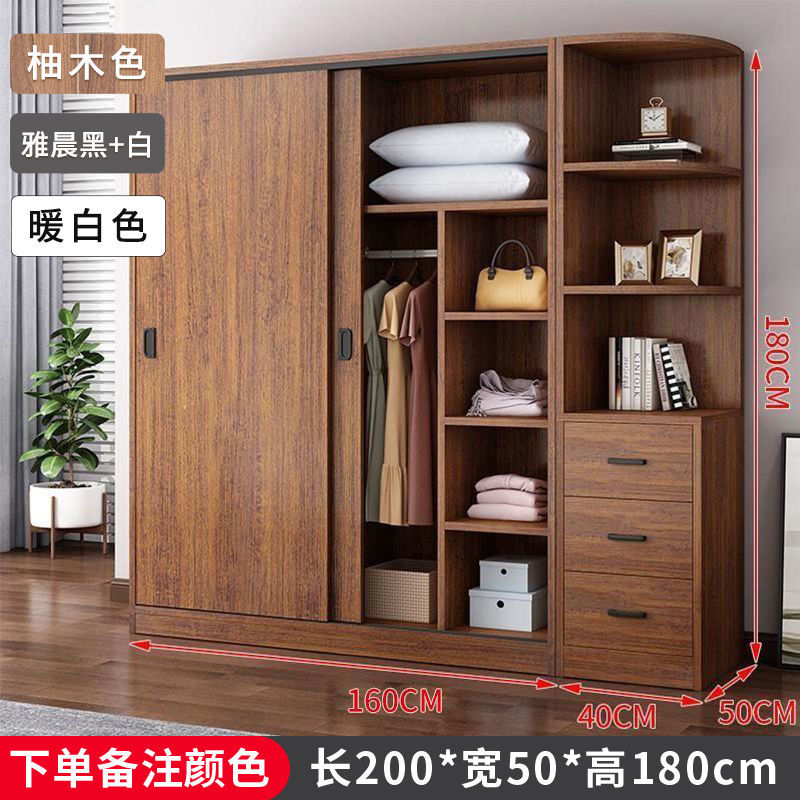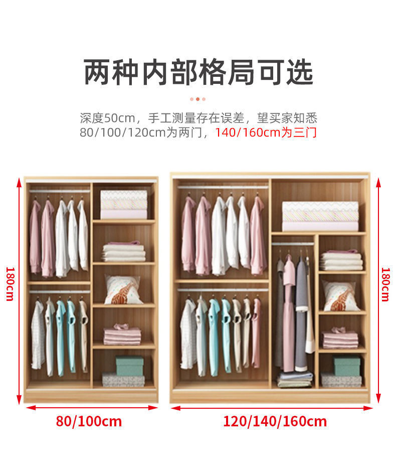 슬라이딩 도어 옷장 간단한 조립 단단한 나무 어린이 캐비닛 작은 아파트 수납 옷장 가정용 침실 임대 방