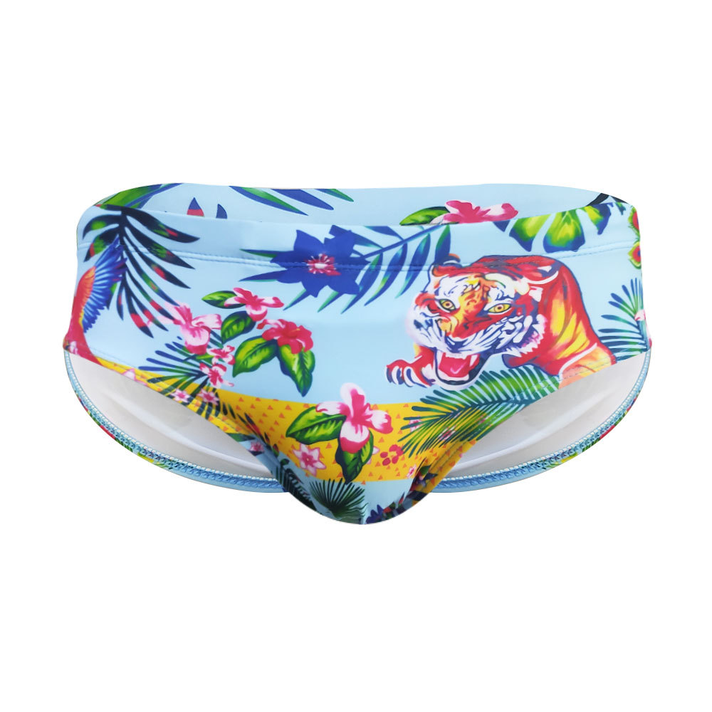 UXH 블루 정글 시리즈 타이거 프린트 패션 삼각형 수영 트렁크 유럽과 미국 대외 무역 비치 브리프 남자