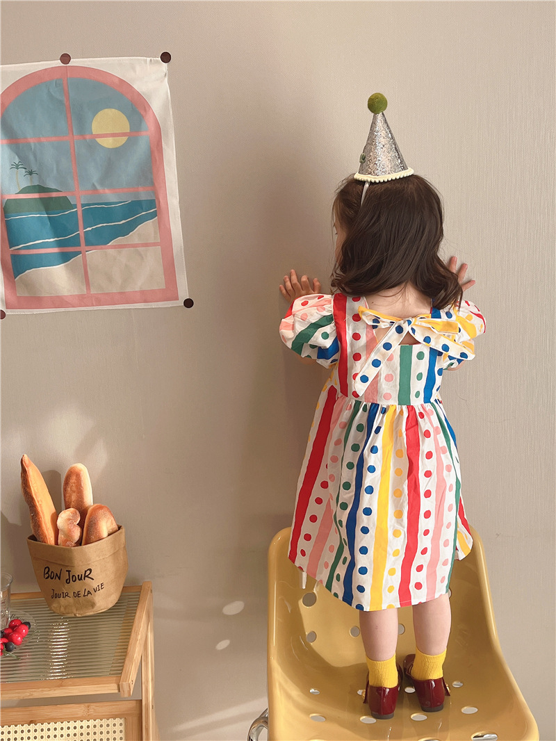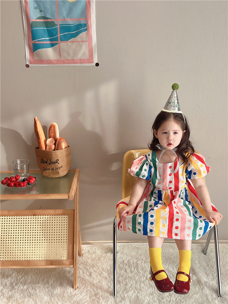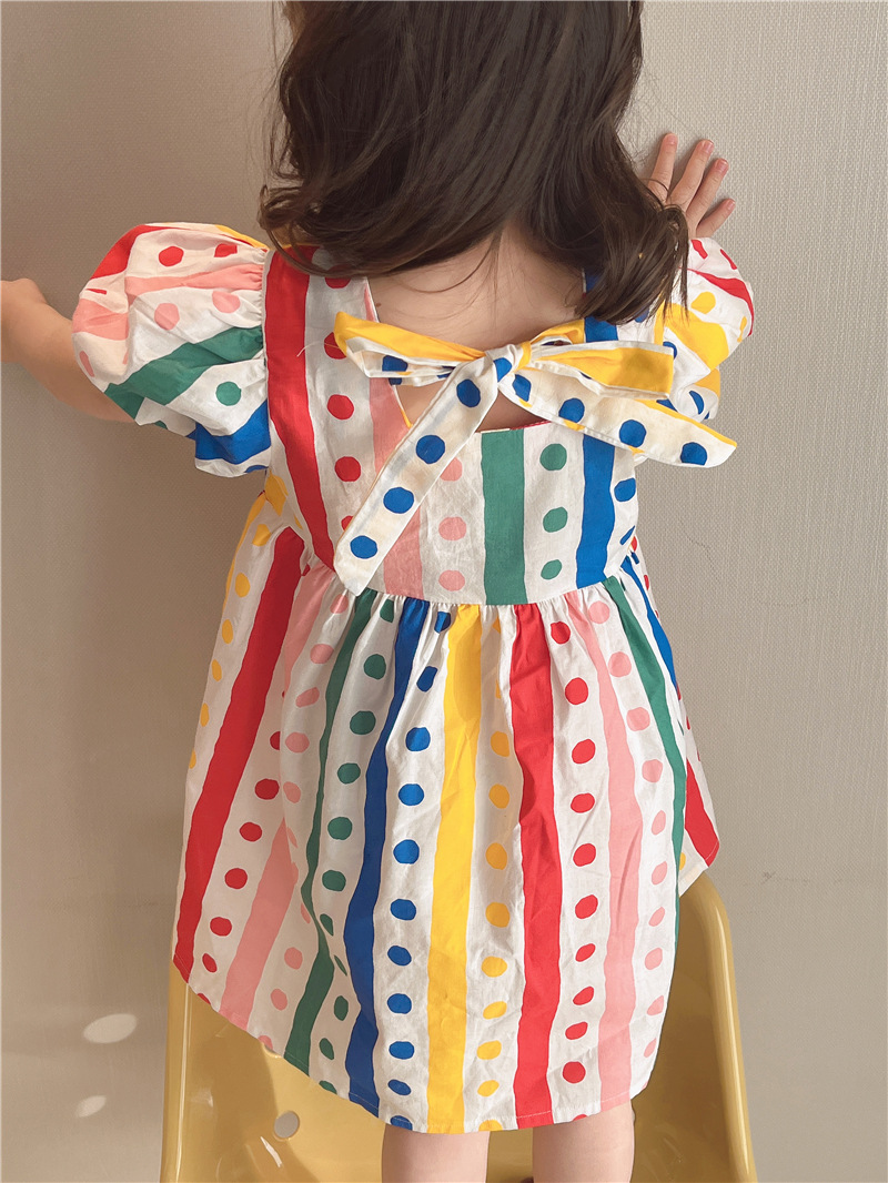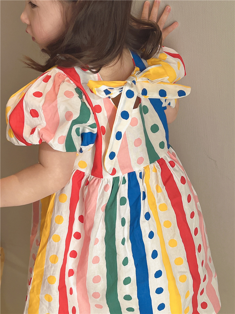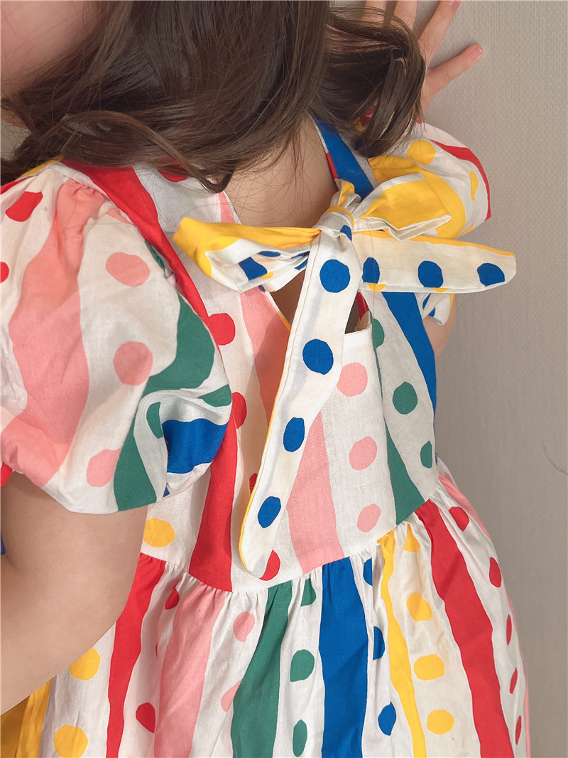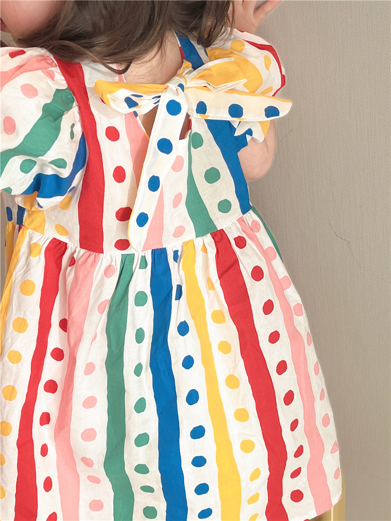 봄/여름 2023 ~ 한국어 버전의 여자 신중한 기계 다시 중공 매듭 컬러 물방울 무늬 스트라이프 버블 슬리브 원피스스토어 가기