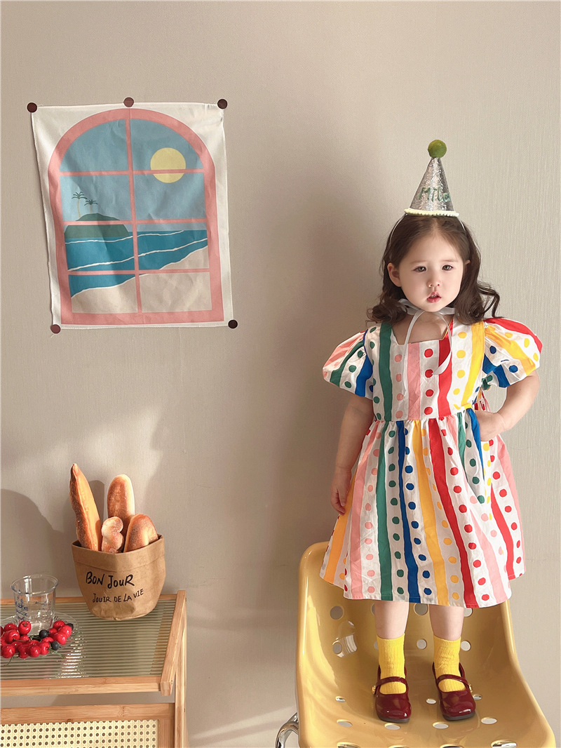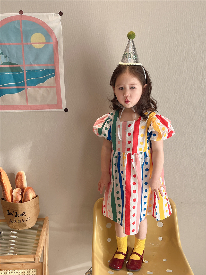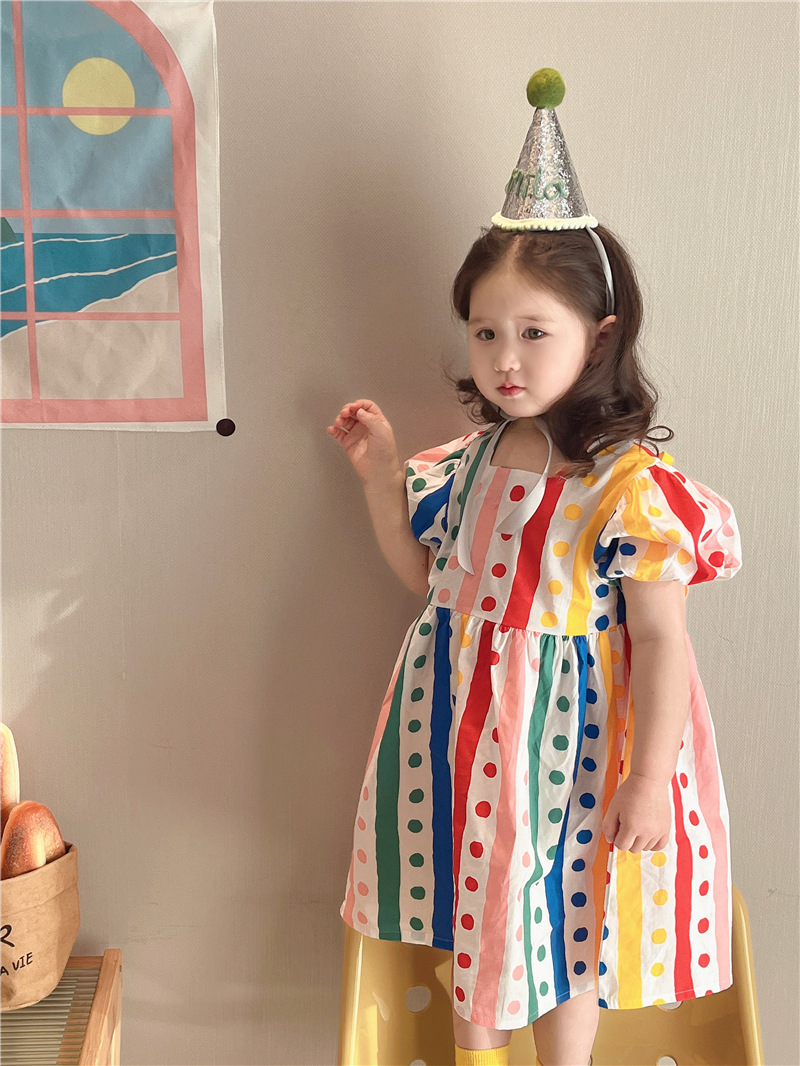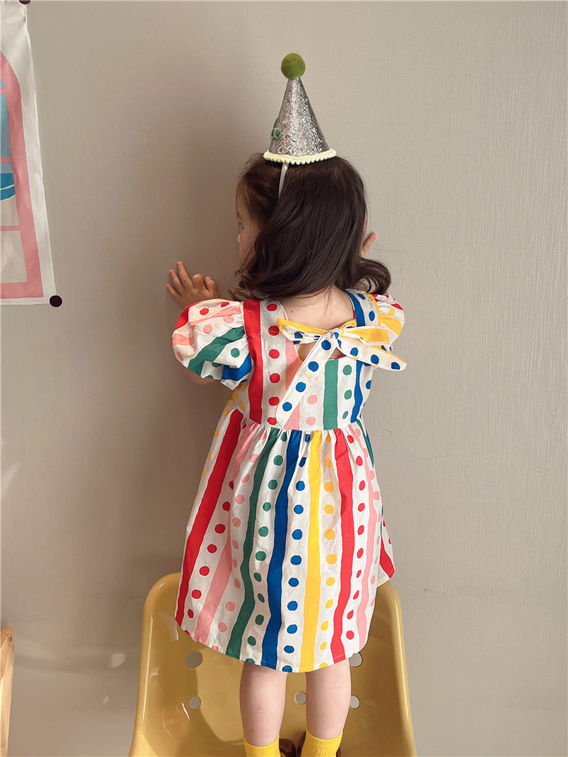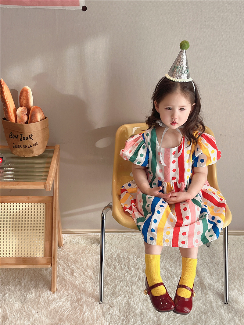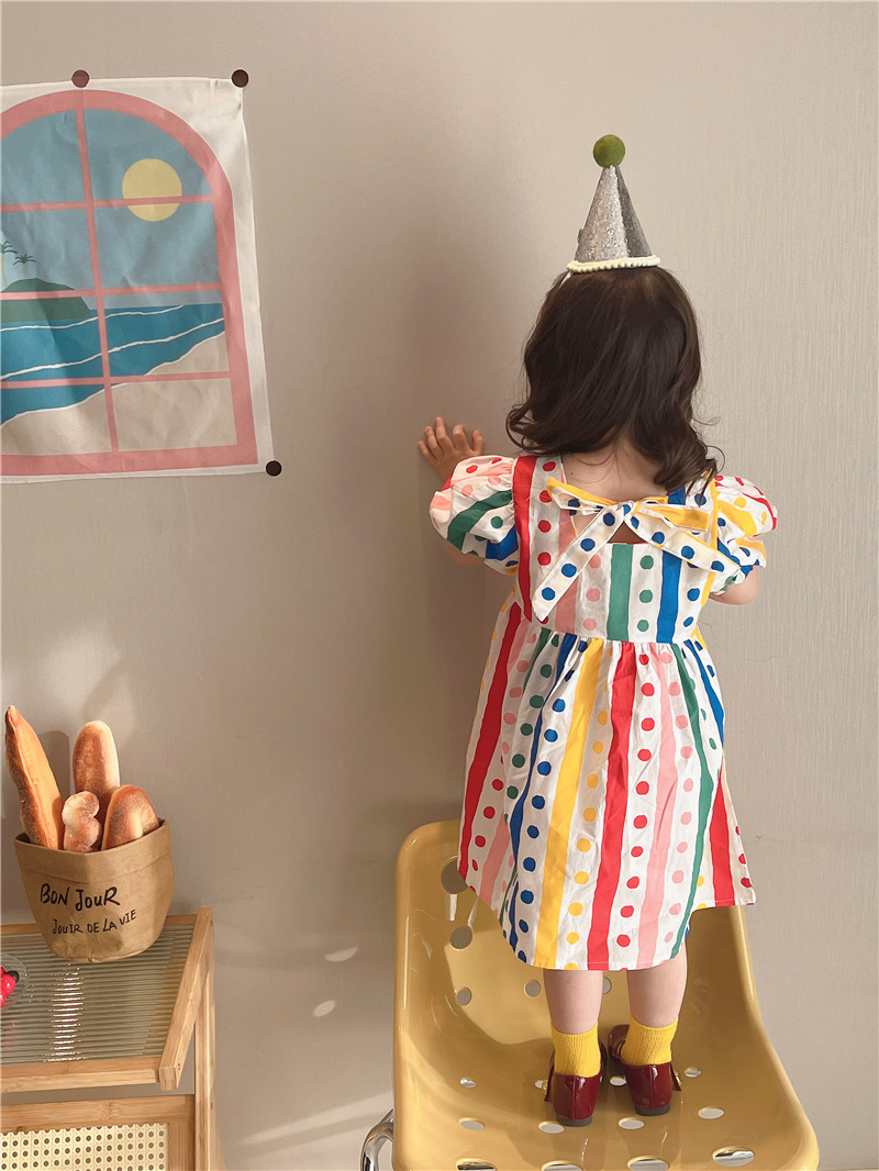 봄/여름 2023 ~ 한국어 버전의 여자 신중한 기계 다시 중공 매듭 컬러 물방울 무늬 스트라이프 버블 슬리브 원피스스토어 가기