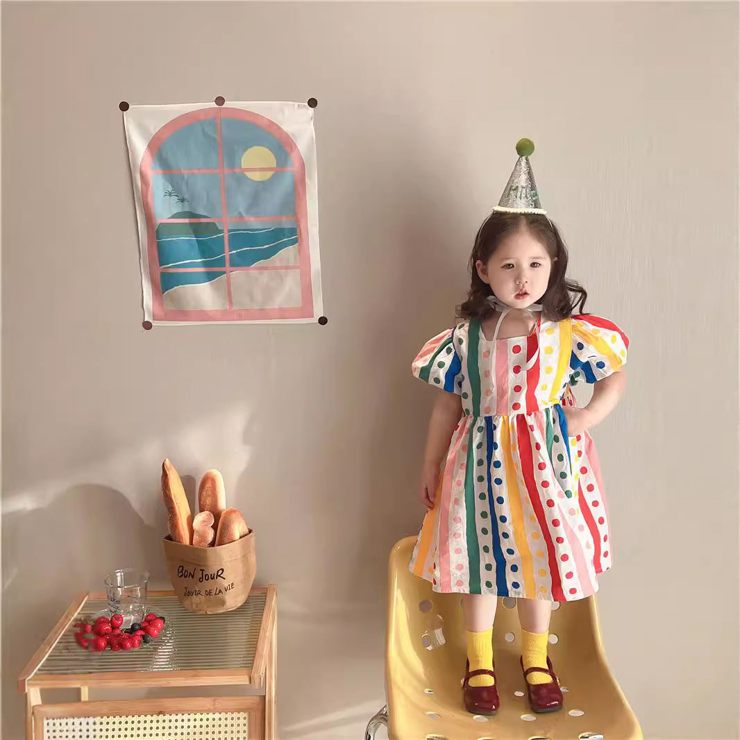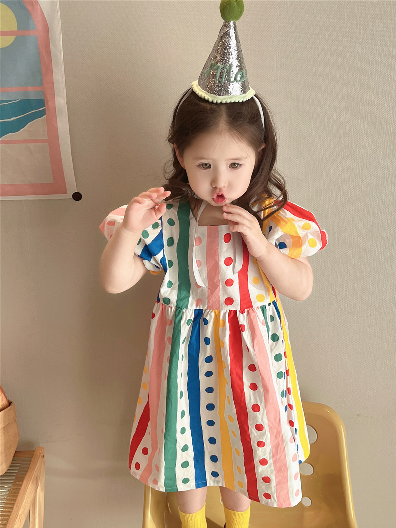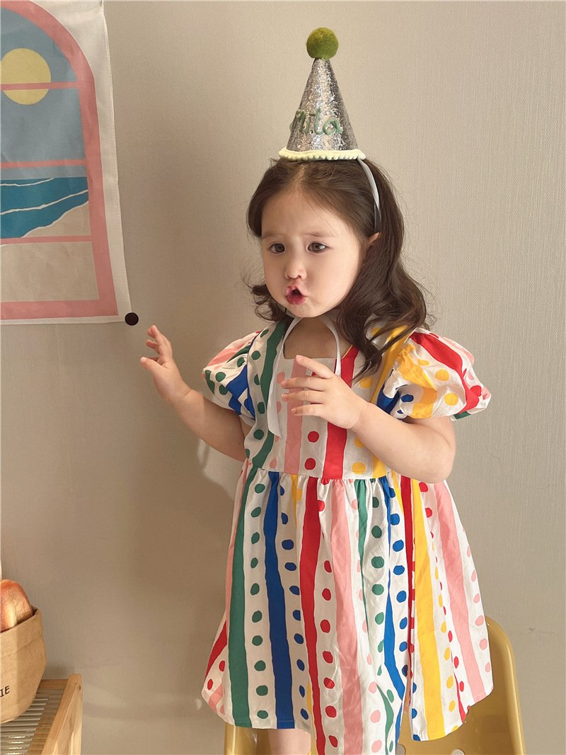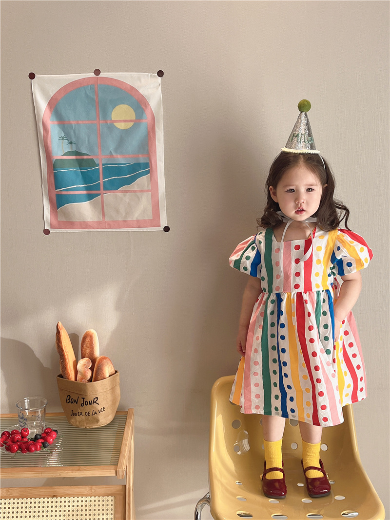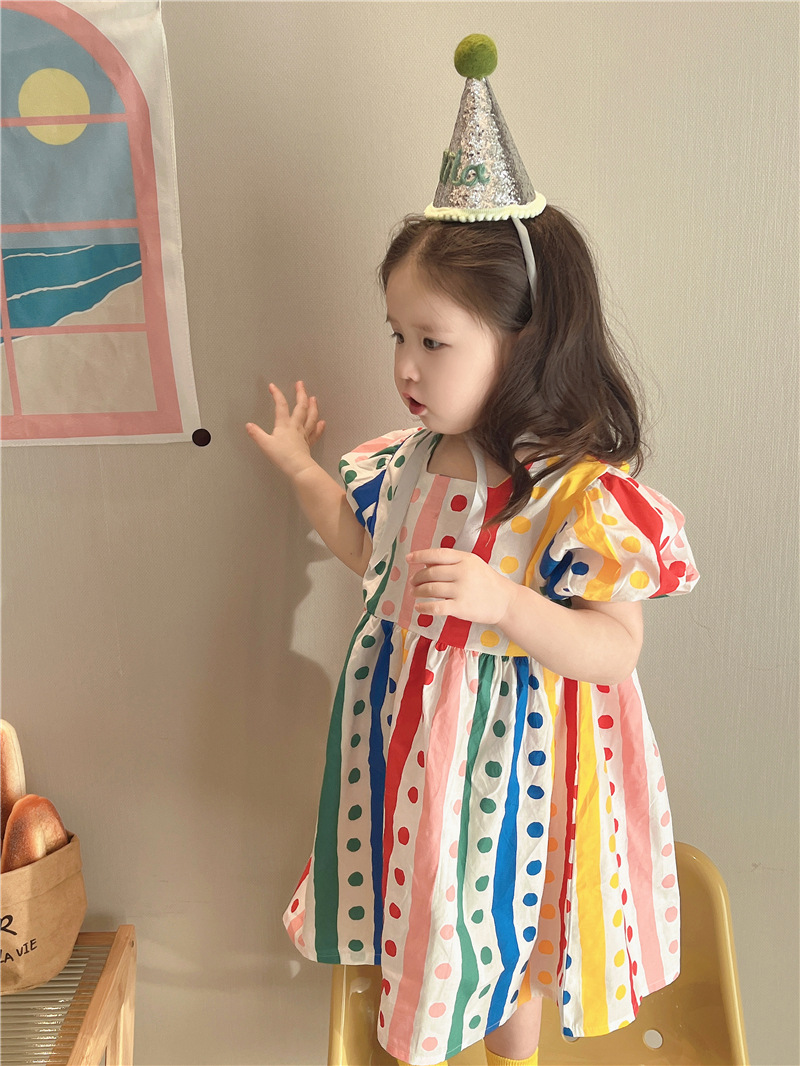 봄/여름 2023 ~ 한국어 버전의 여자 신중한 기계 다시 중공 매듭 컬러 물방울 무늬 스트라이프 버블 슬리브 원피스스토어 가기