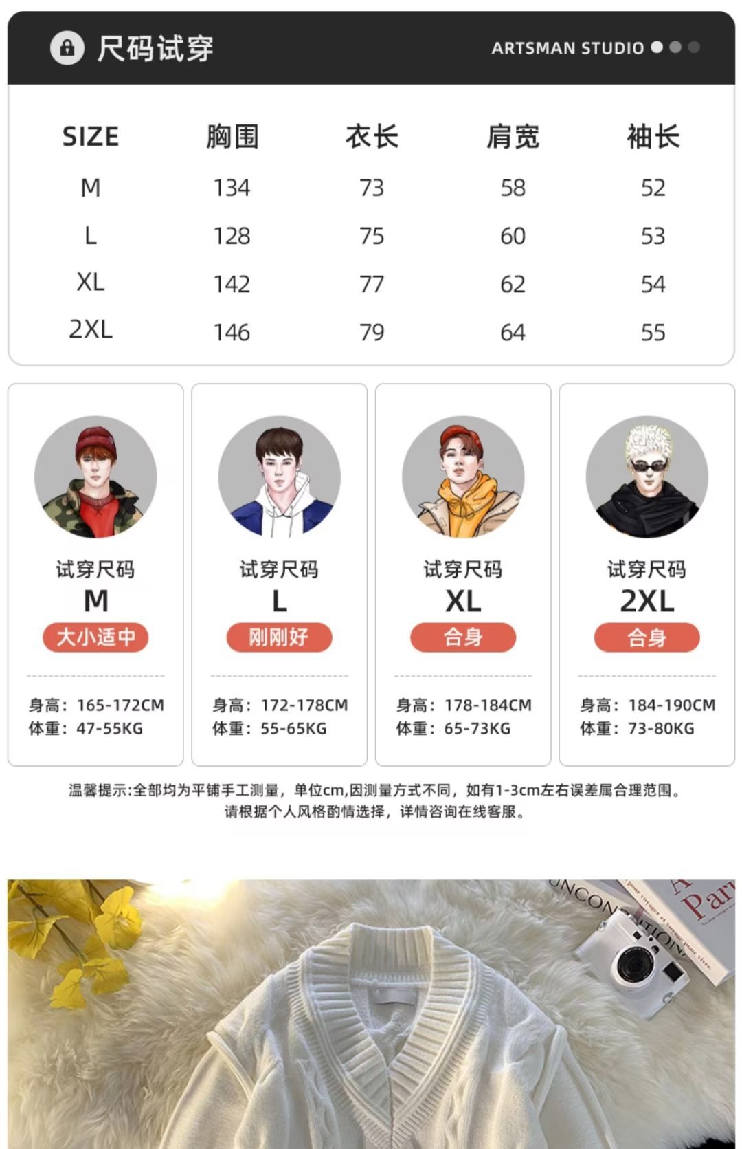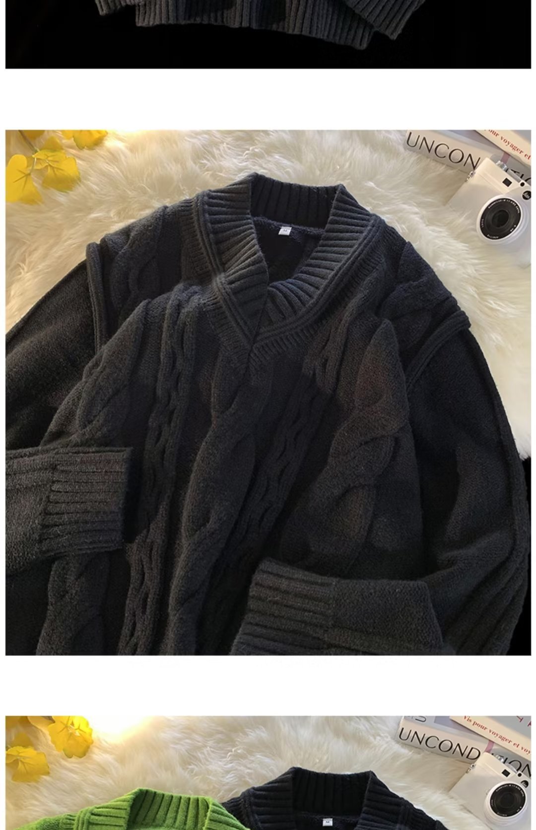 화이트 V-넥 스웨터 남성용 겨울 두꺼운 입체 트위스트 스웨터 트렌디 브랜드 레트로 틈새 느슨한 게으른 니트 스웨터스토어 가기