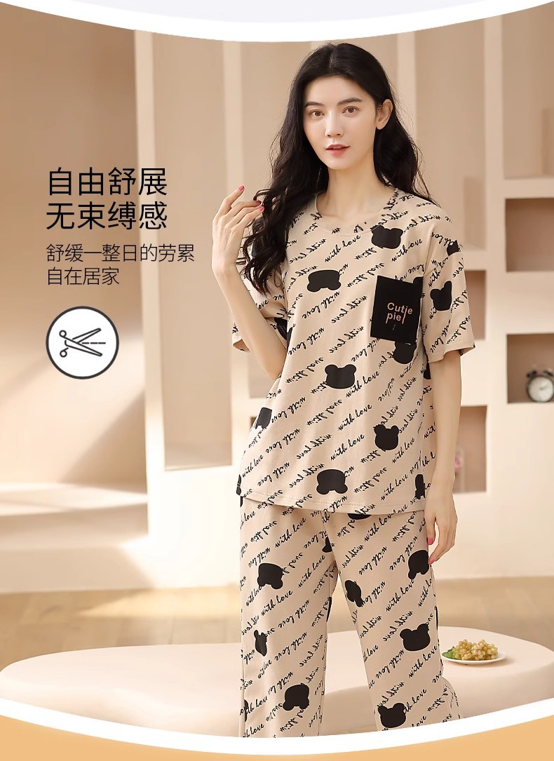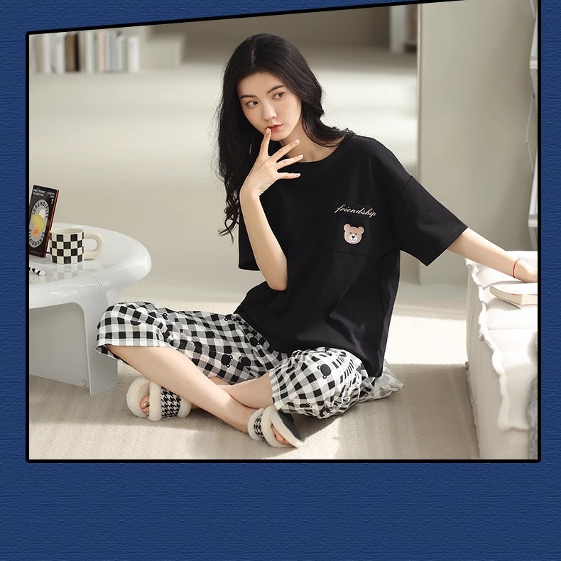 도매 잠옷 여자 여름 반팔 자른 바지 가정복 여름 얇은 한국 수 외출 캐주얼 2 피스 세트
