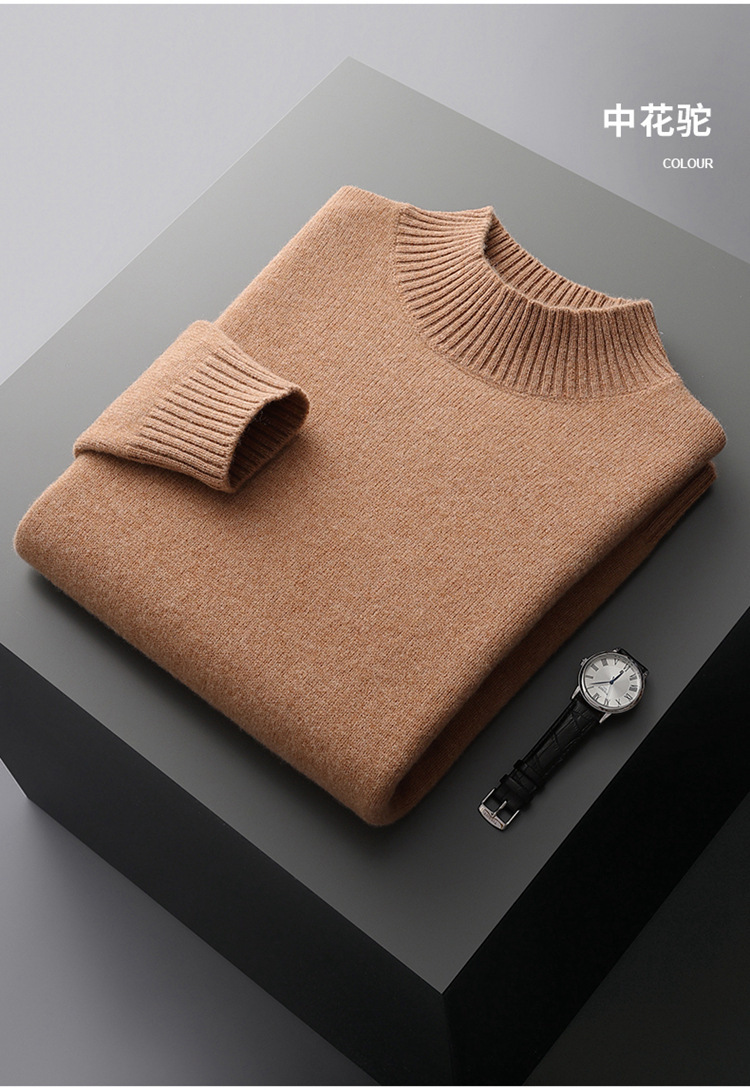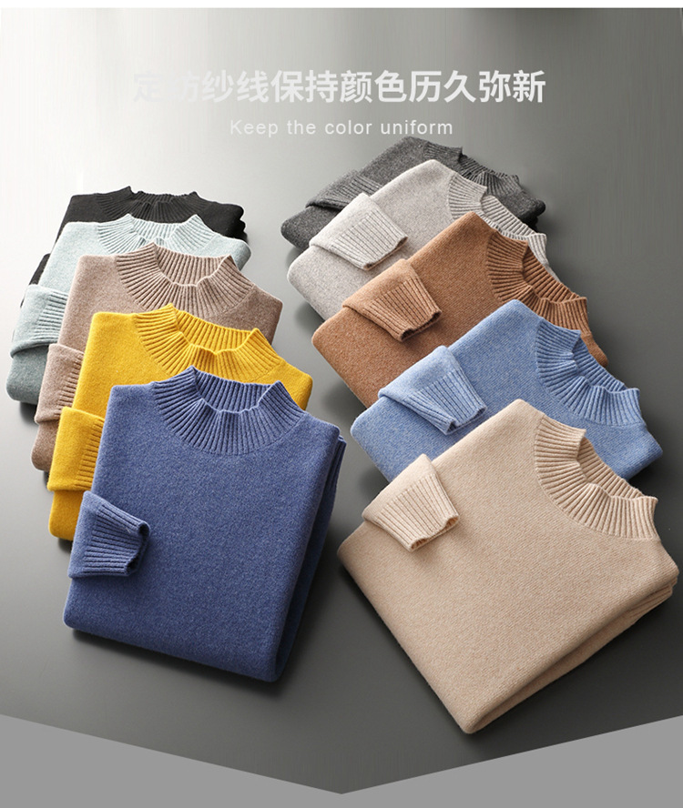 더블 스트랜드 두꺼운 캐시미어 스웨터 남성용 하프 터틀넥 스웨터 가을과 겨울 느슨한 캐주얼 청소년 울베이스 스웨터스토어 가기