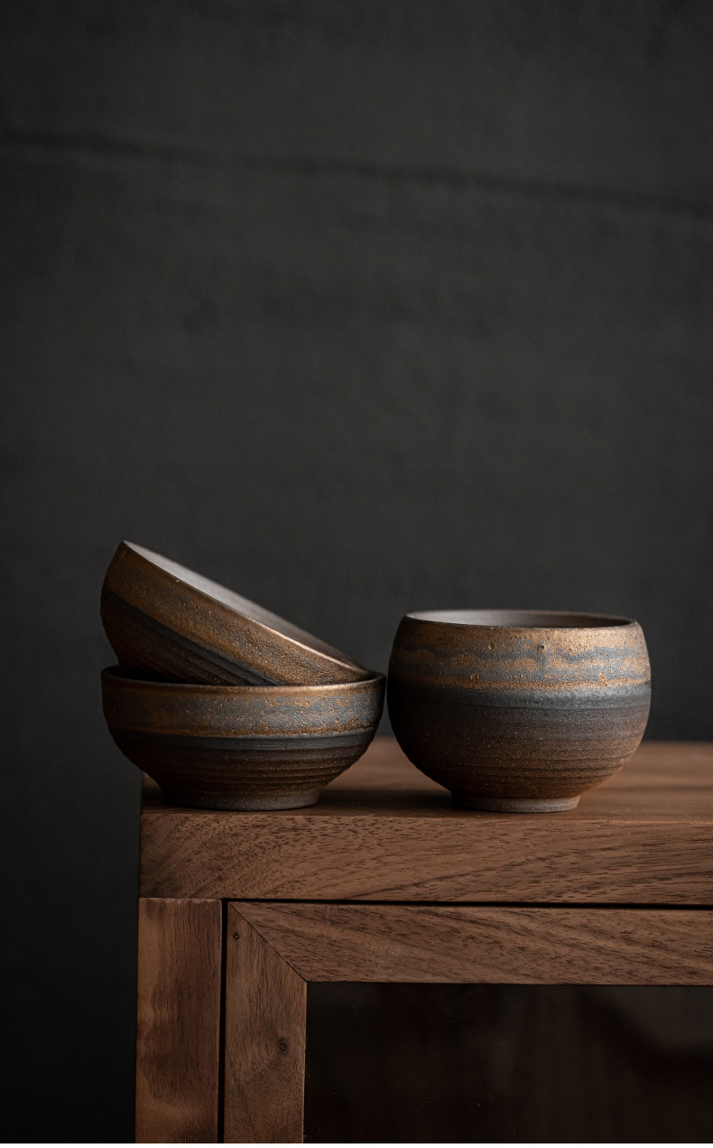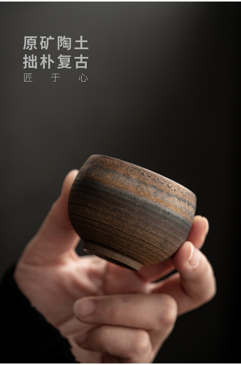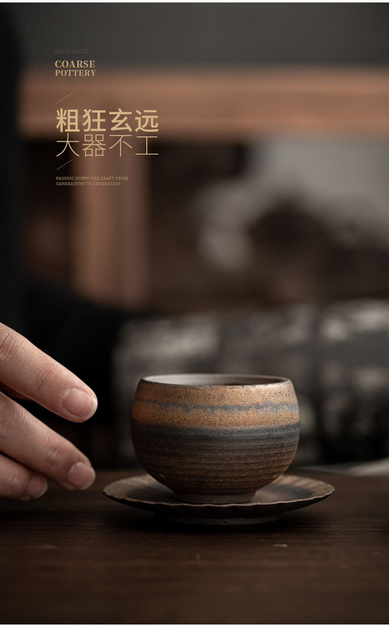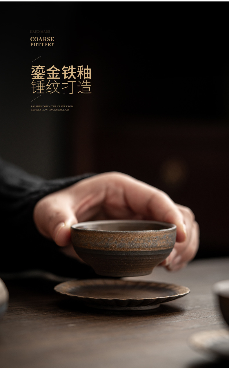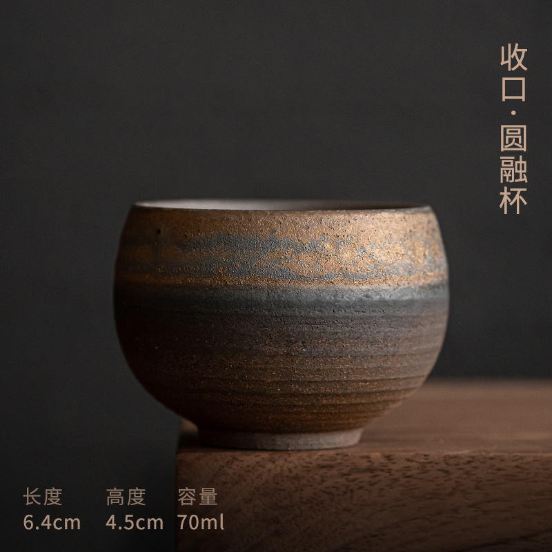 小院遇见 日式窑变粗陶品茗杯功夫茶具单杯小盏杯鎏金泡茶杯大号