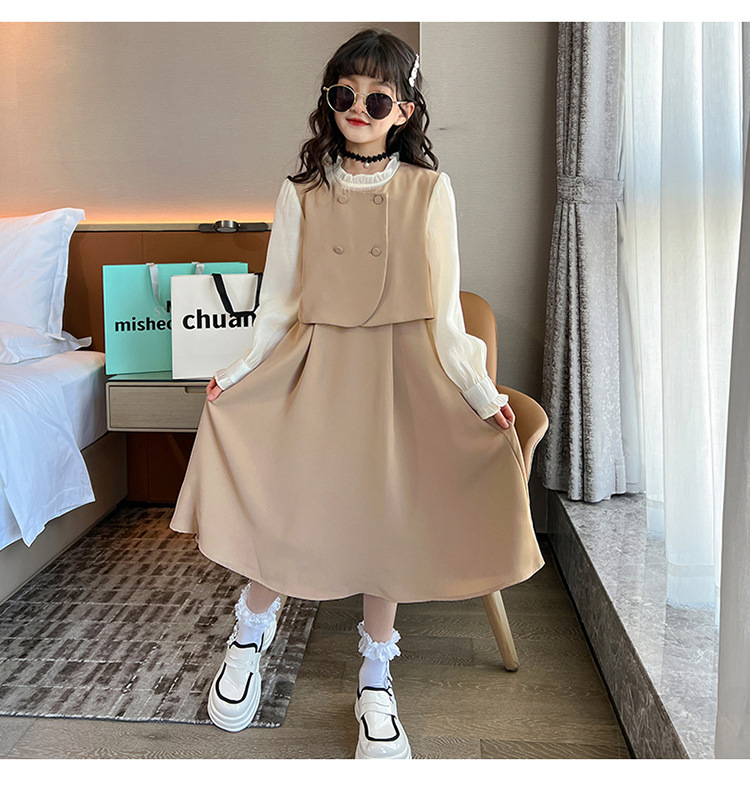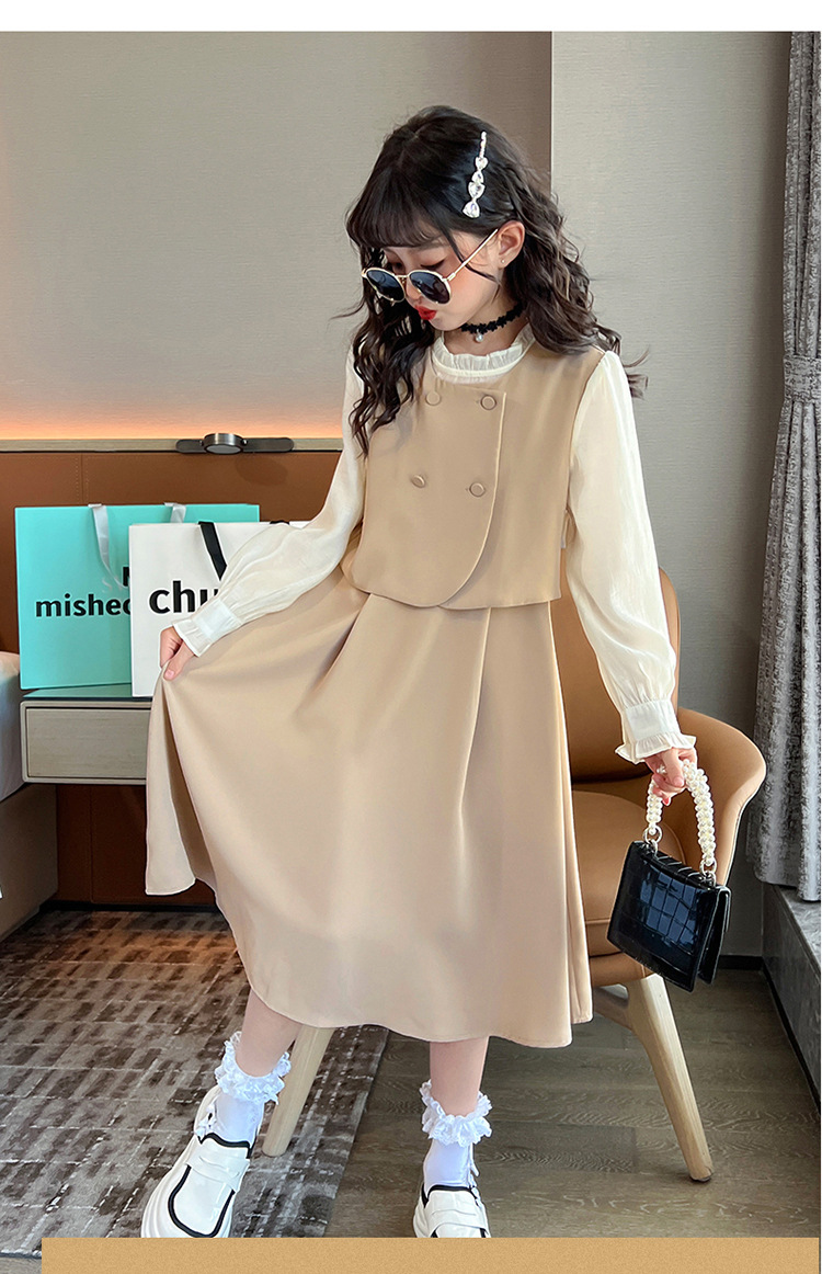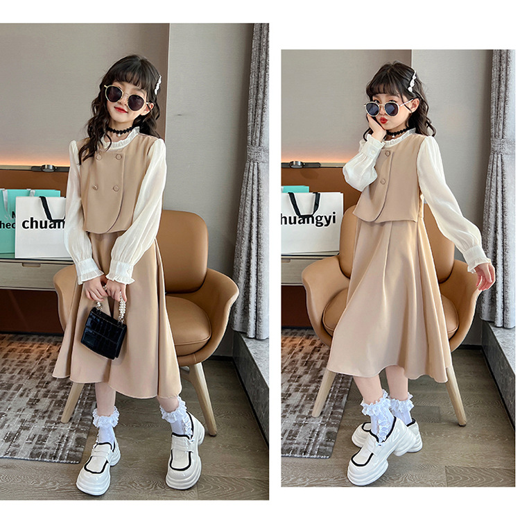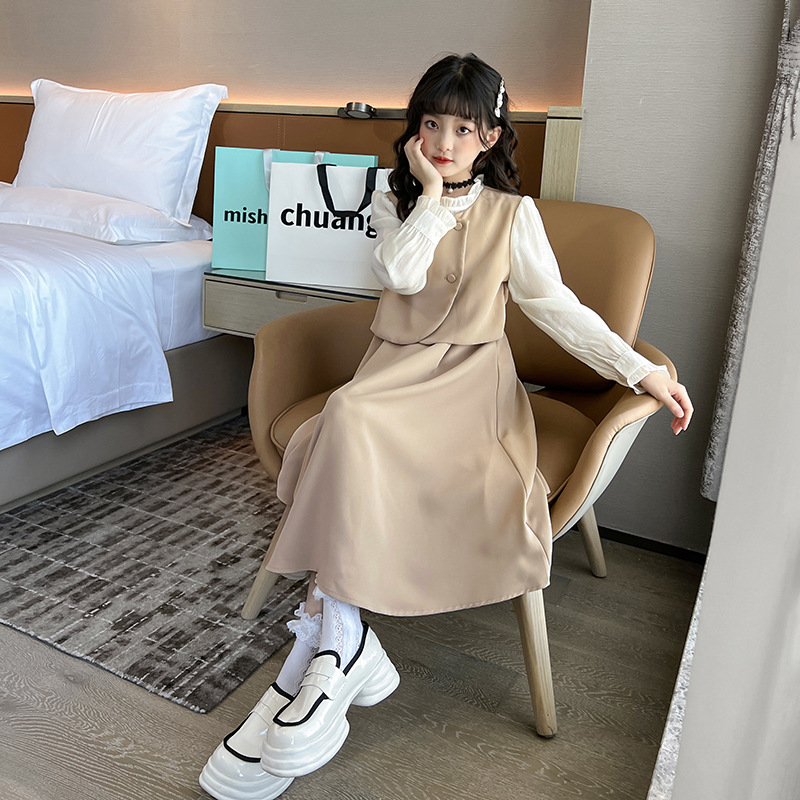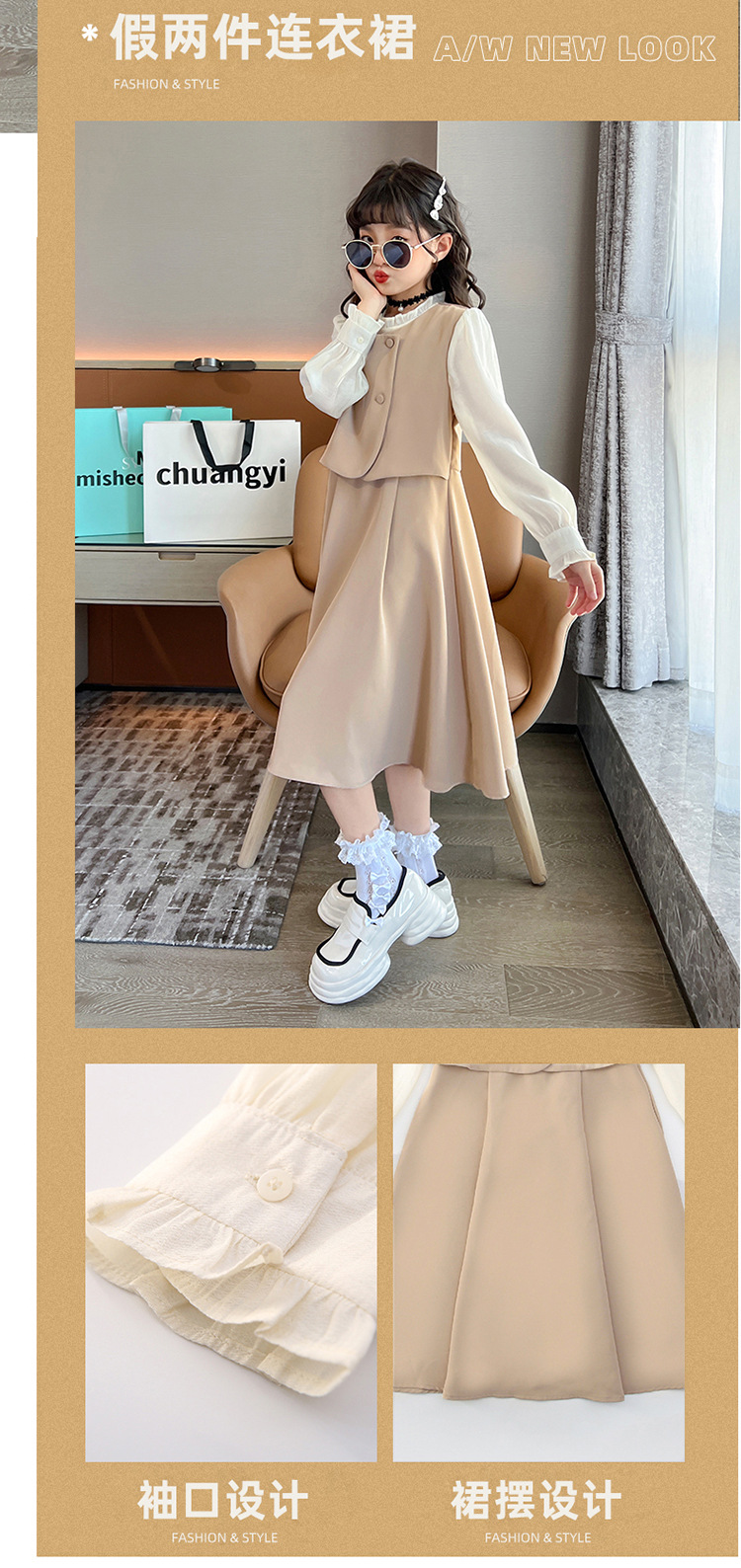 여자 원피스 봄과 가을 2023 새로운 한국 스타일 서양 스타일 어린이 긴 소매 스커트 어린이 봄 조끼 긴 치마