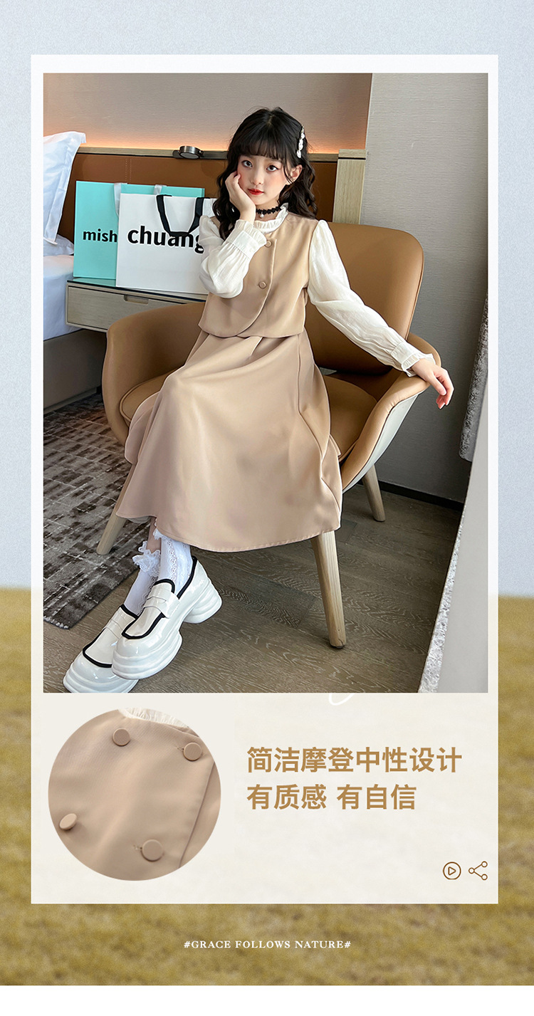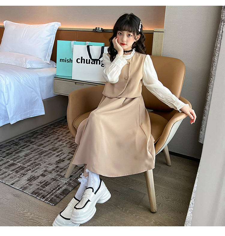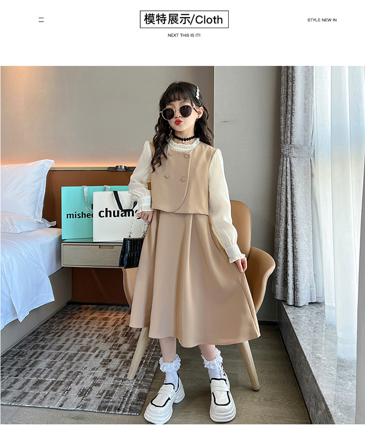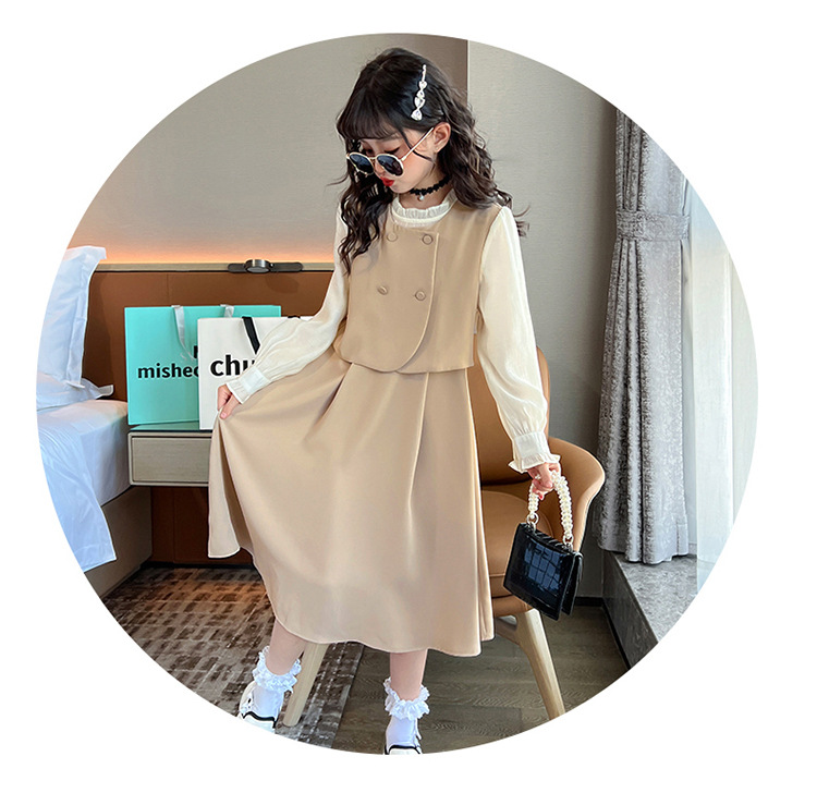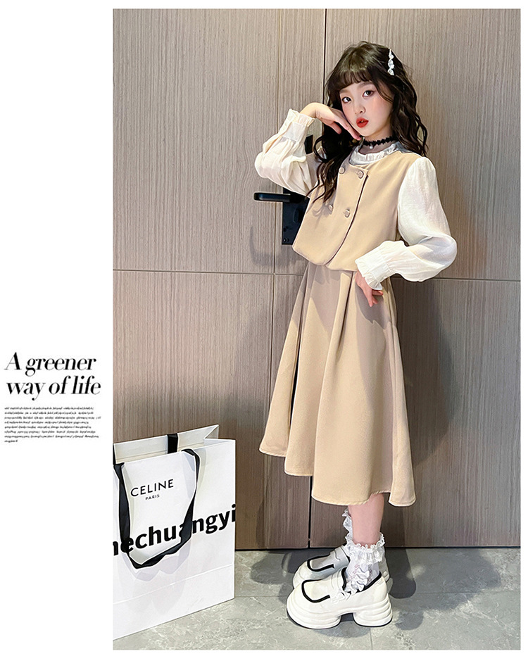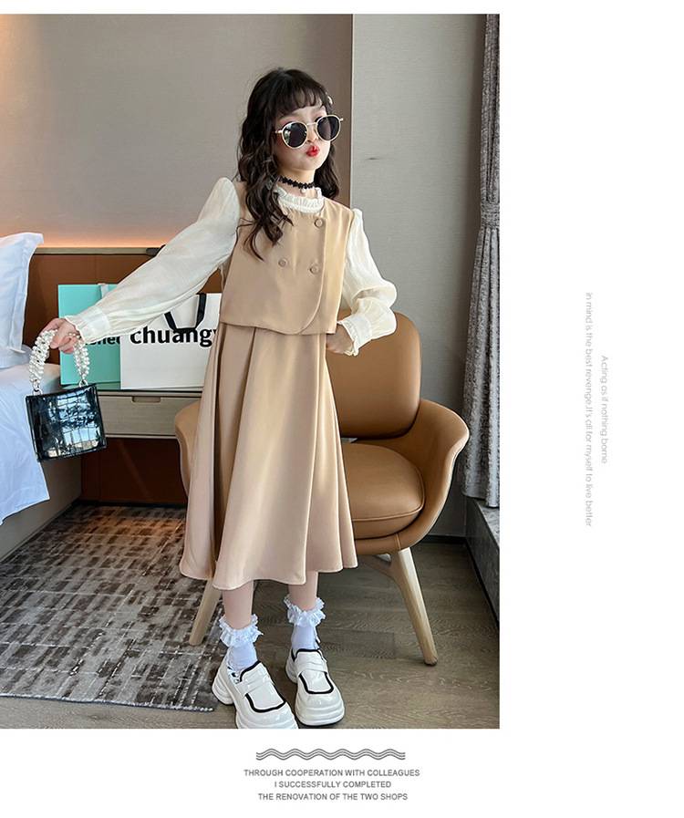 여자 원피스 봄과 가을 2023 새로운 한국 스타일 서양 스타일 어린이 긴 소매 스커트 어린이 봄 조끼 긴 치마