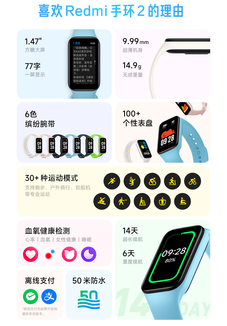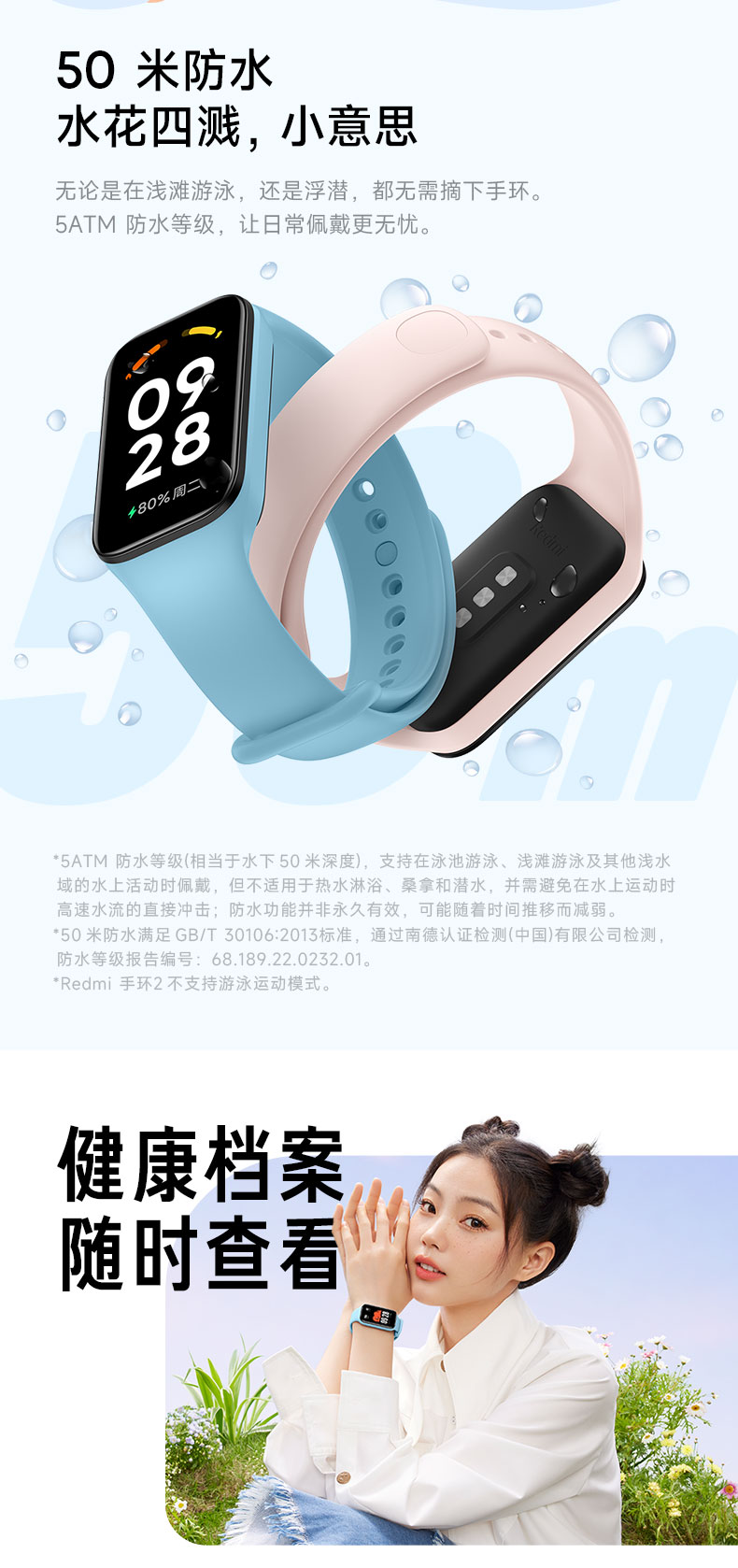 기장 빨간 쌀에 적합 홍미 팔찌 2 스포츠 스마트 방수 시계 혈액 산소 심박수 수면 사각형 화면 긴 내구성스토어 가기