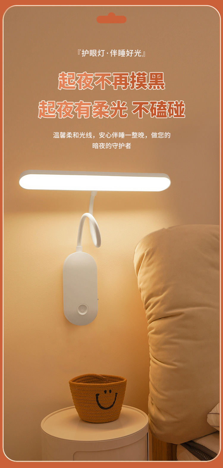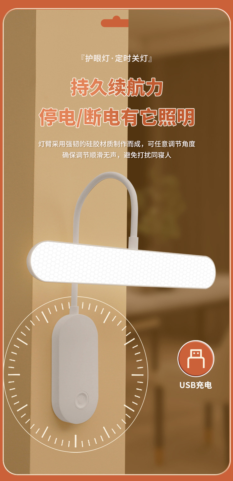 학습 눈 보호 테이블 램프 벽 램프 대학 기숙사 분위기 램프 충전 플러그인 붙여 넣기 침실 야간 조명스토어 가기