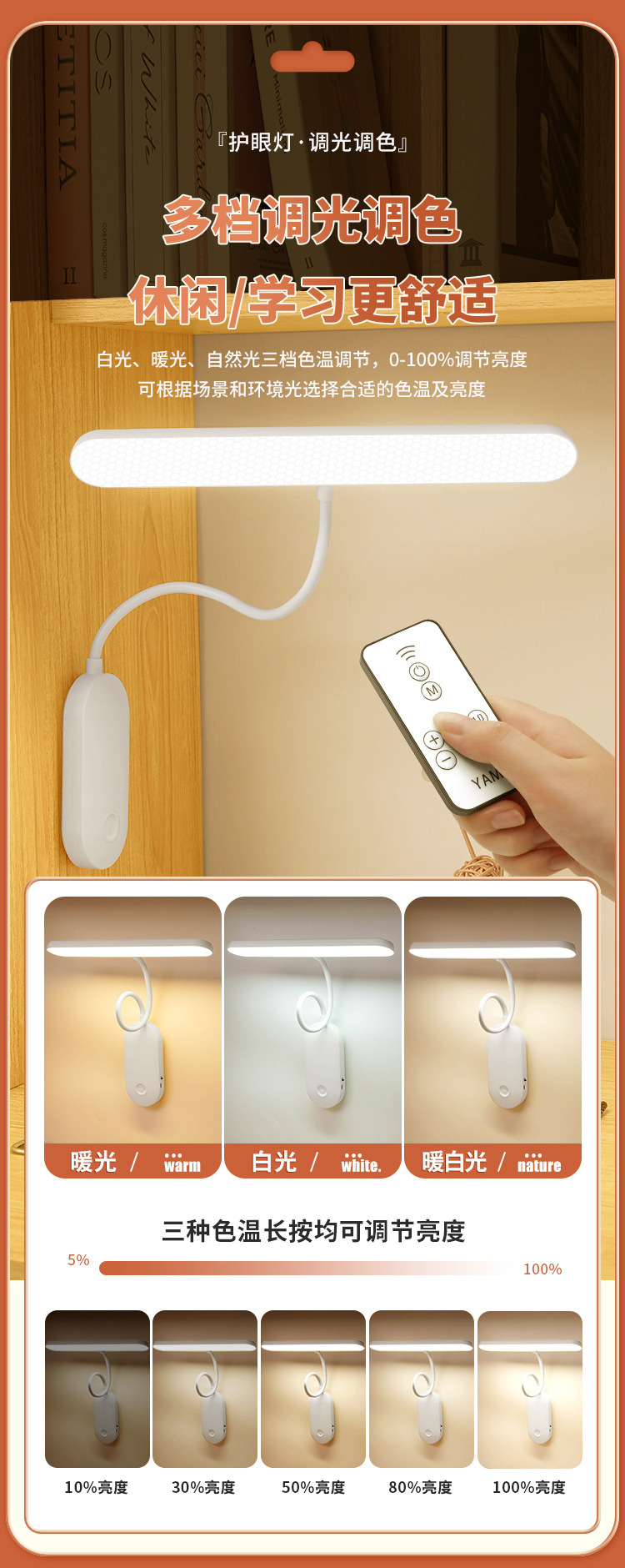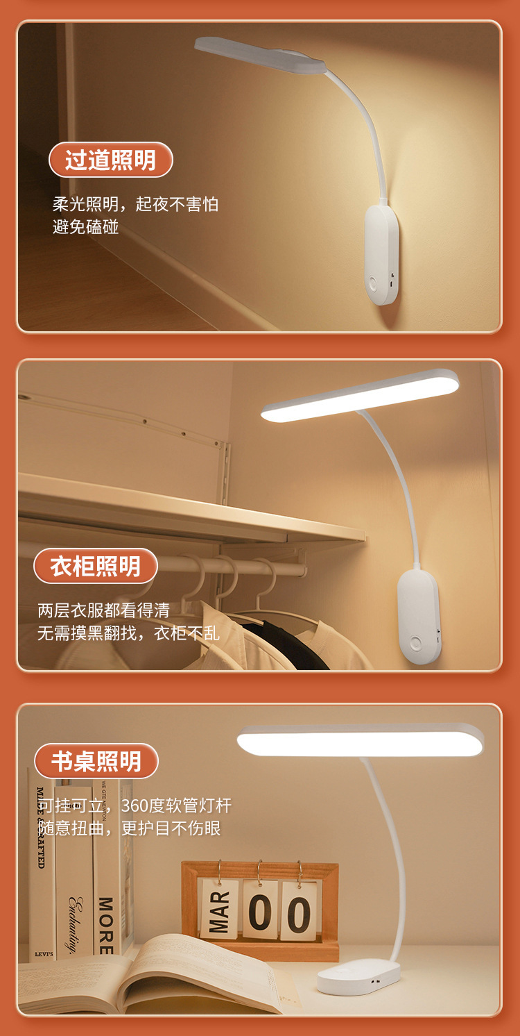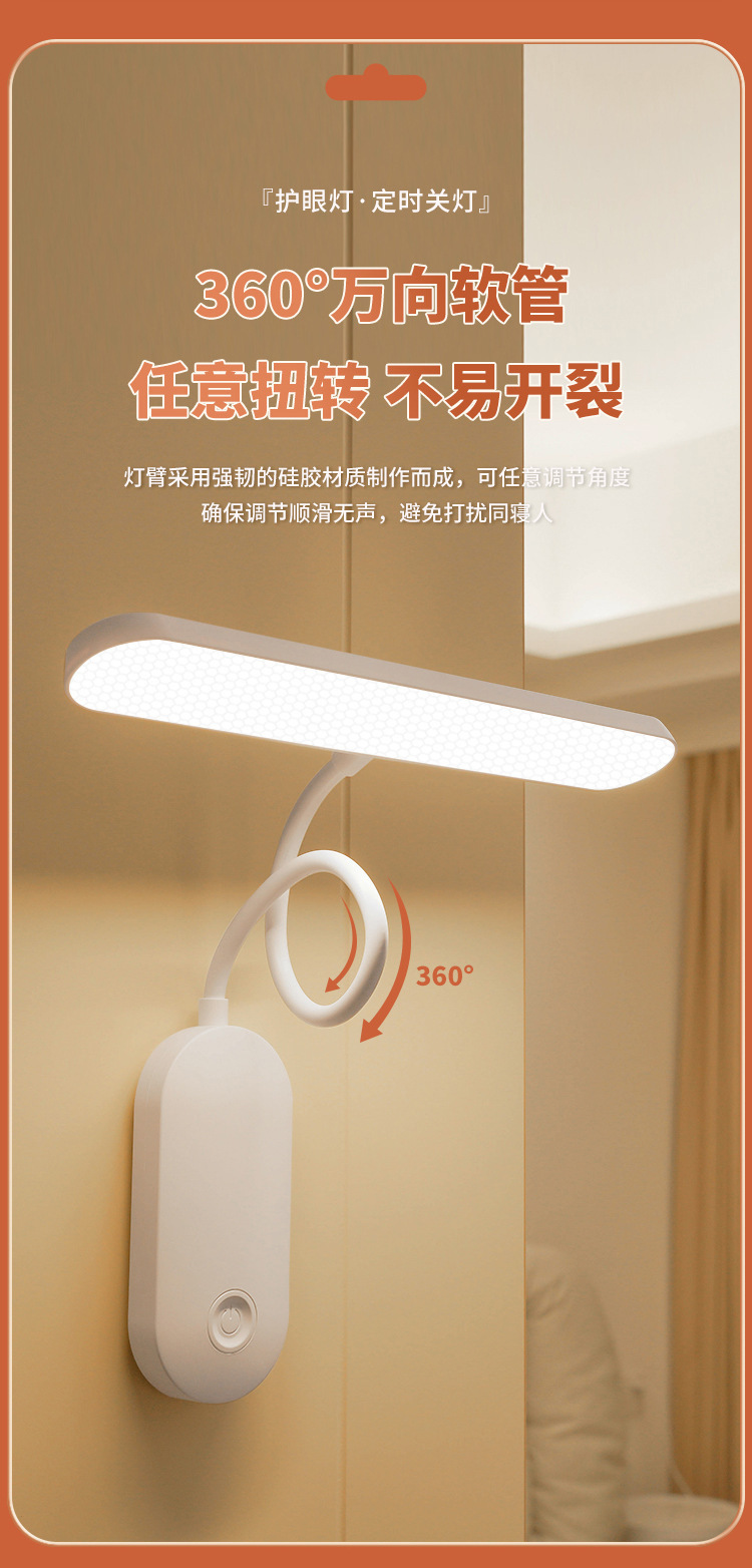 학습 눈 보호 테이블 램프 벽 램프 대학 기숙사 분위기 램프 충전 플러그인 붙여 넣기 침실 야간 조명